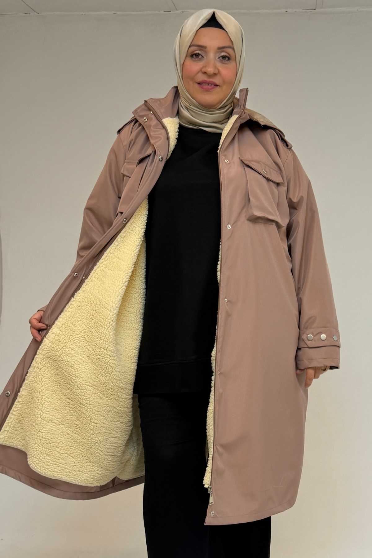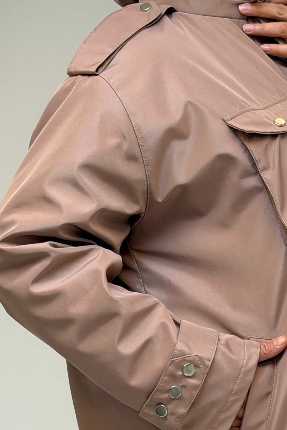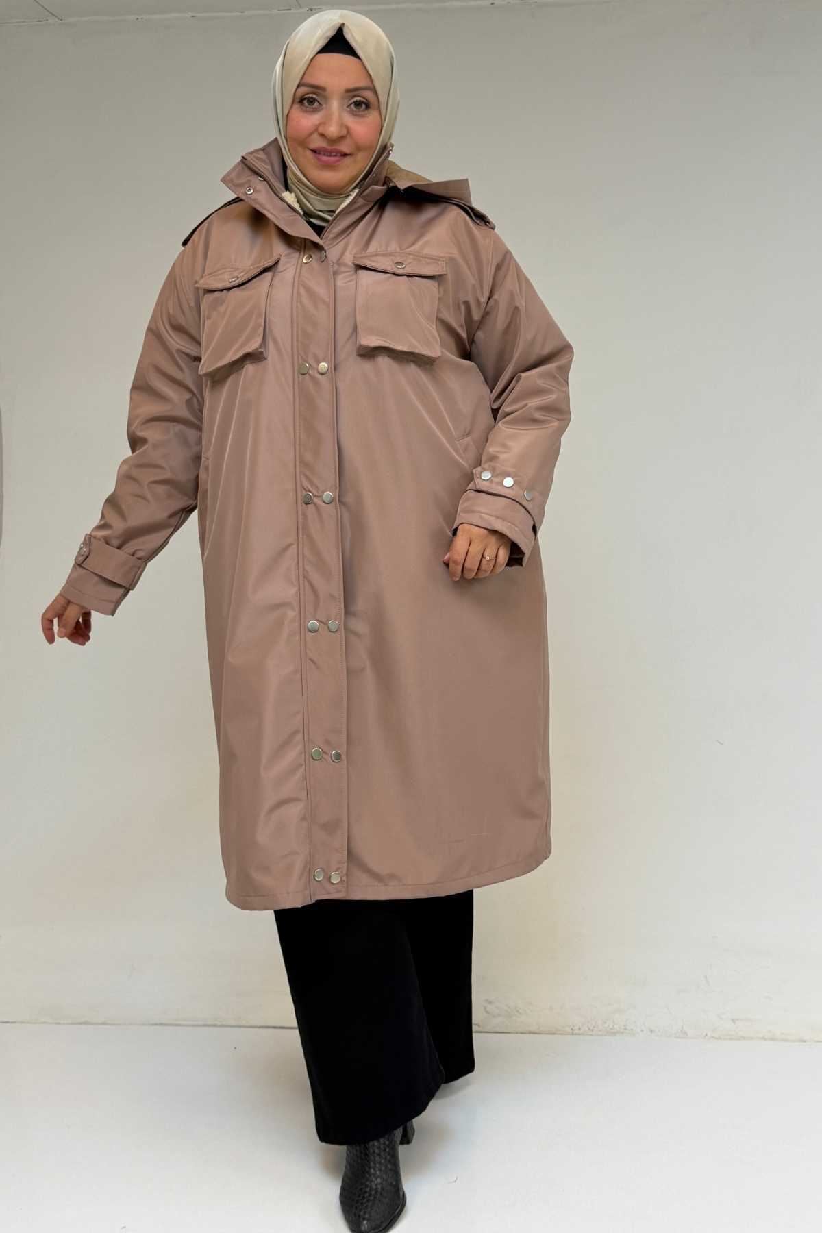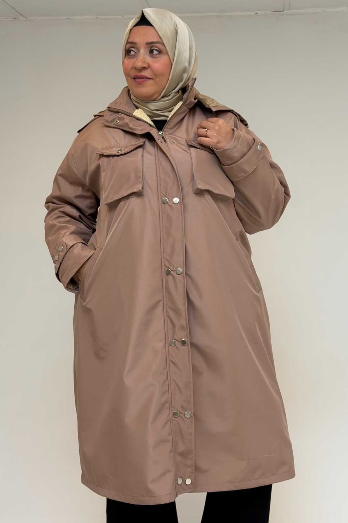 43061 Büyük Beden Kapaklı Cepli Fermuarlı Bondit Kap - Pudra