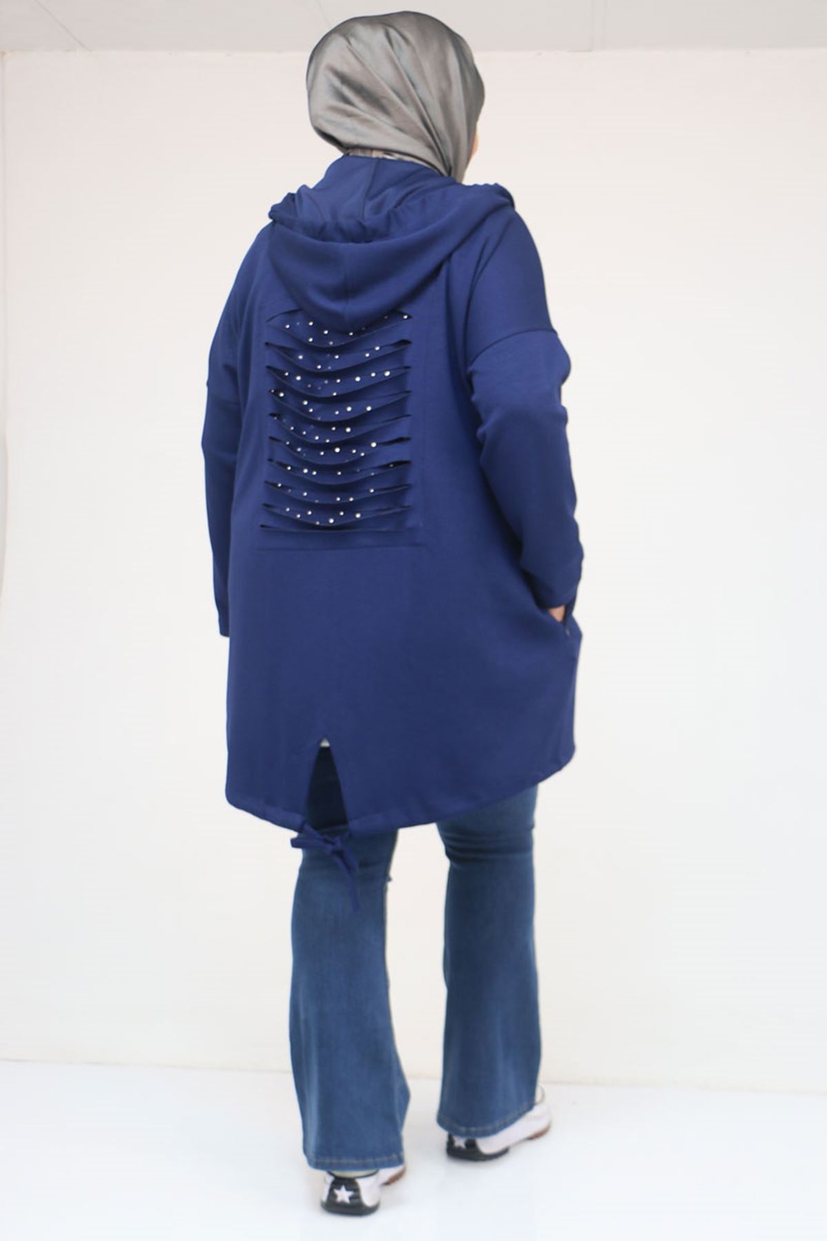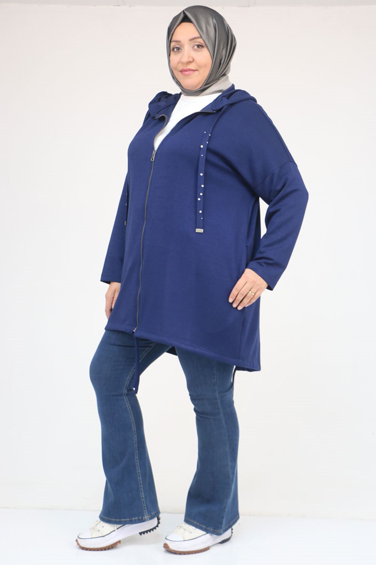 43068 Büyük Beden Eteği Oval Kesim Modal Ceket - İndigo