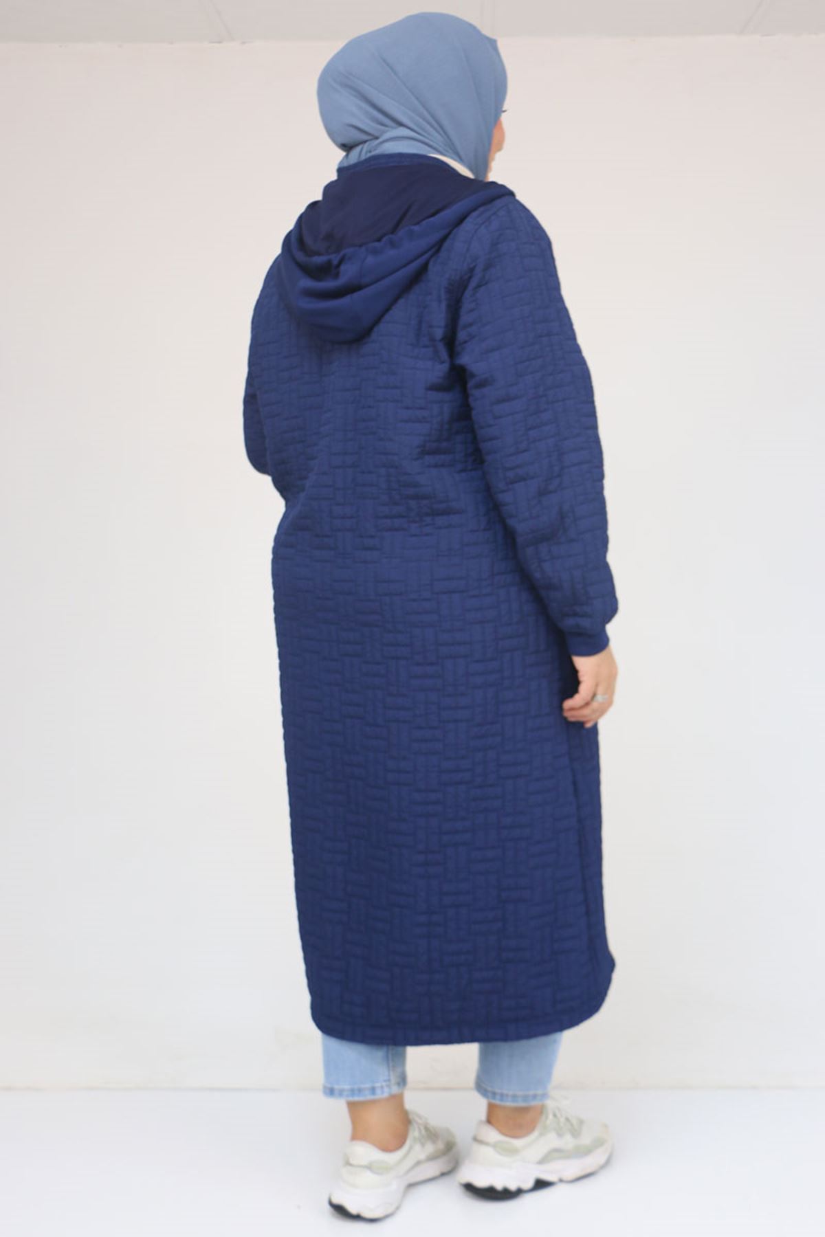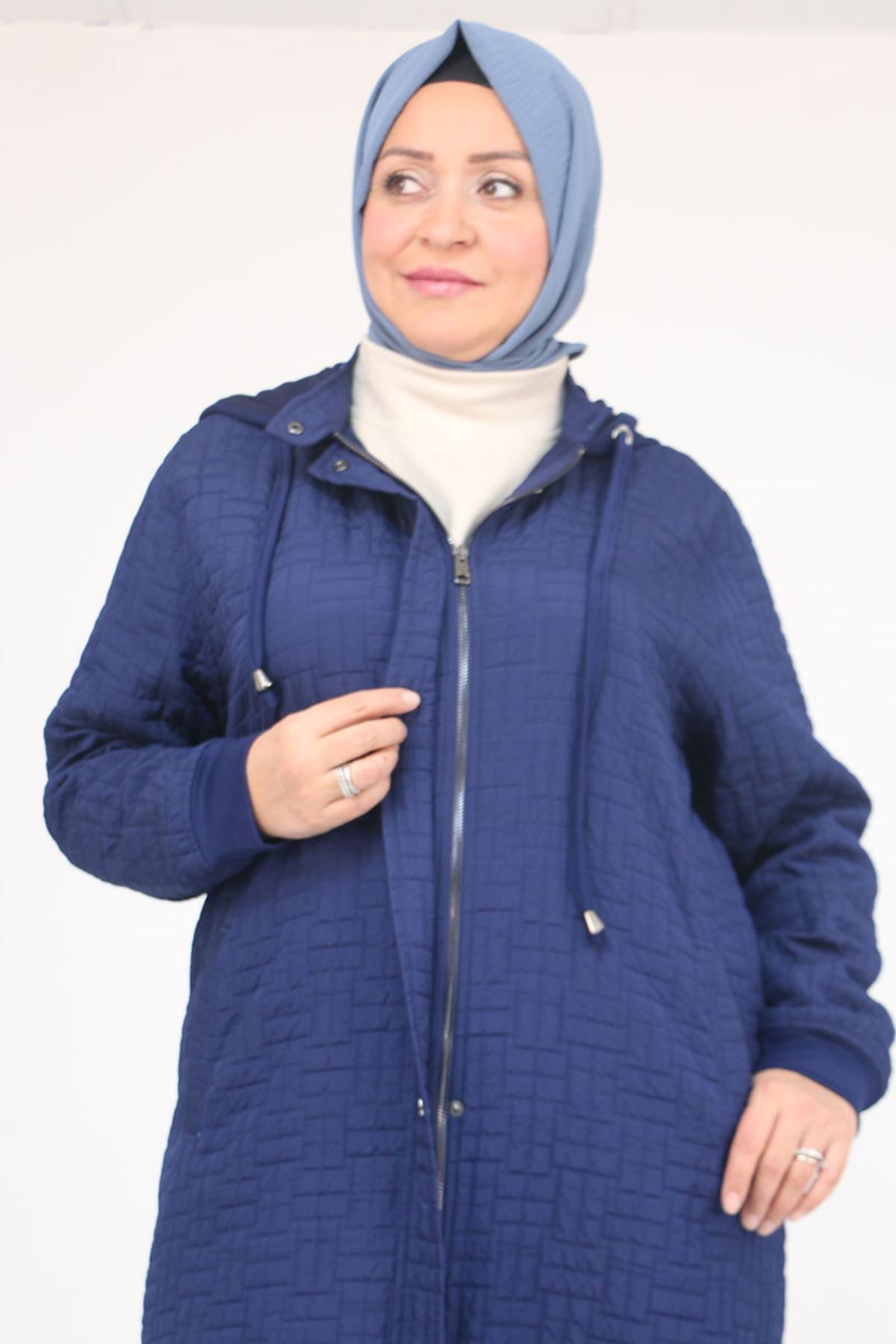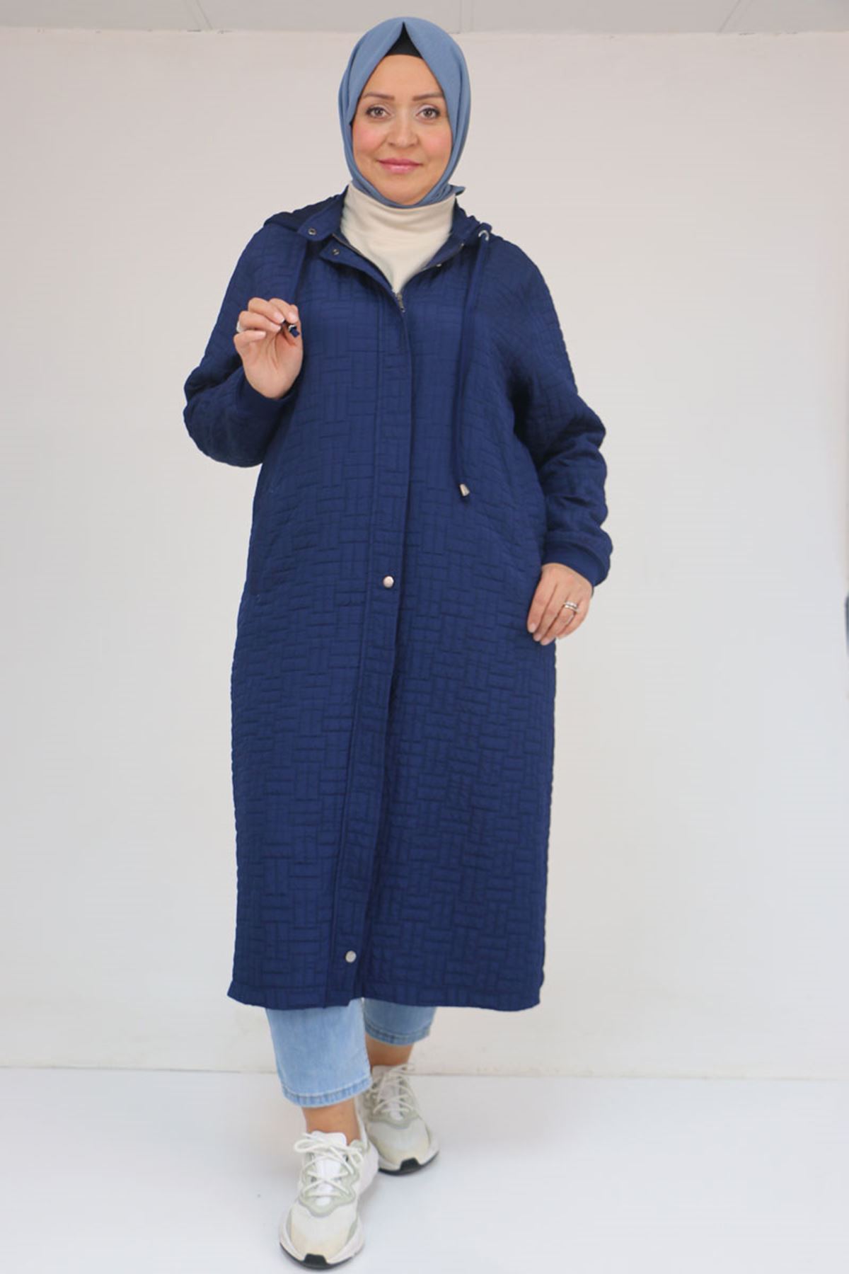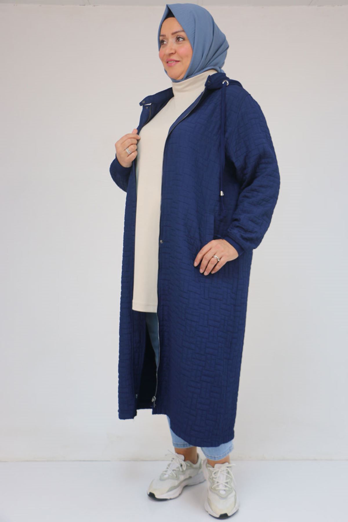 53043 Büyük Beden Yakalı Modal-Kapitone Kap - İndigo