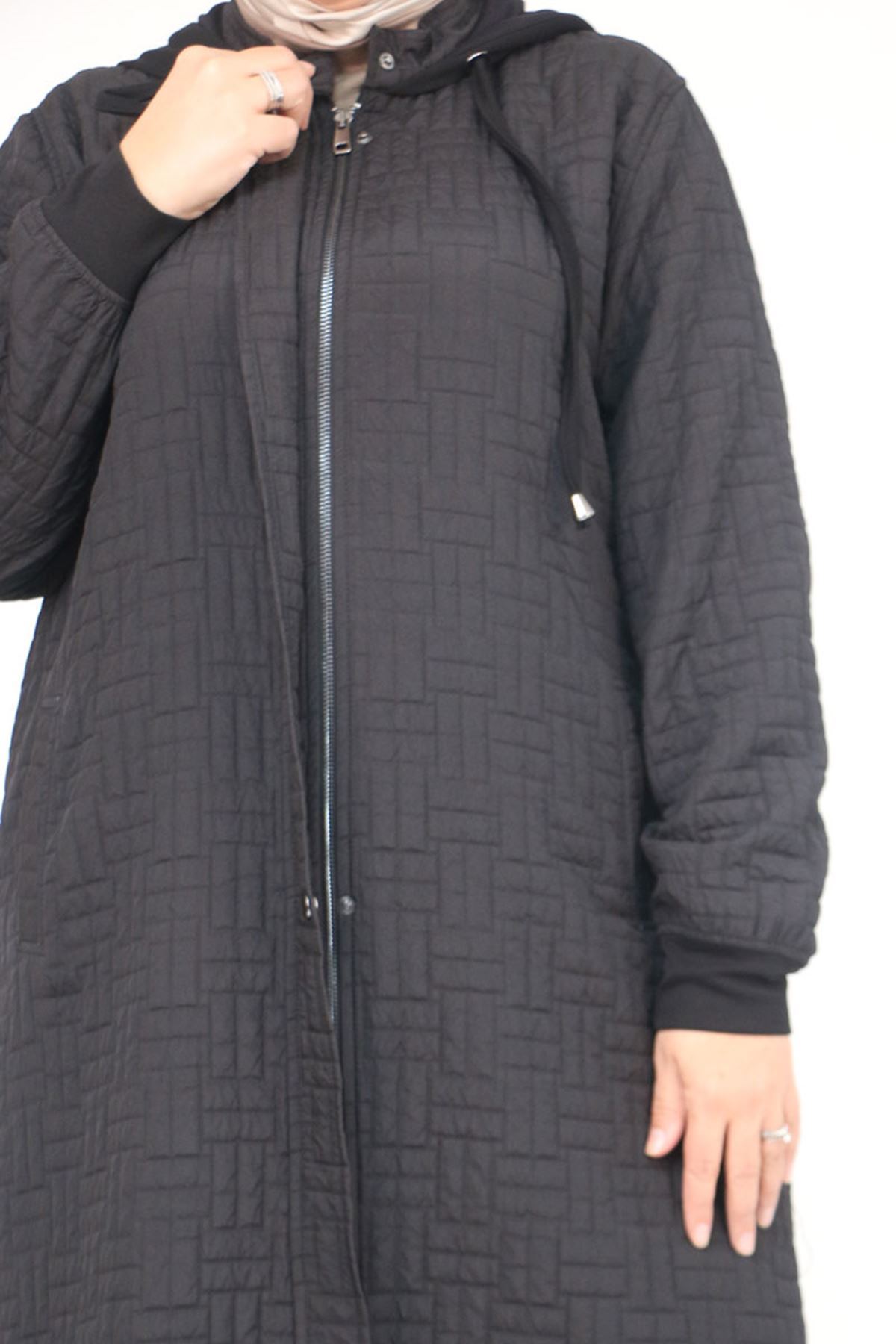 53043 Büyük Beden Yakalı Modal-Kapitone Kap - Siyah