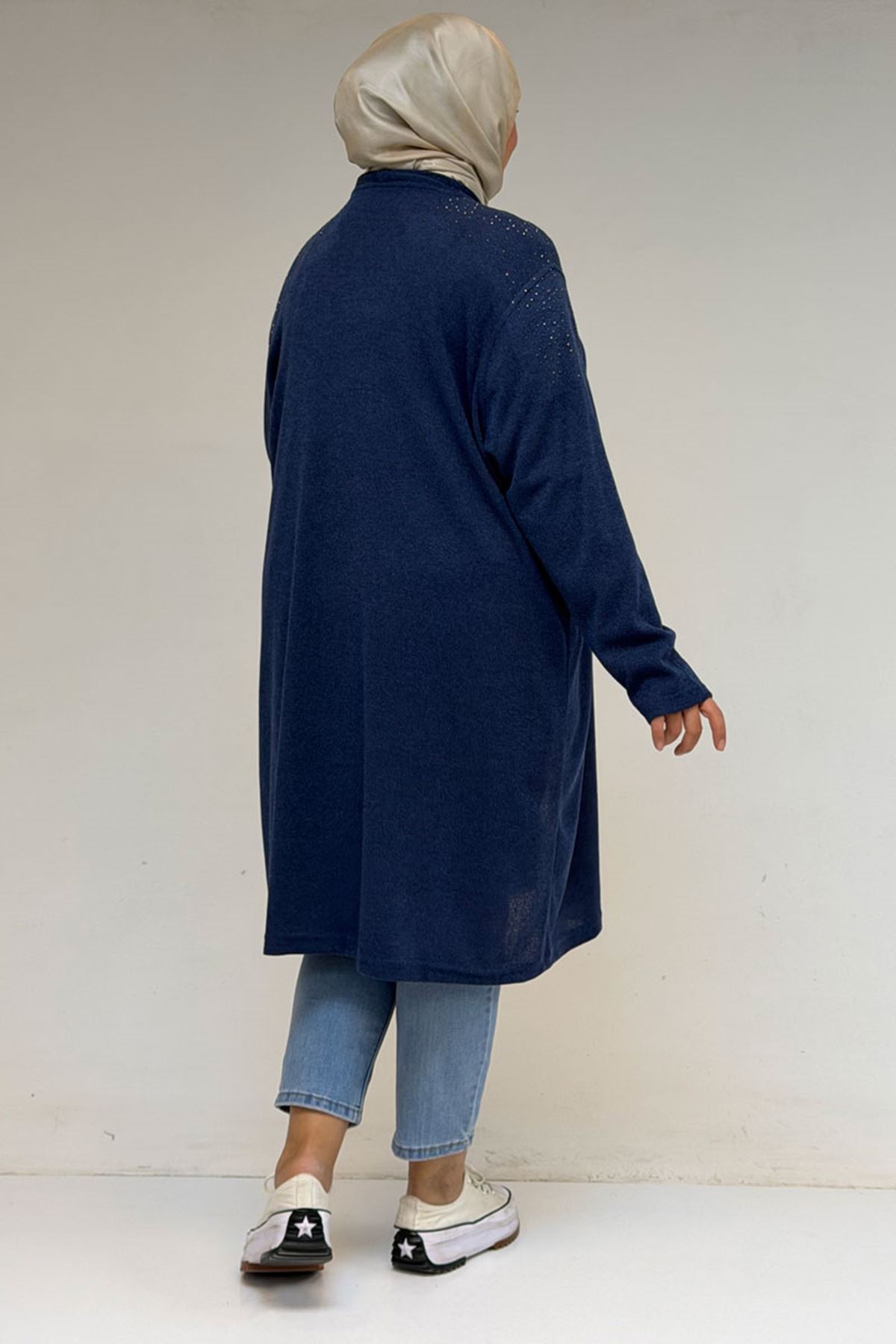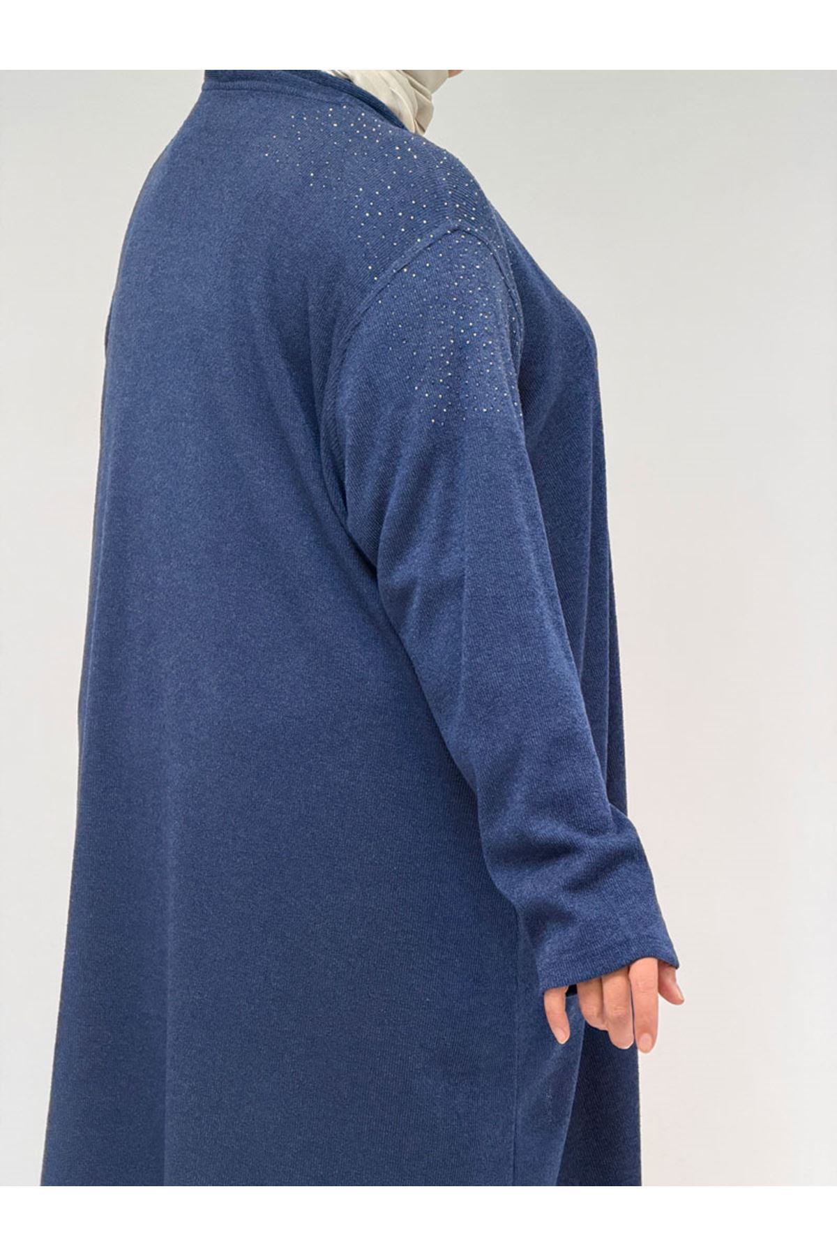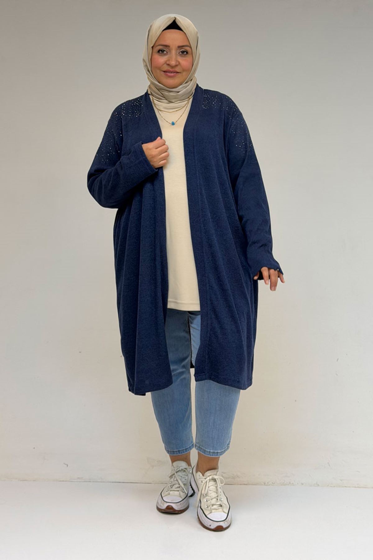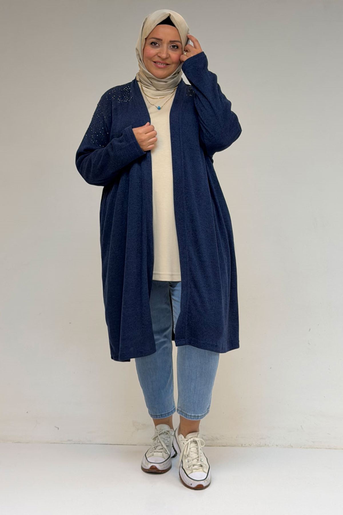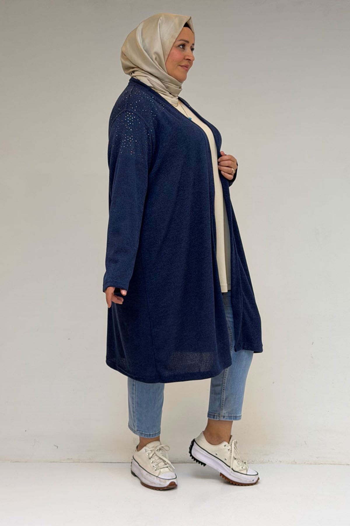 53047 Büyük Beden Omzu Taş Detaylı Mir Ceket - İndigo