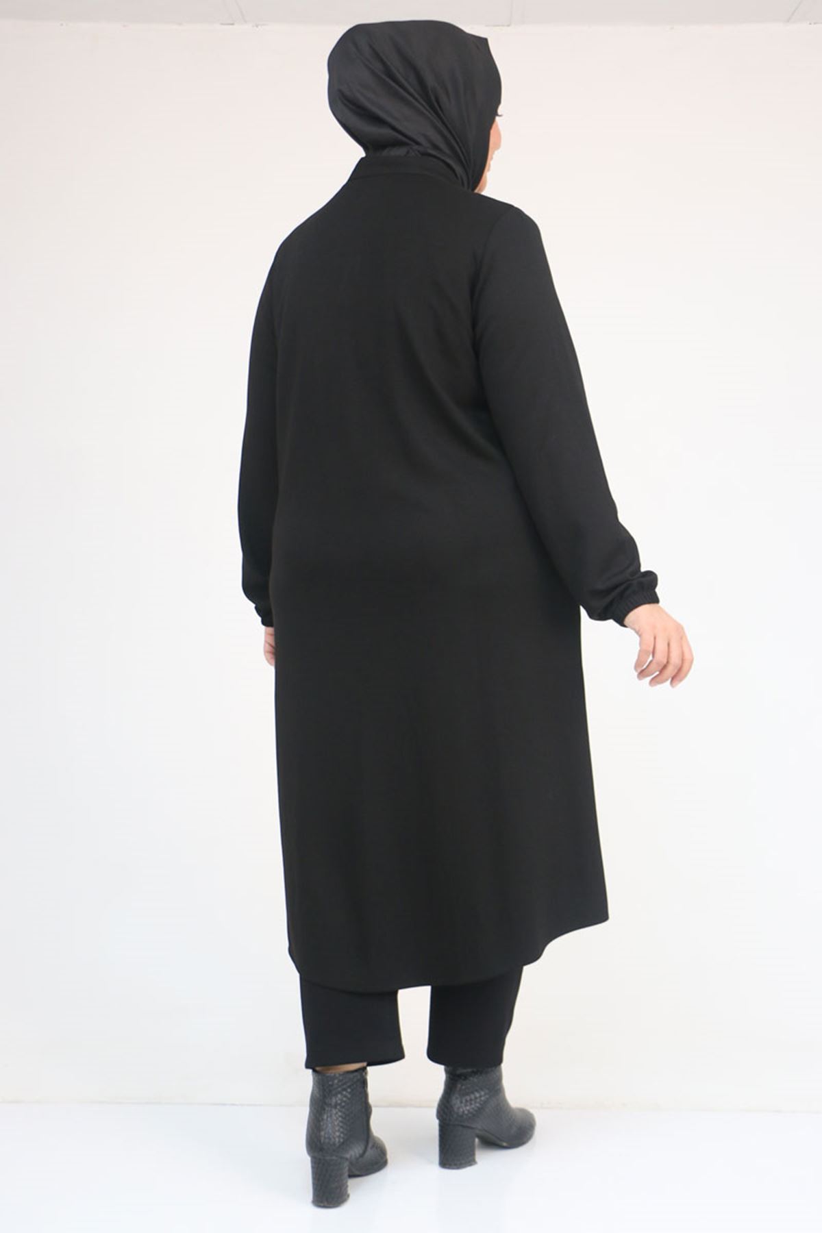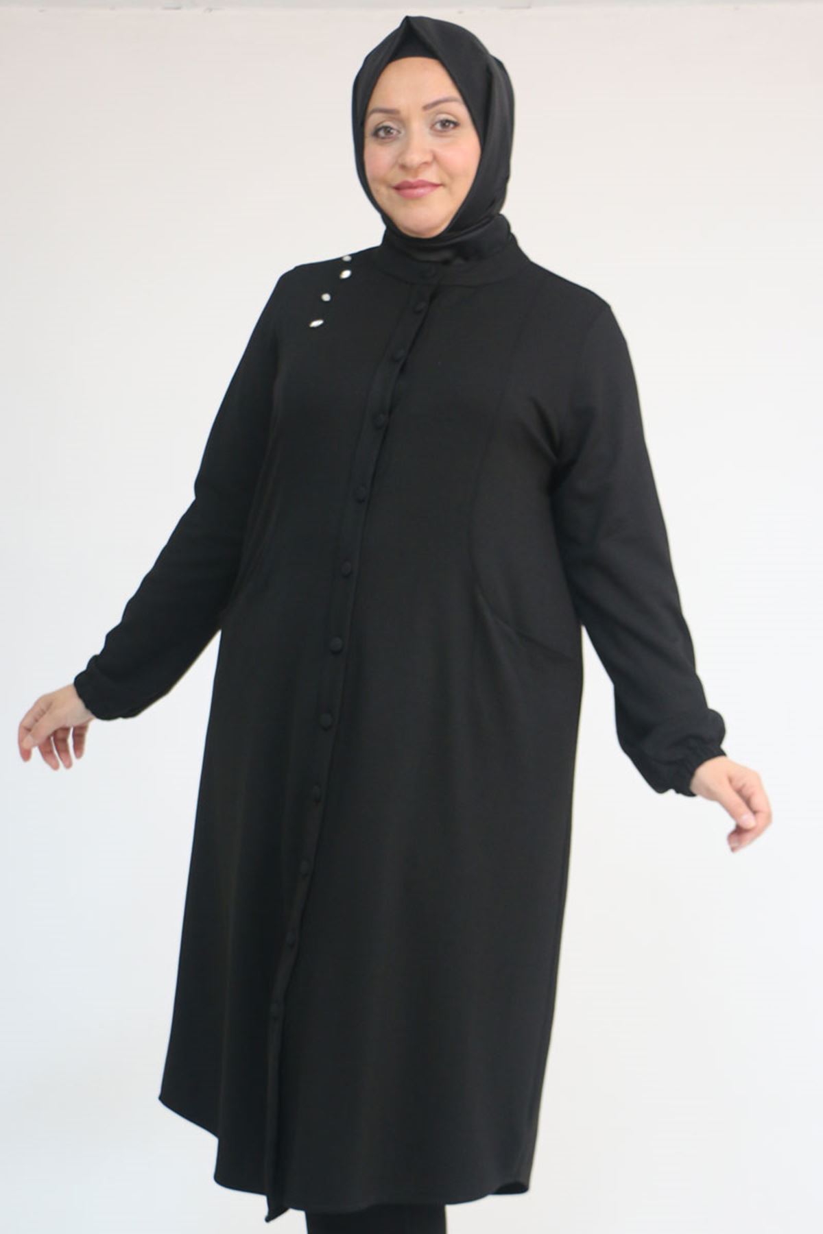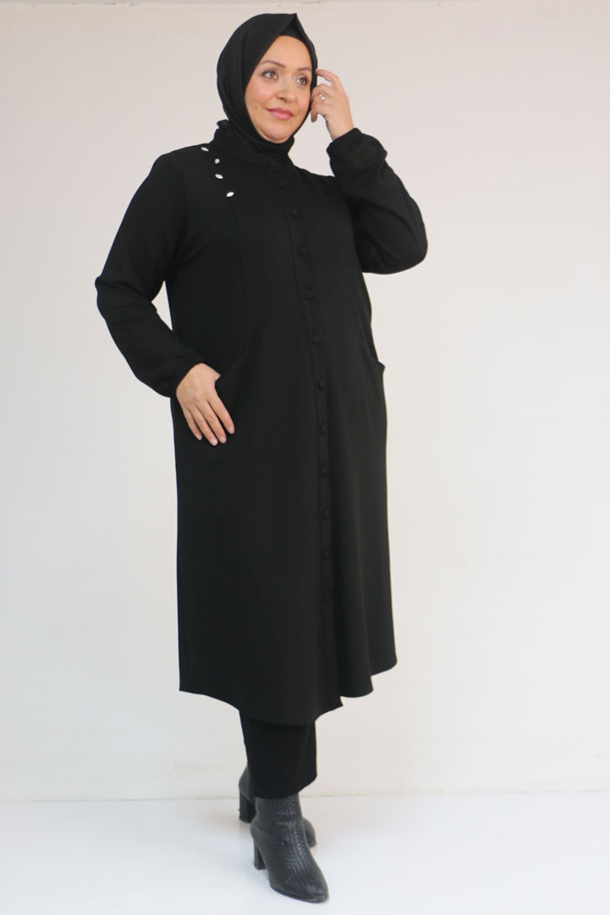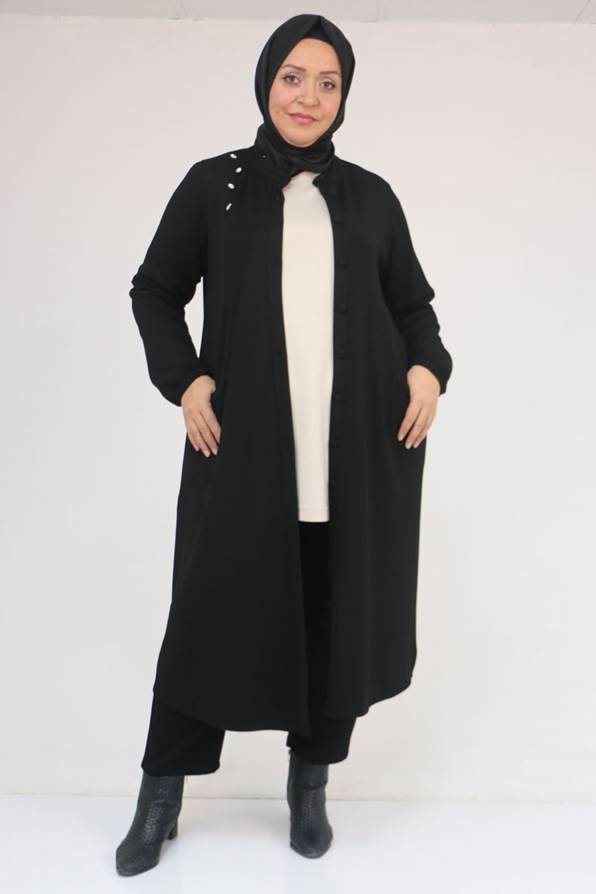 53054 Büyük Beden Boydan Düğmeli Modal Ceket - Siyah