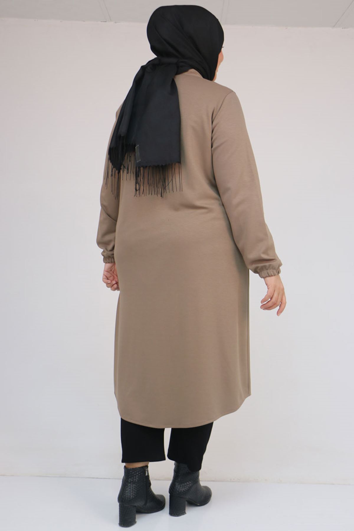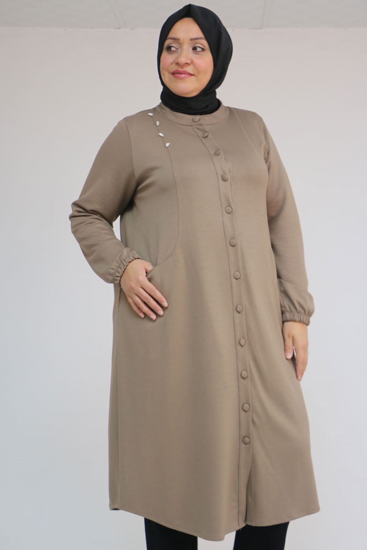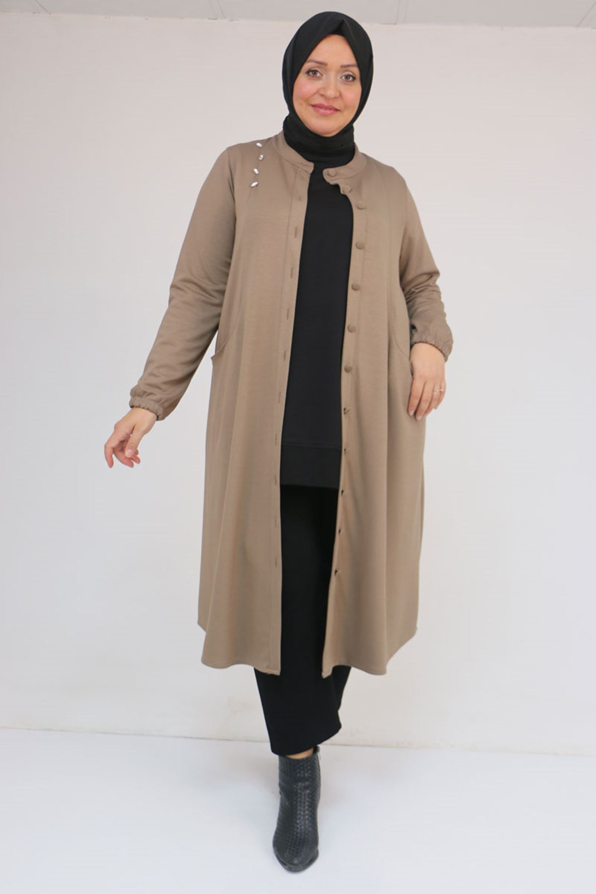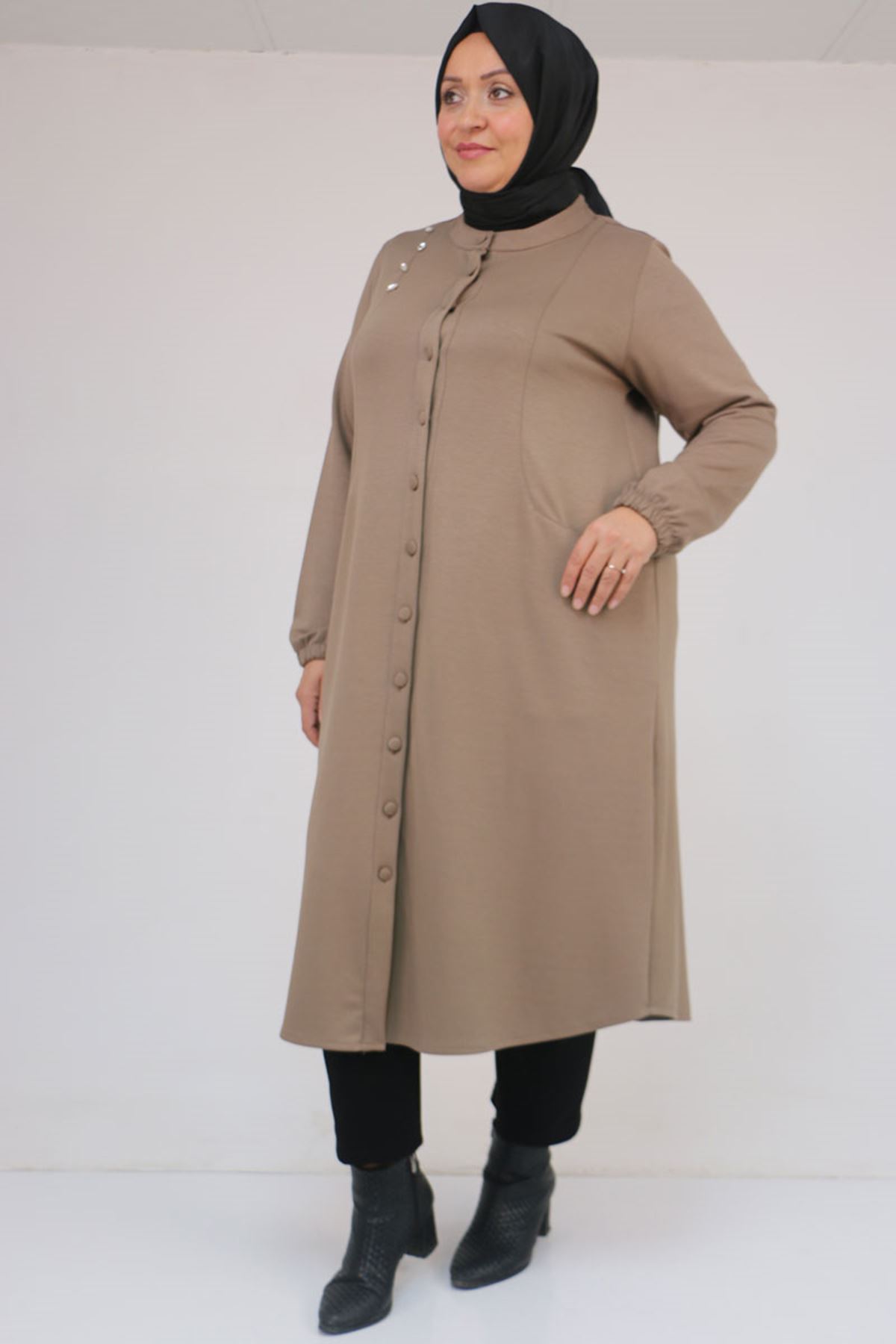 53054 Büyük Beden Boydan Düğmeli Modal Ceket - Vizon