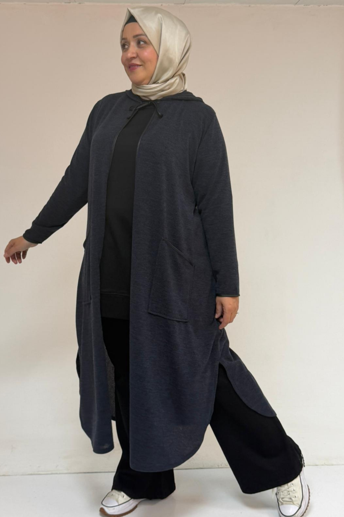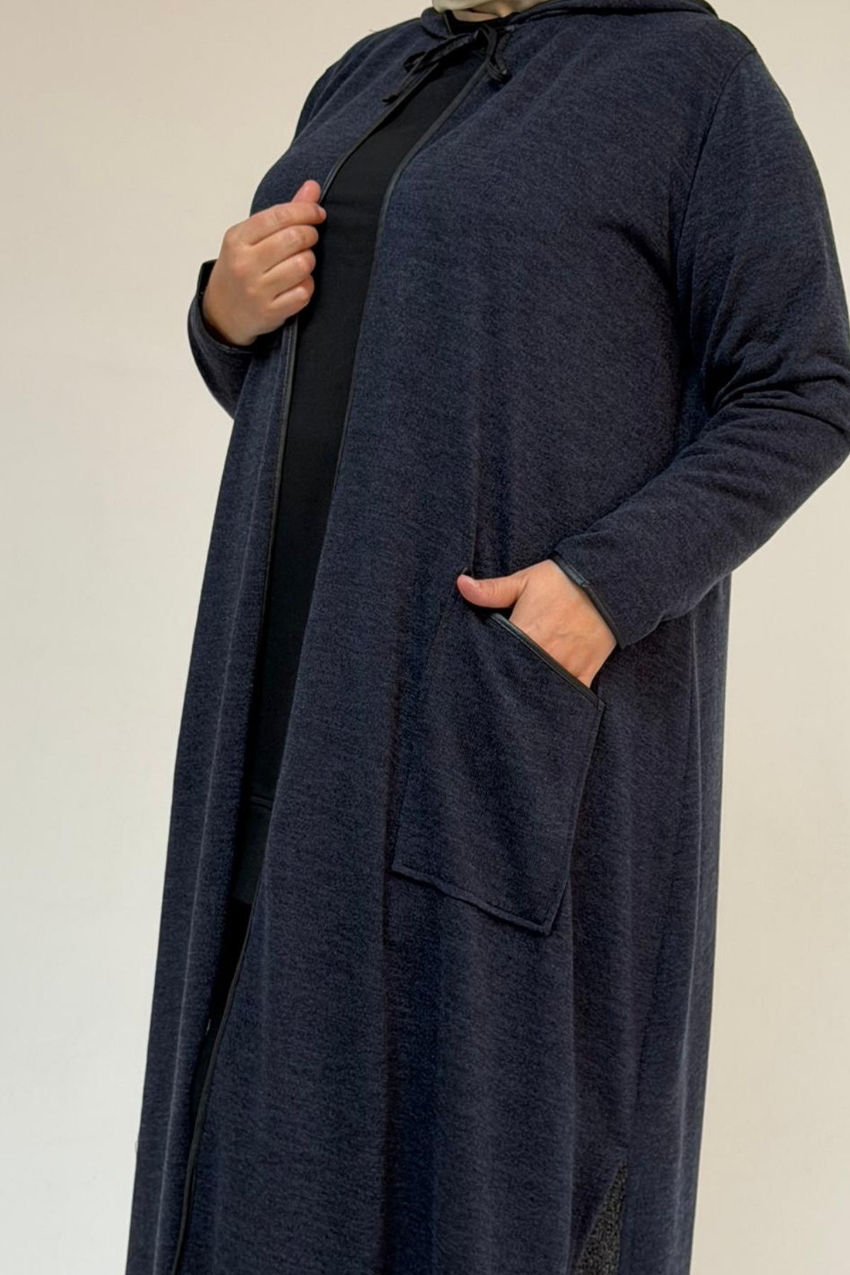 53063 Büyük Beden Biyeli Cepli Mir Ceket - Lacivert