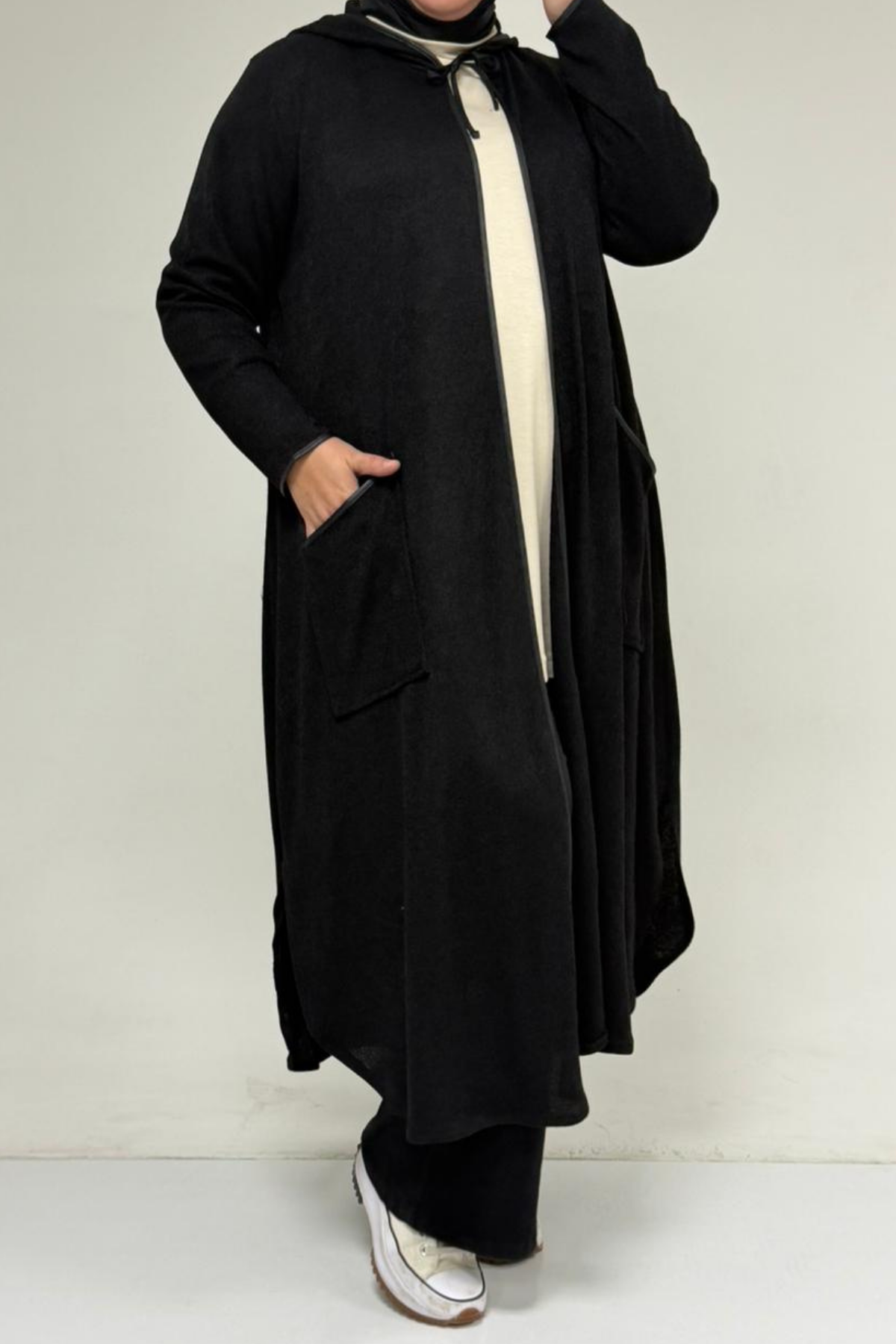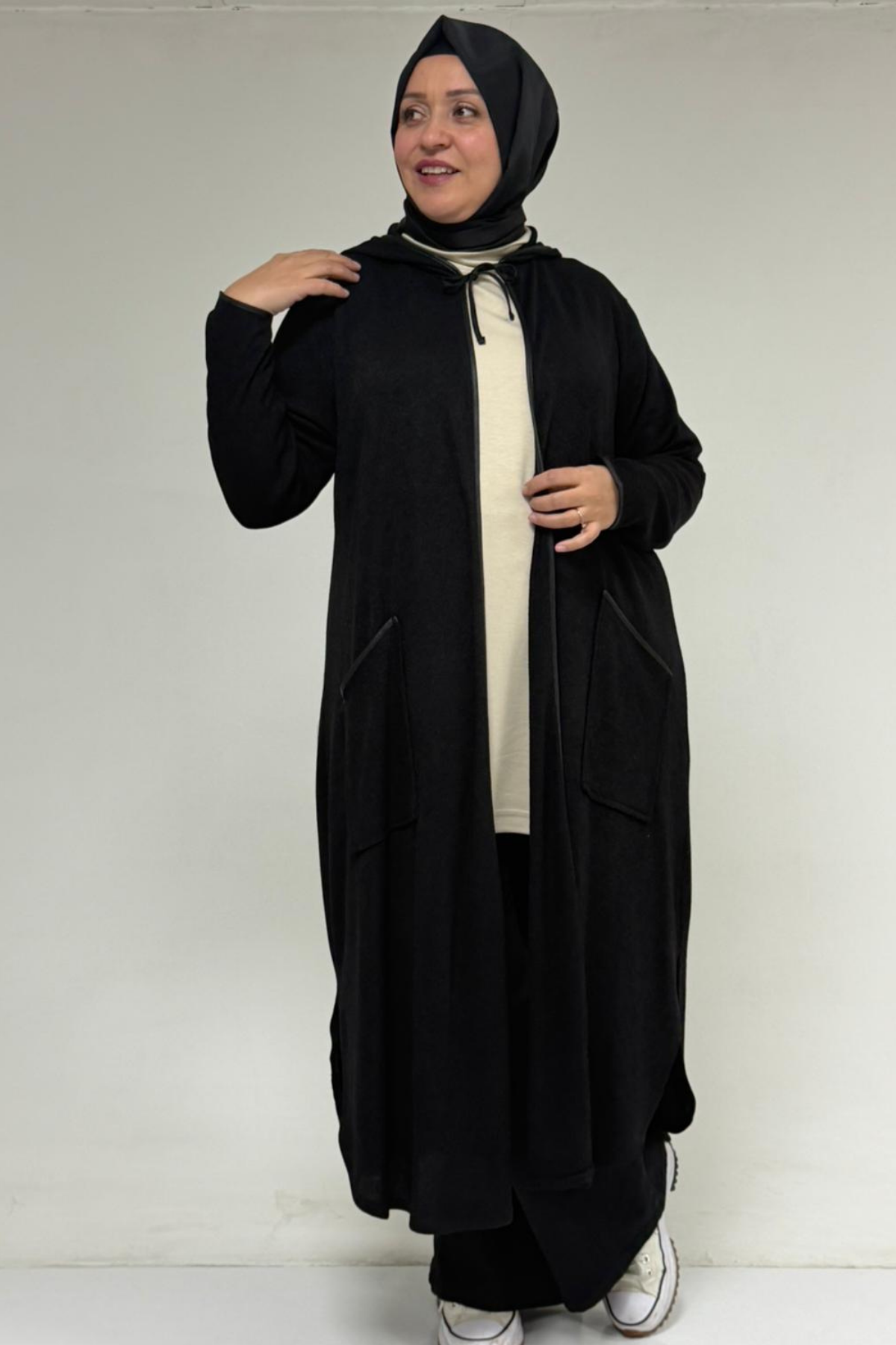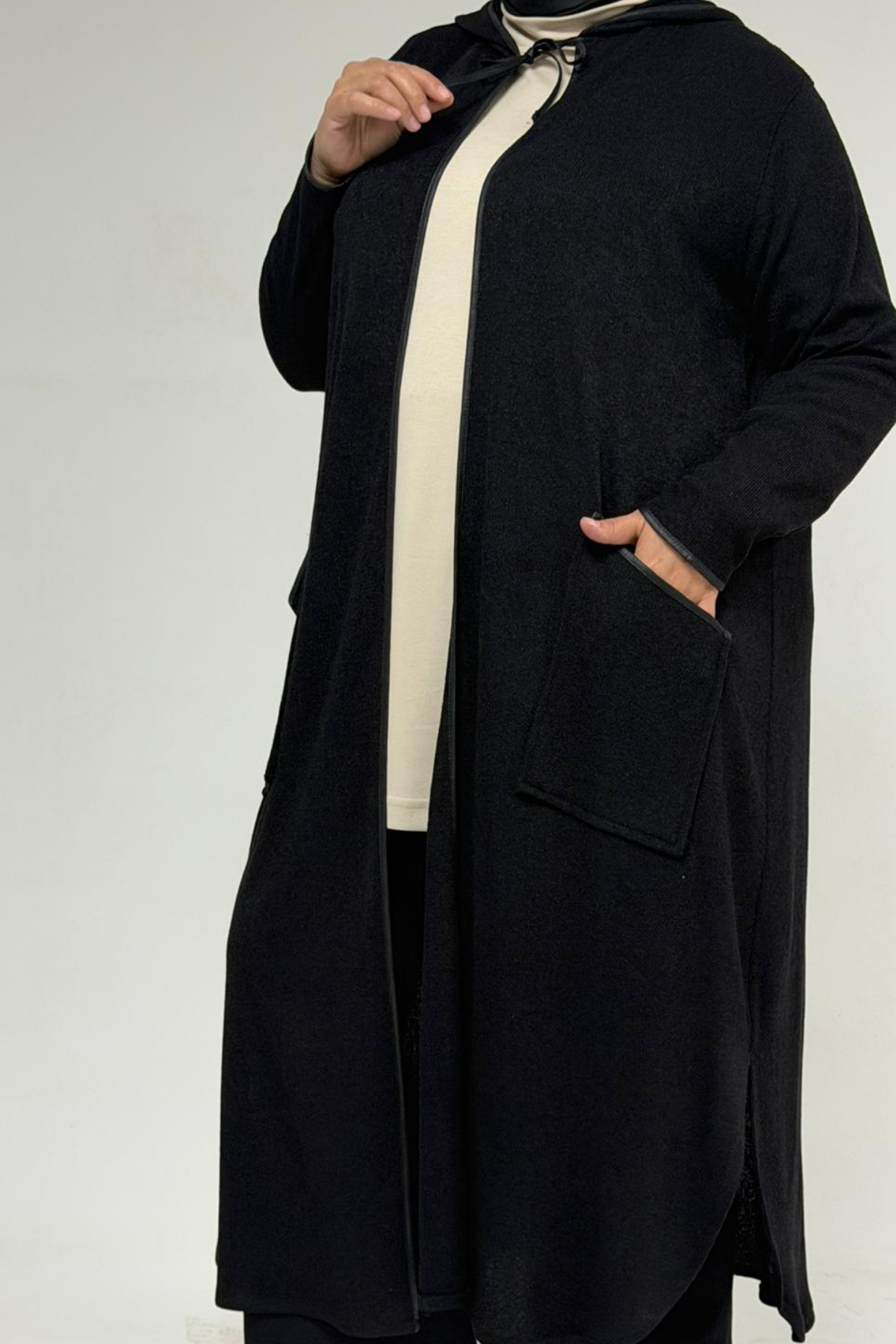 53063 Büyük Beden Biyeli Cepli Mir Ceket - Siyah