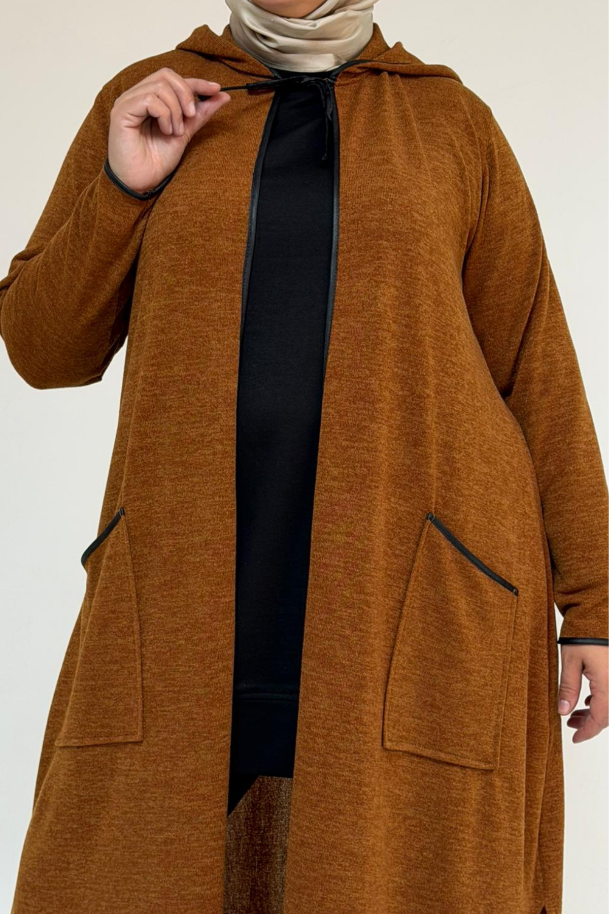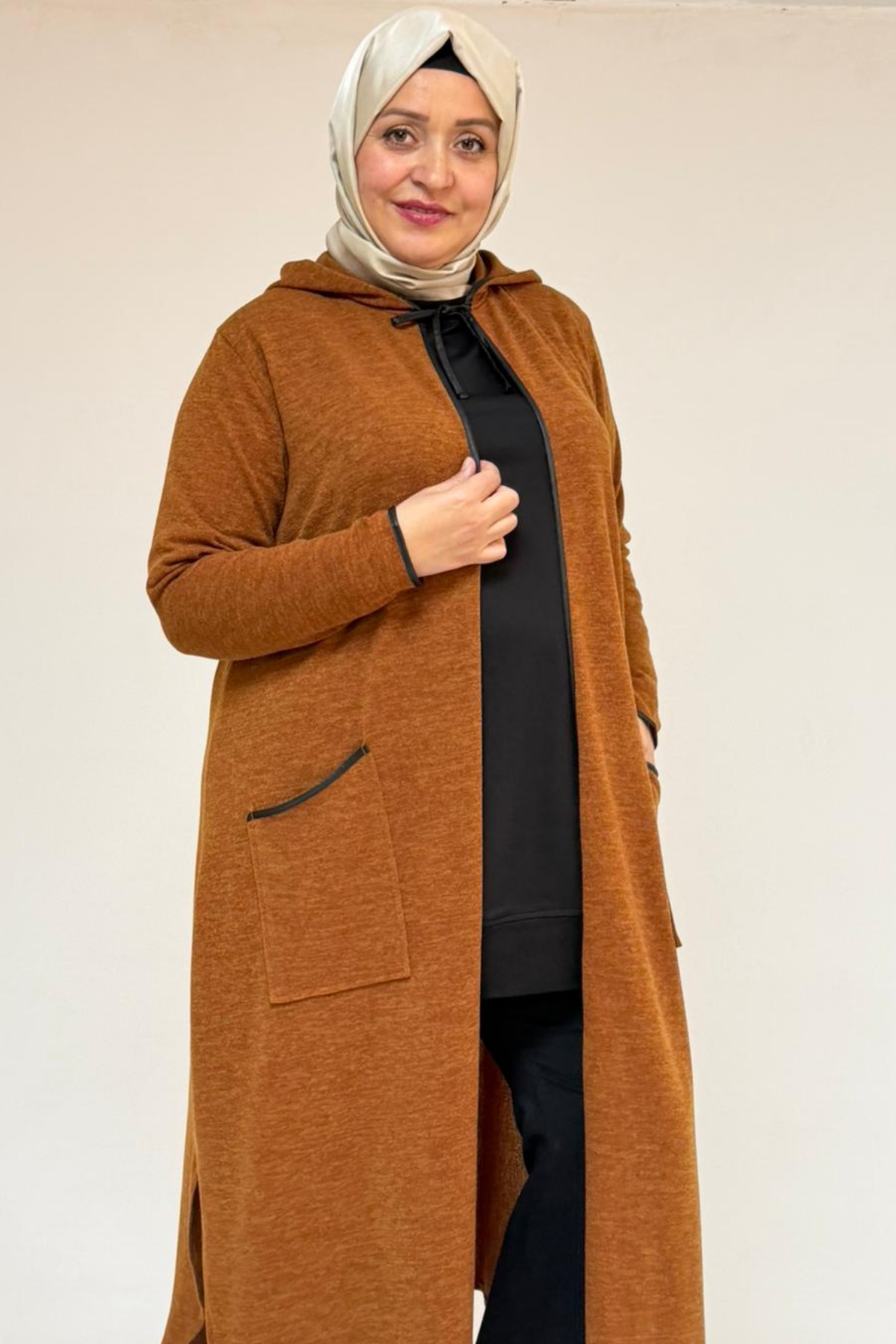 53063 Büyük Beden Biyeli Cepli Mir Ceket - Taba