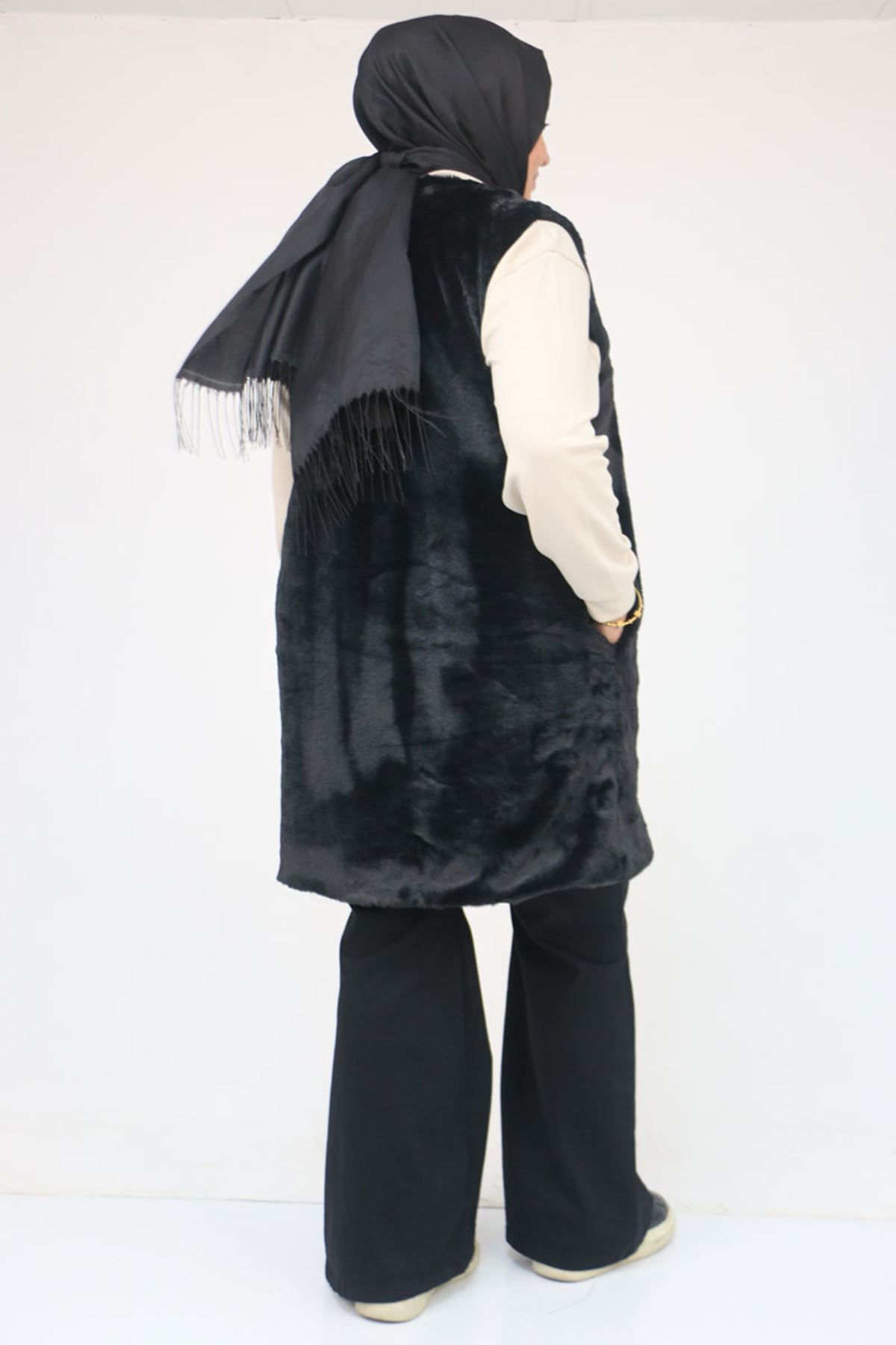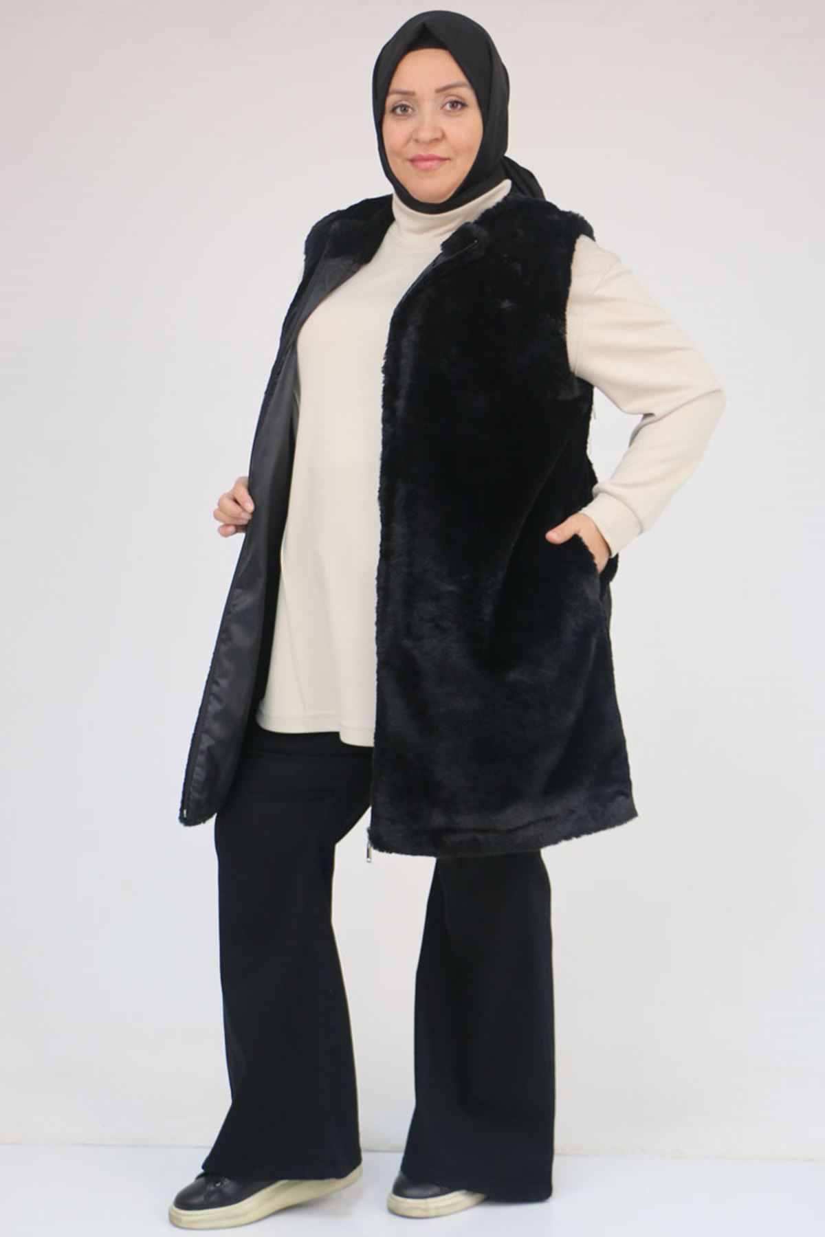 54013 Büyük Beden Cepli Rabbit Astarlı Yelek - Siyah