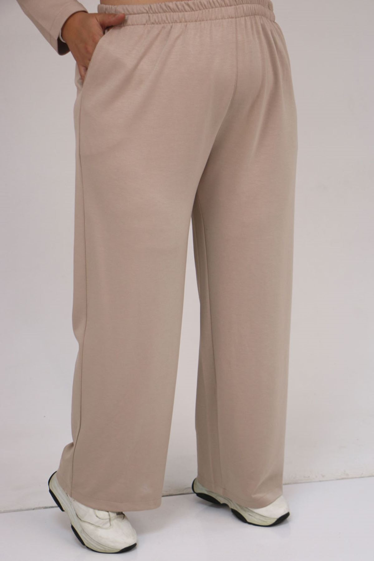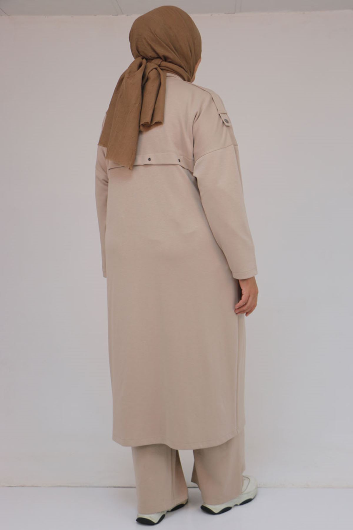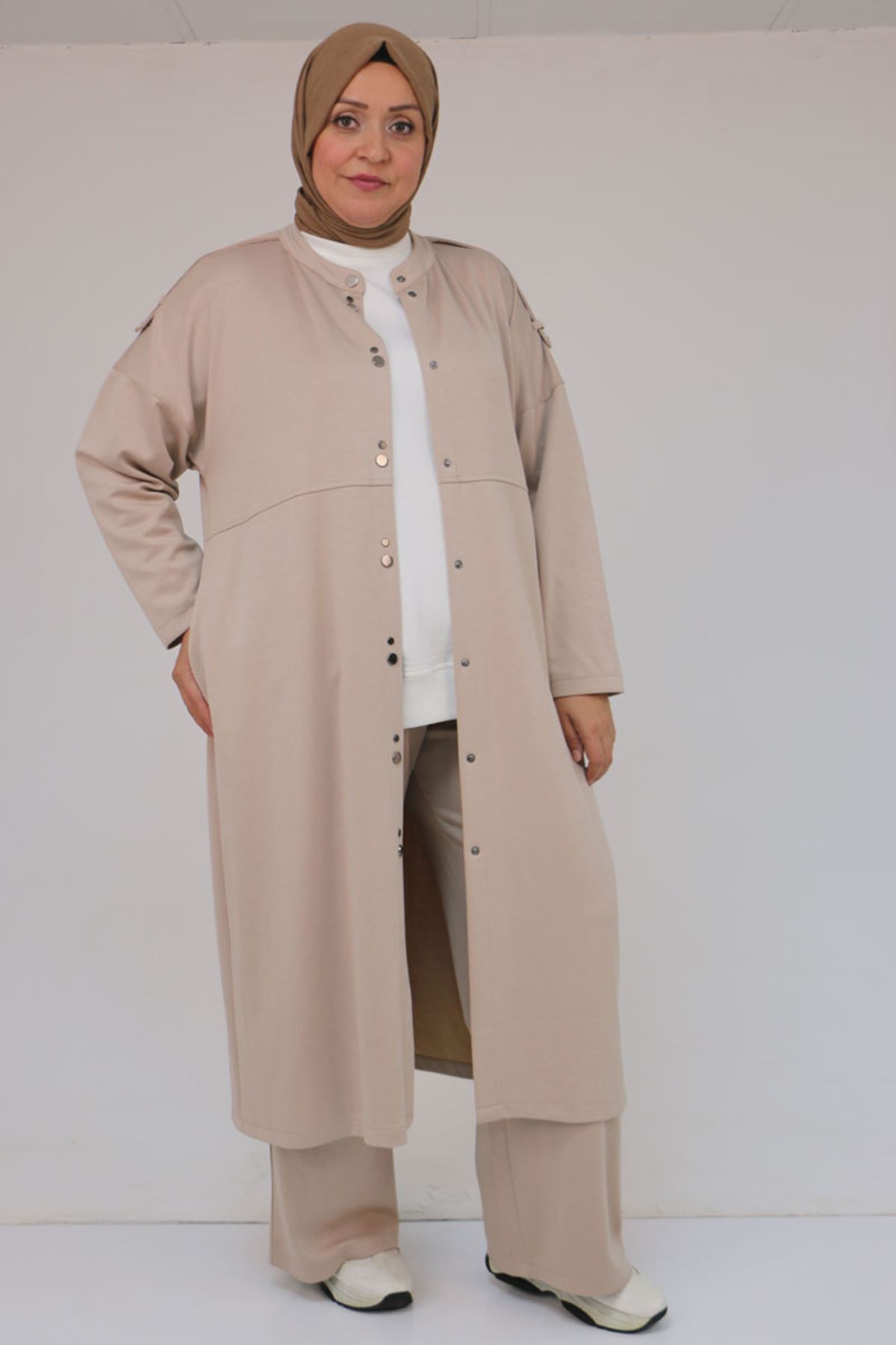 57035 Büyük Beden Omzu Apoletli Çıtçıt Detaylı Modal Takım - Bej