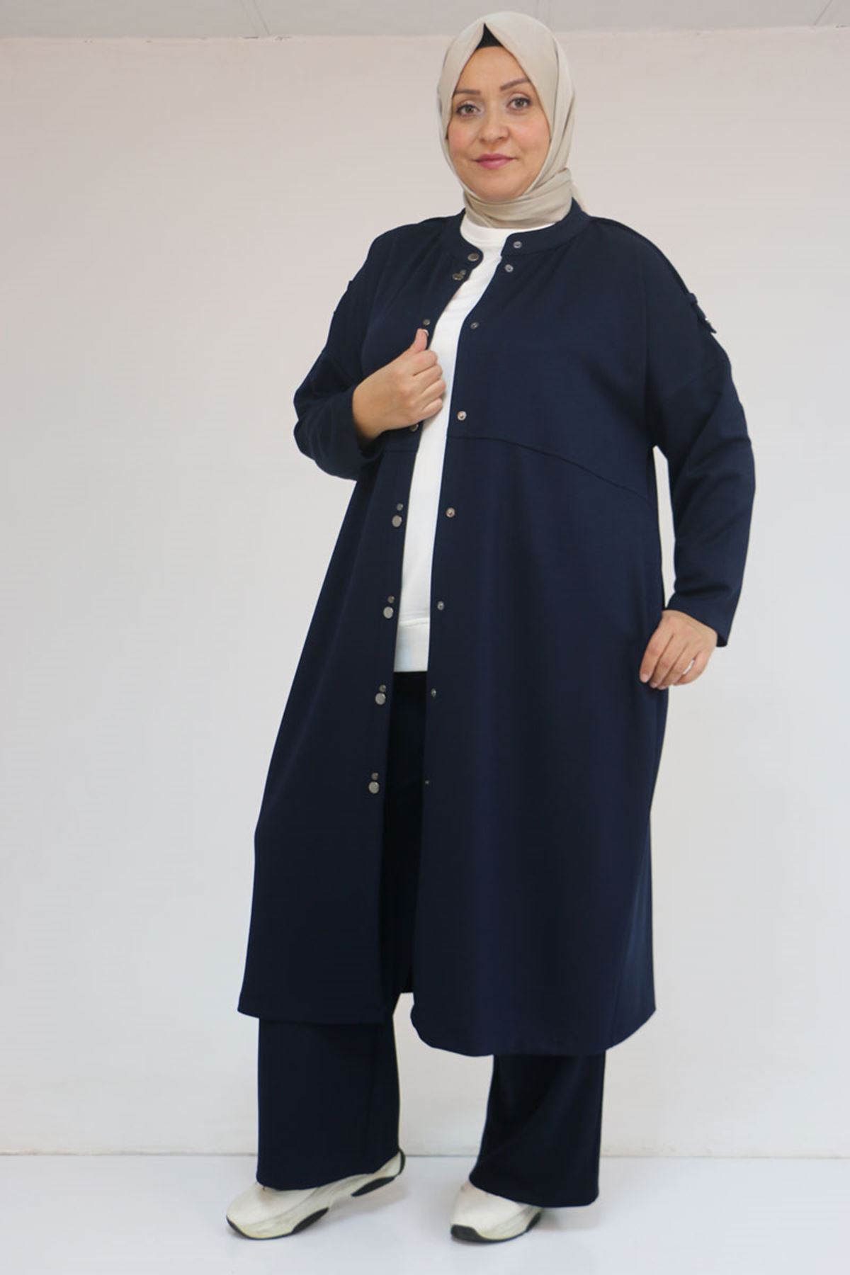 57035 Büyük Beden Omzu Apoletli Çıtçıt Detaylı Modal Takım - Lacivert