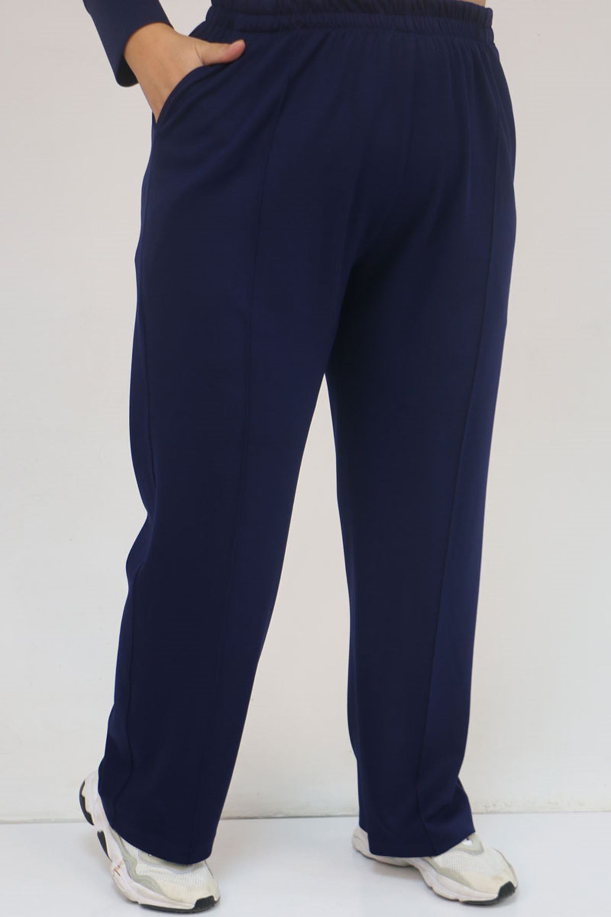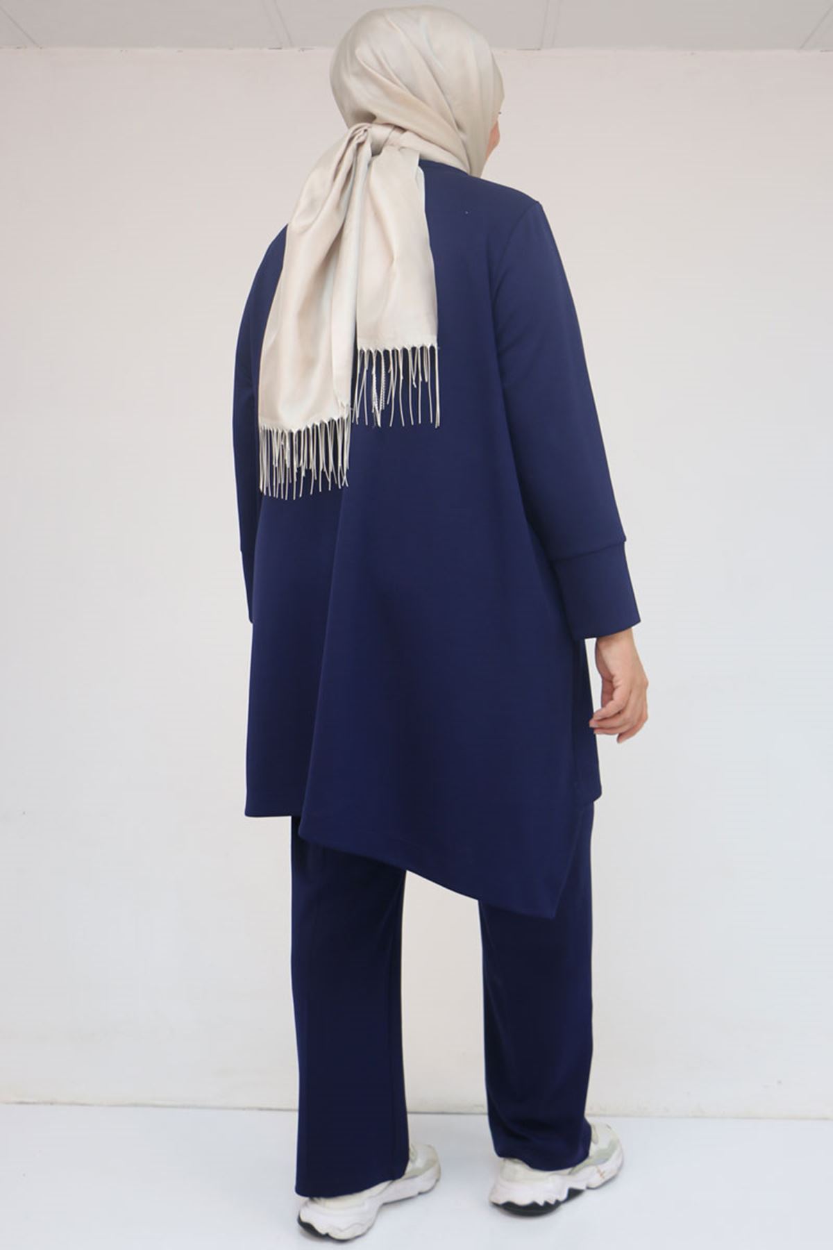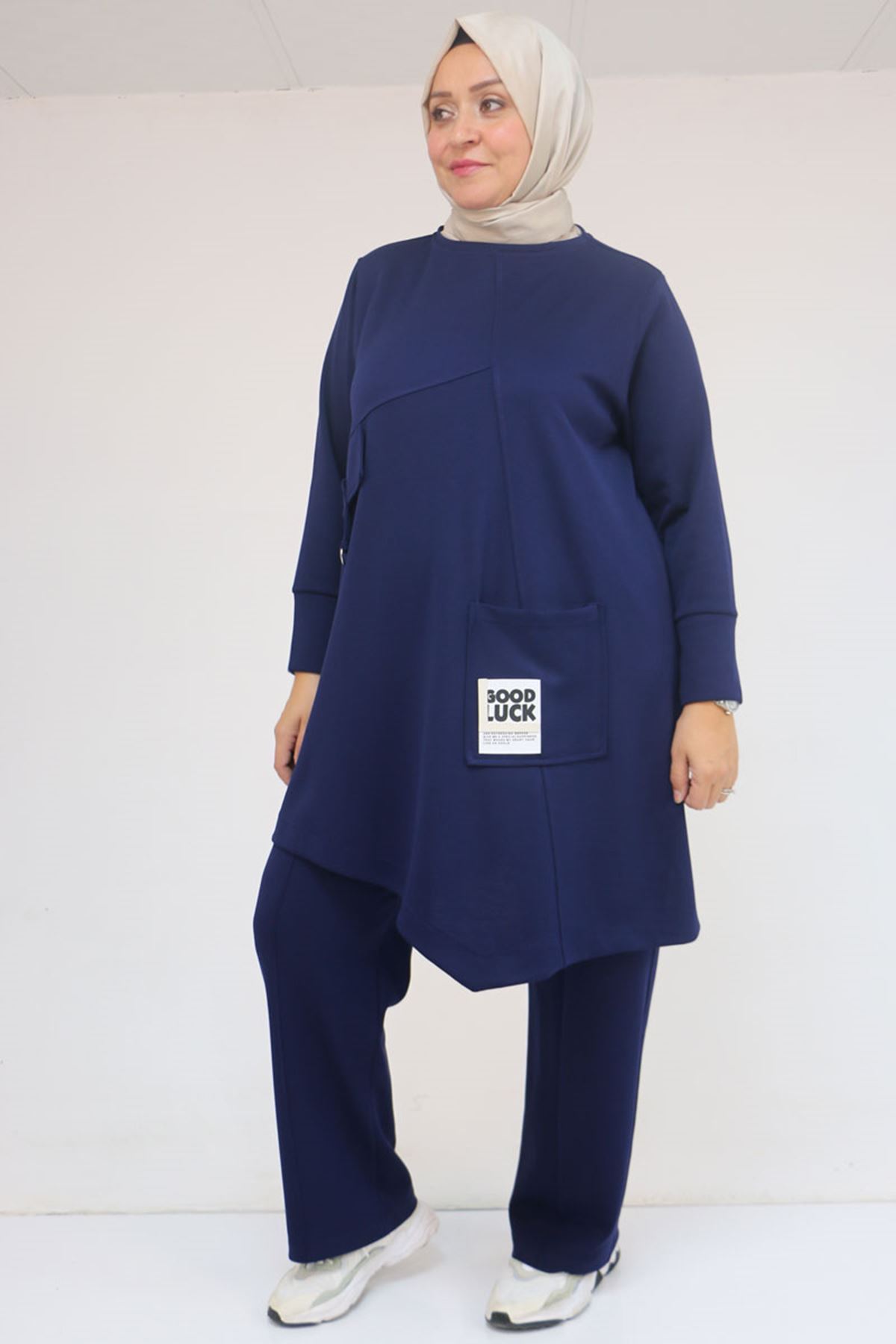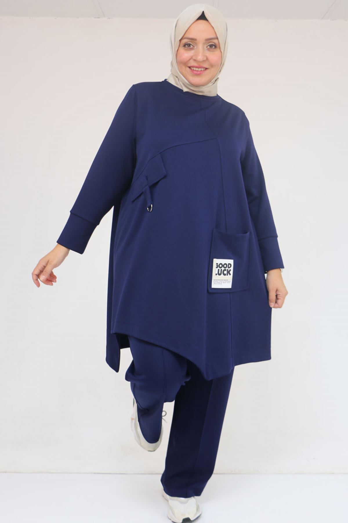57041 Büyük Beden Cepte Arma Detaylı Modal Pantolonlu Takım - İndigo