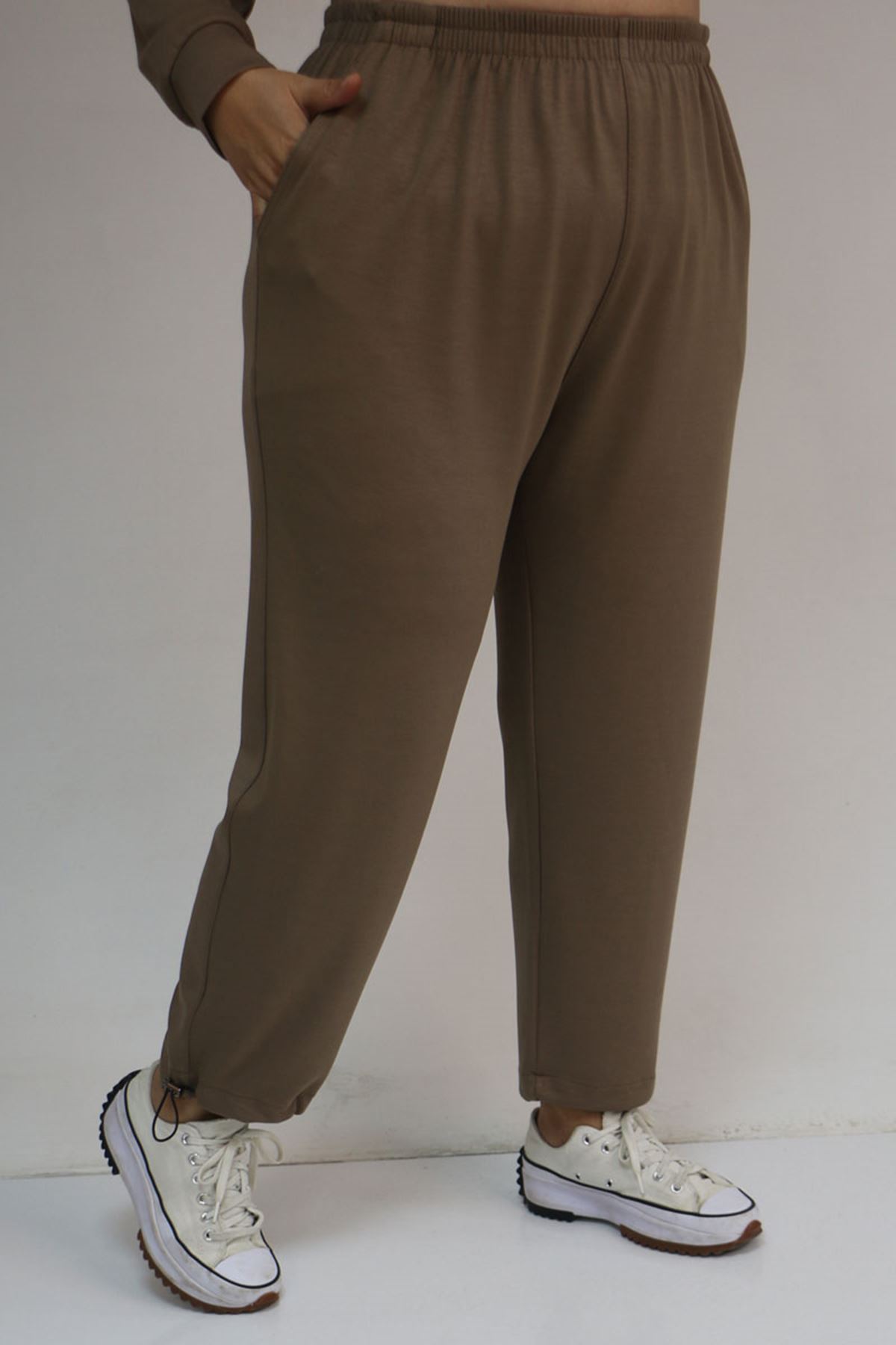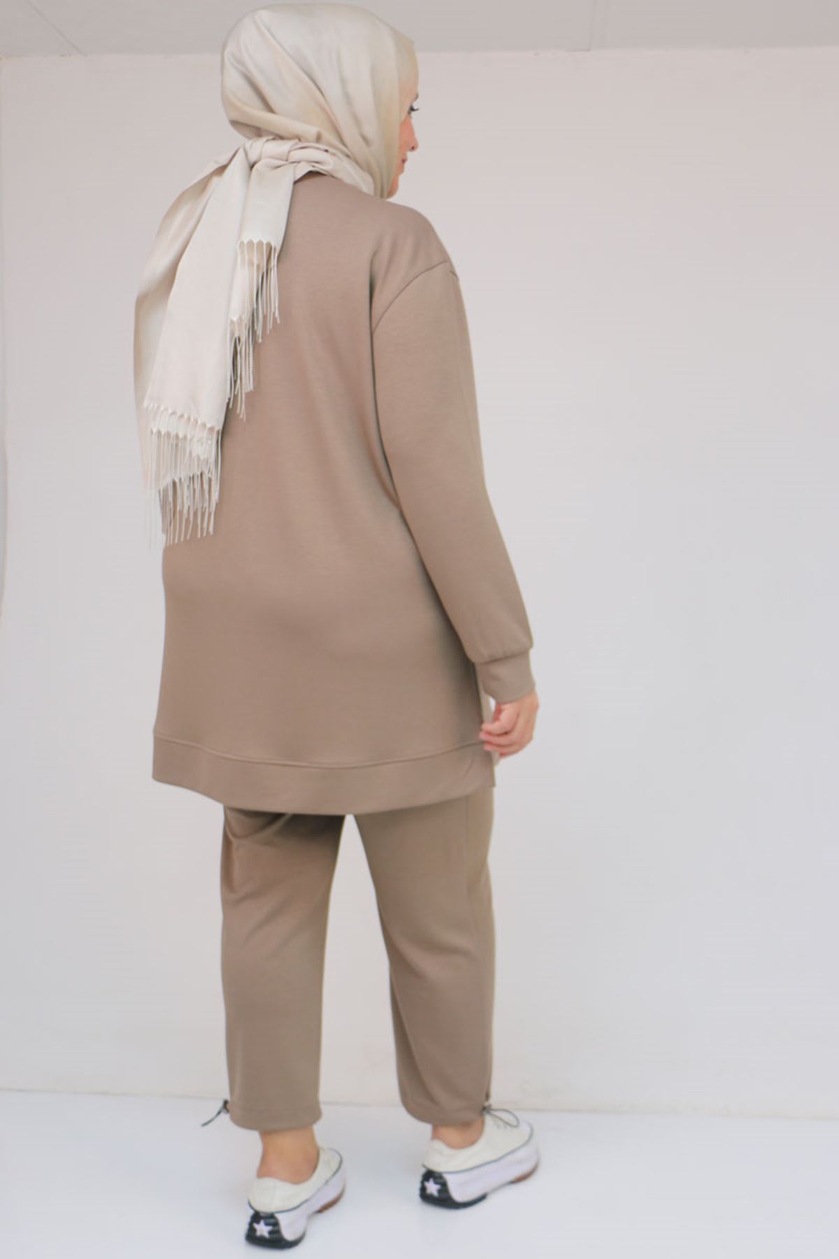 57052 Büyük Beden Pantolon Paçası Lastikli İkili Modal Takım - Vizon