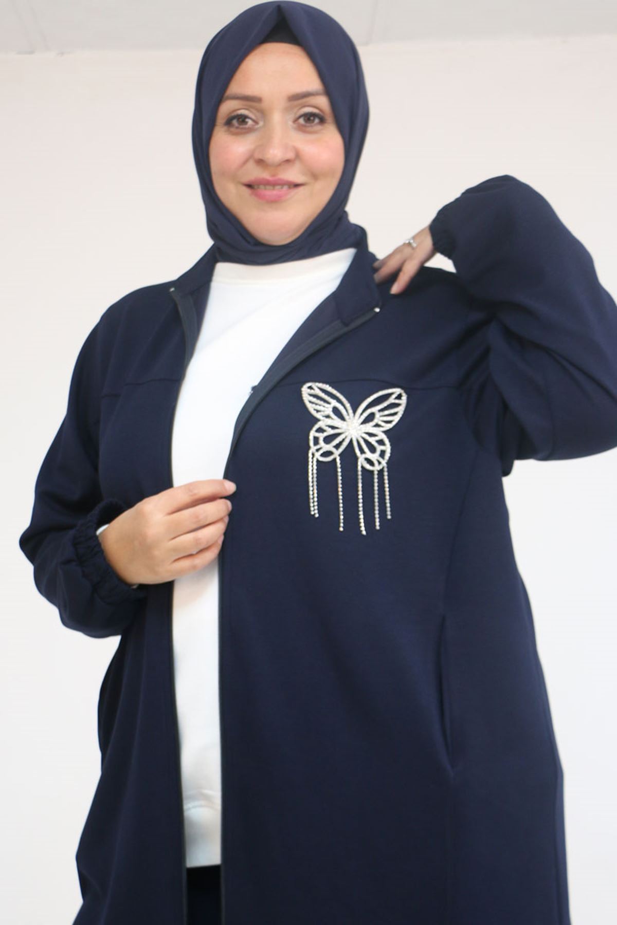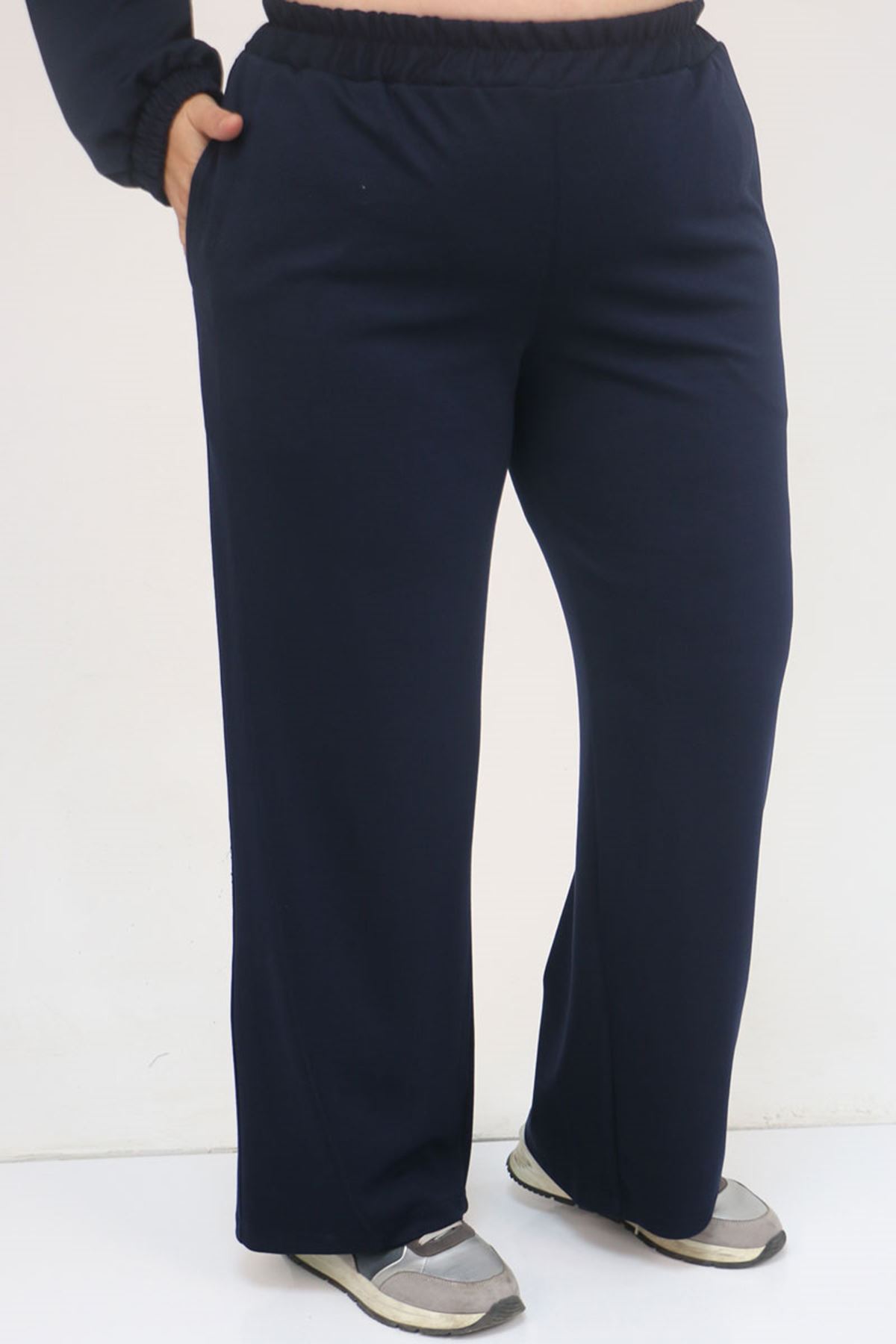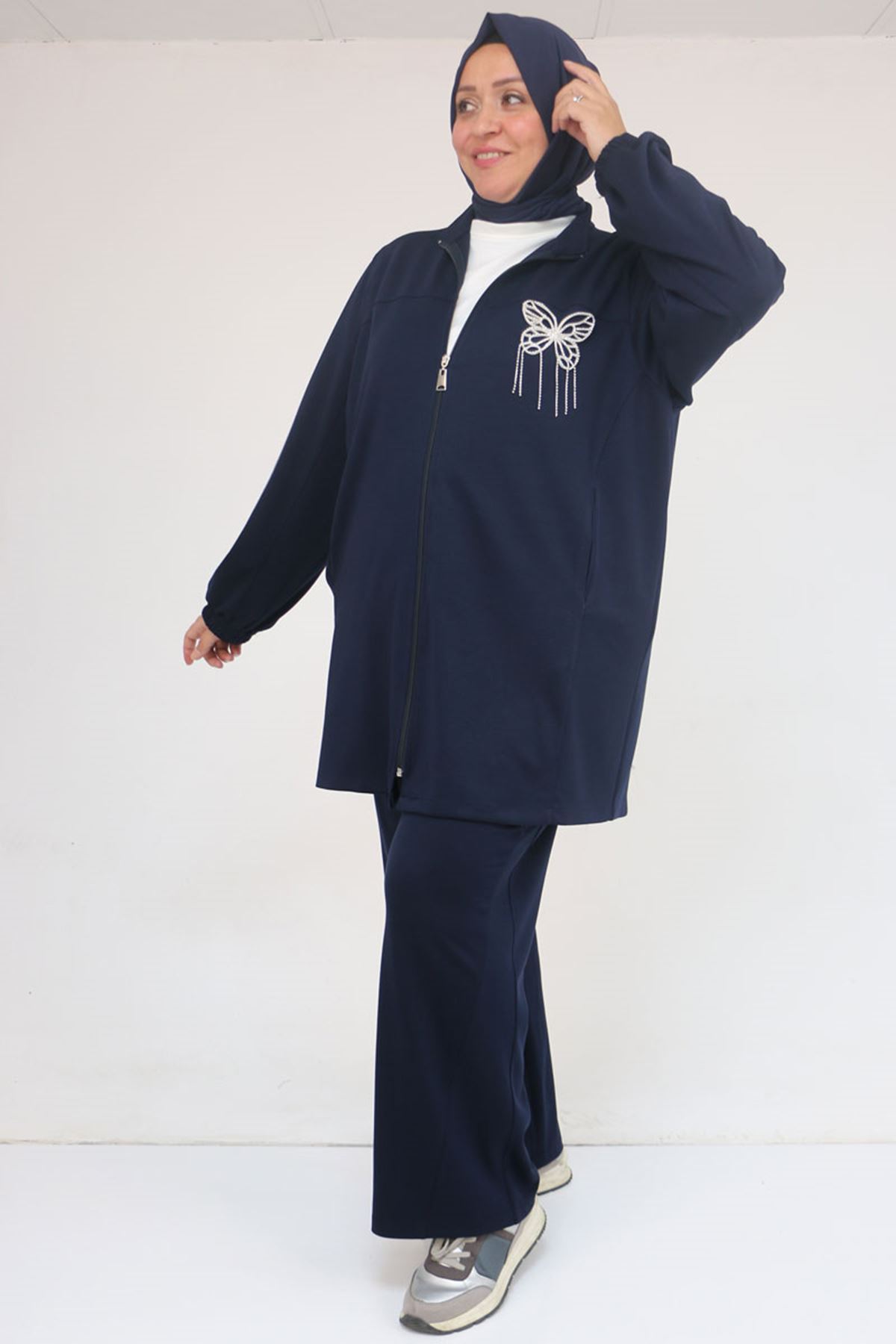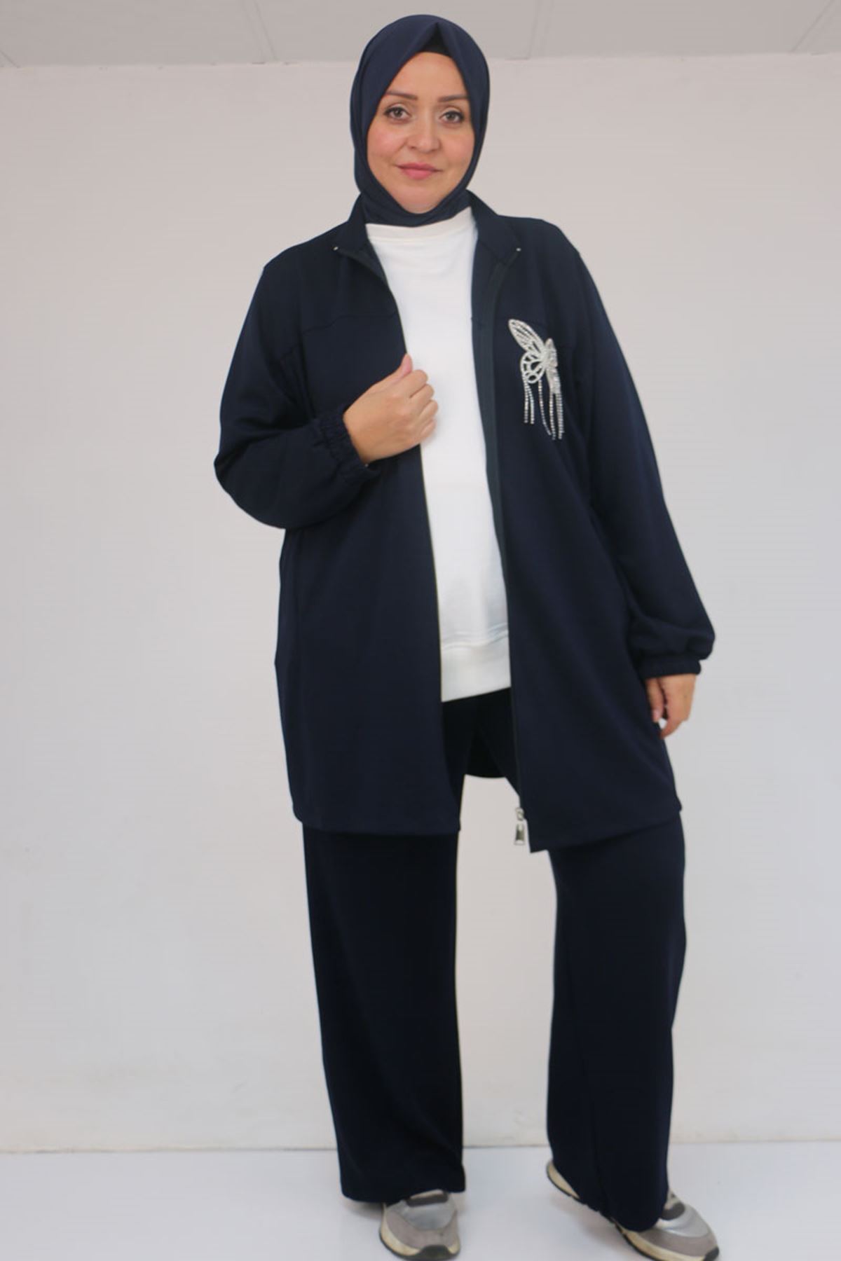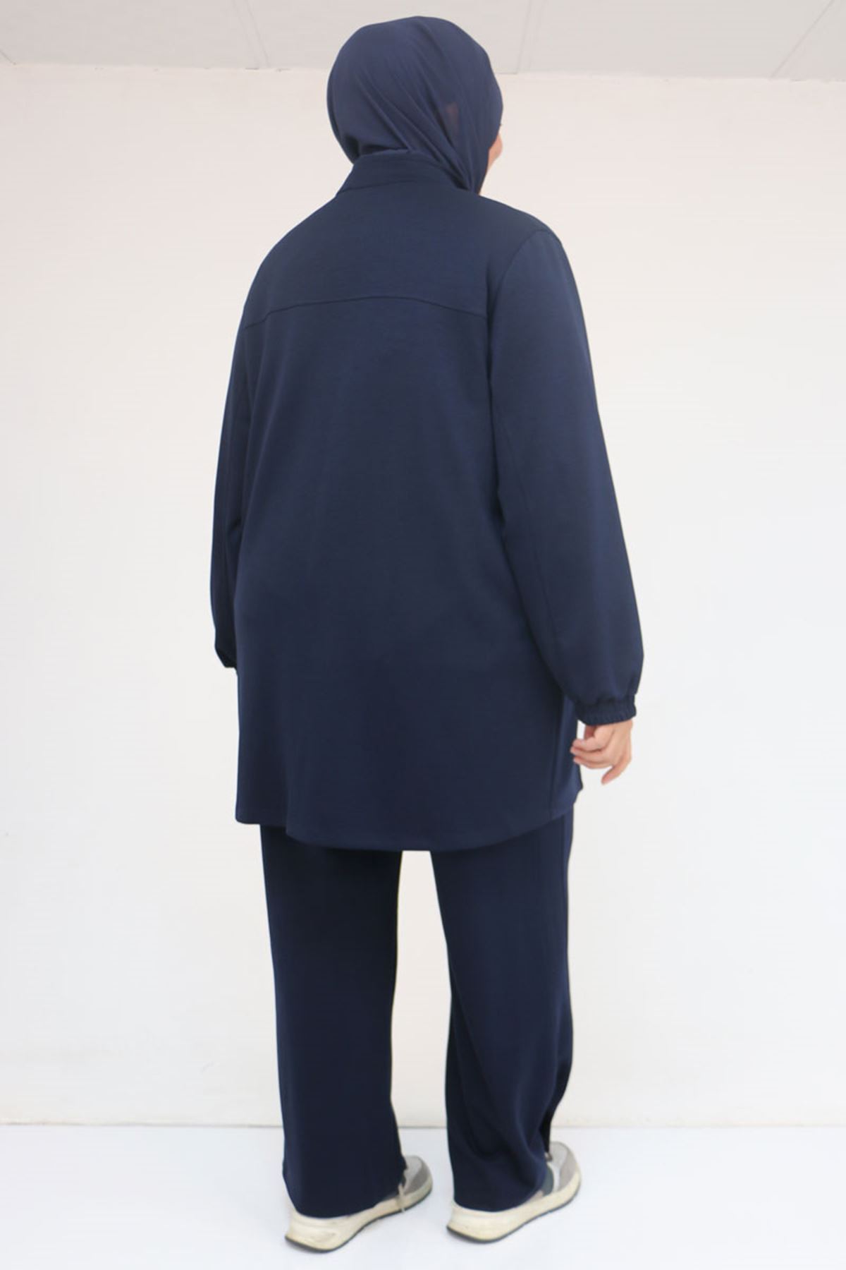 57057 Büyük Beden Fermuarlı Pantolonlu Modal Takım - Lacivert