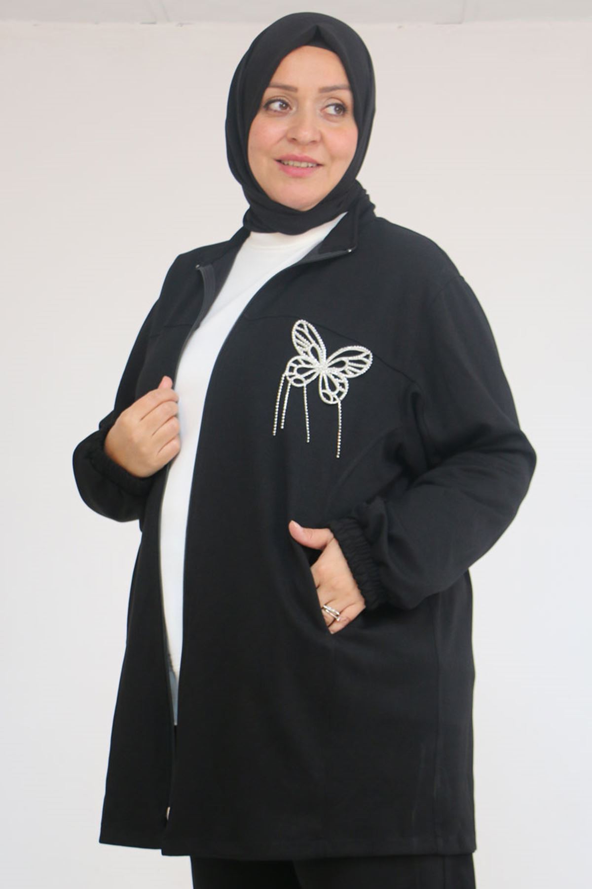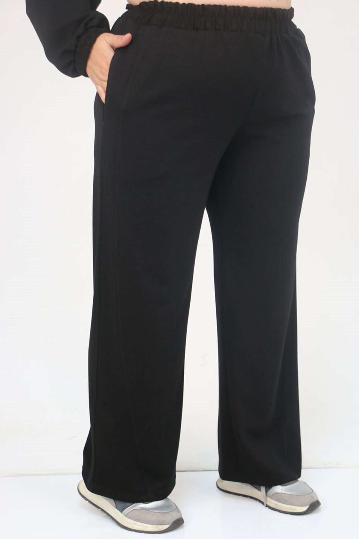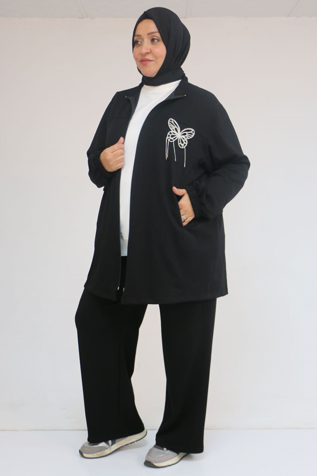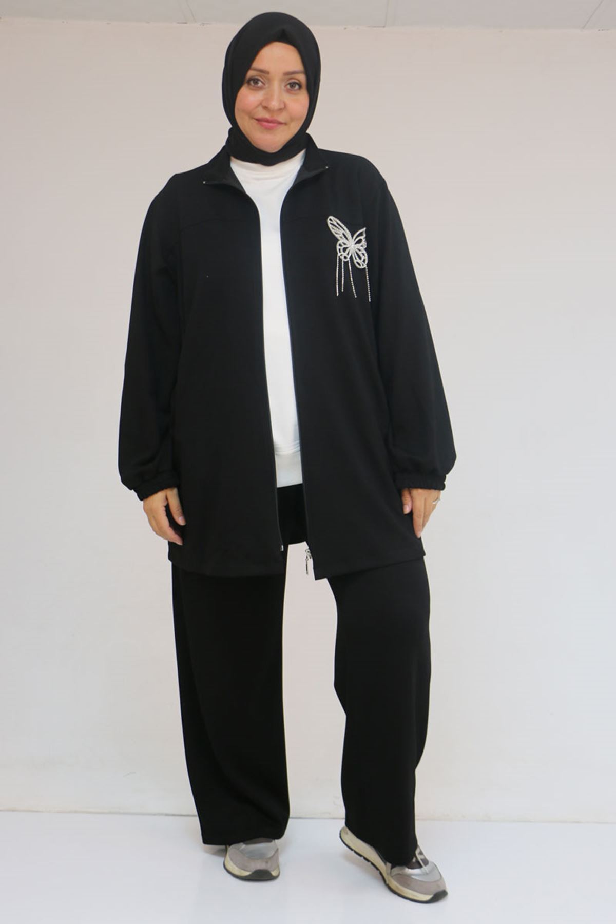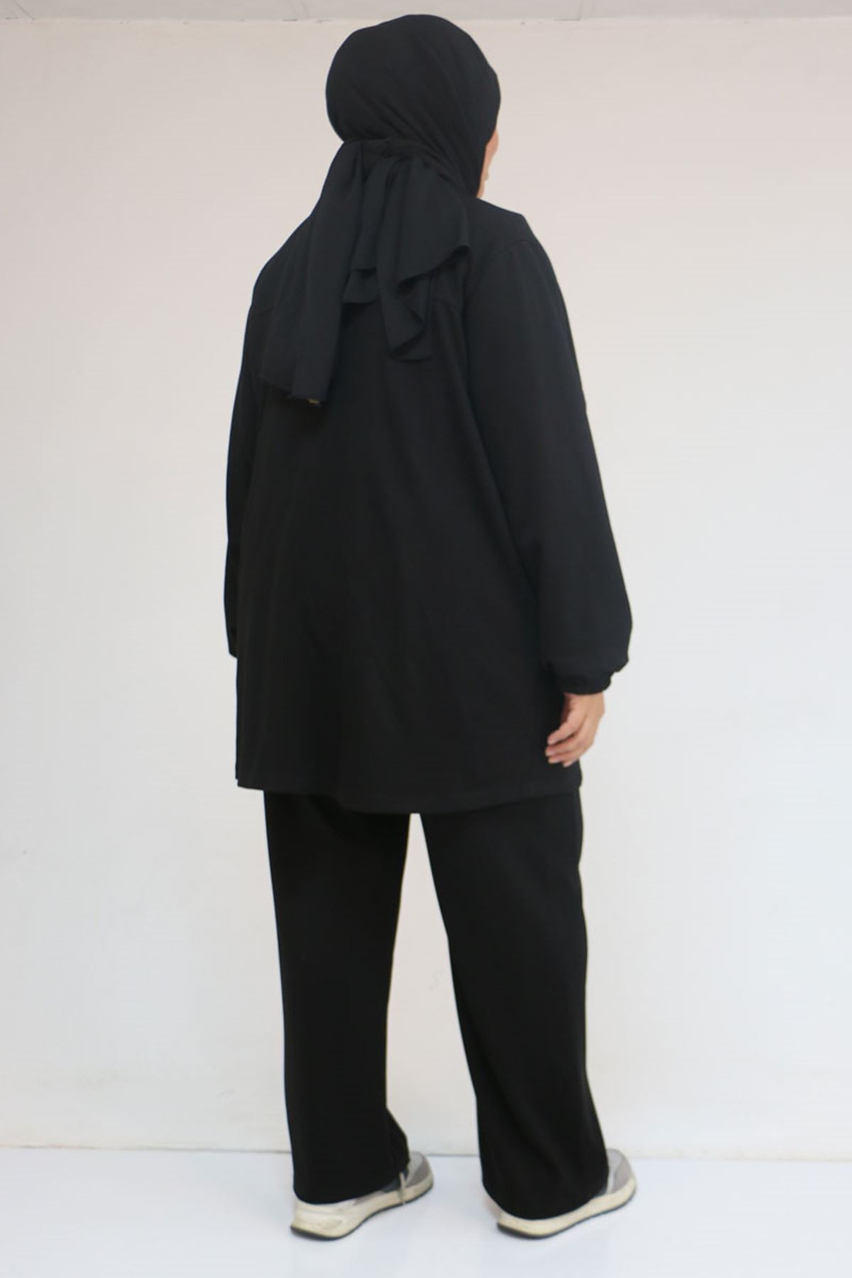 57057 Büyük Beden Fermuarlı Pantolonlu Modal Takım - Siyah