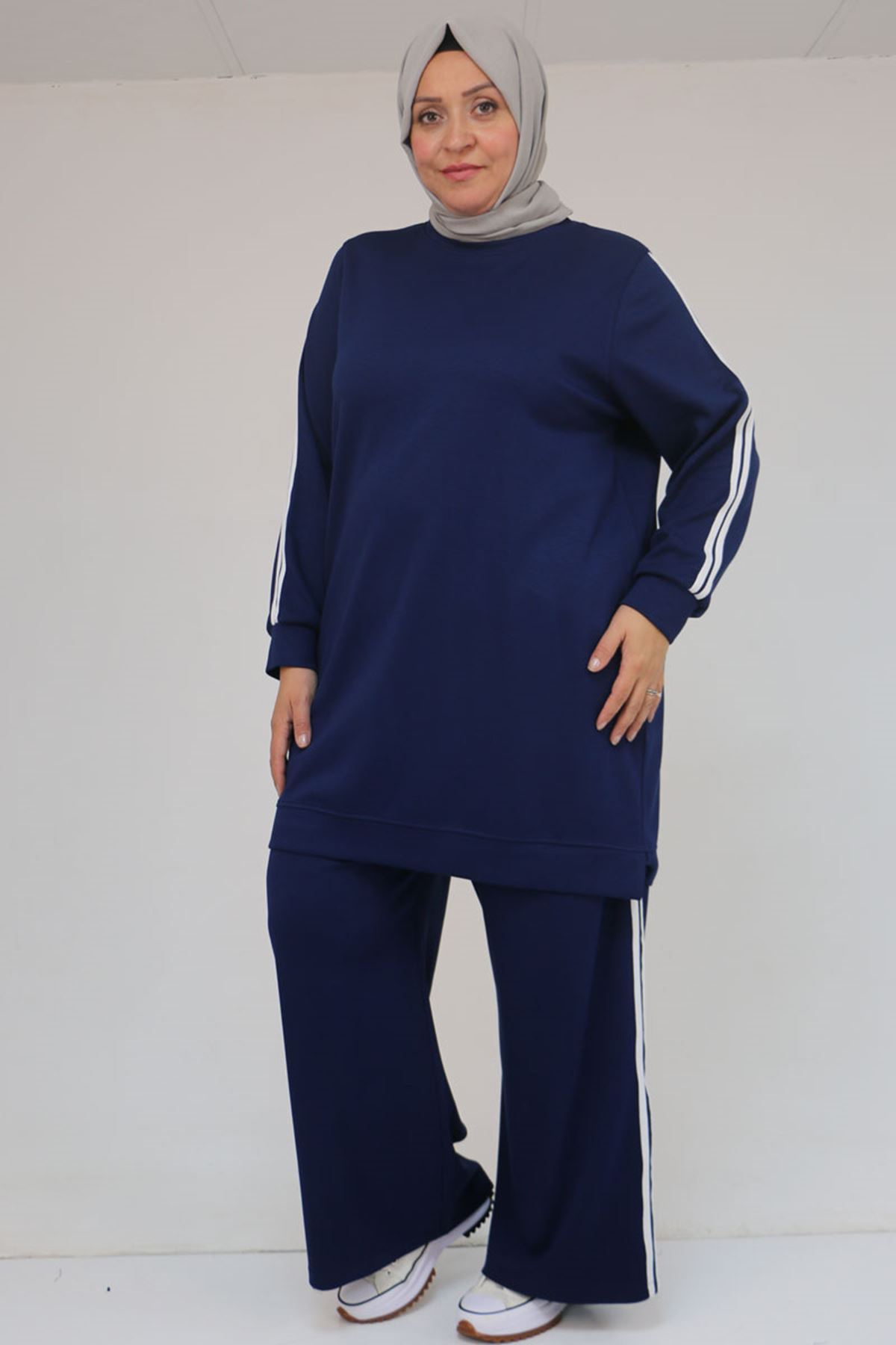 57060 Büyük Beden Omzu Şeritli Modal Pantolonlu Takım - İndigo