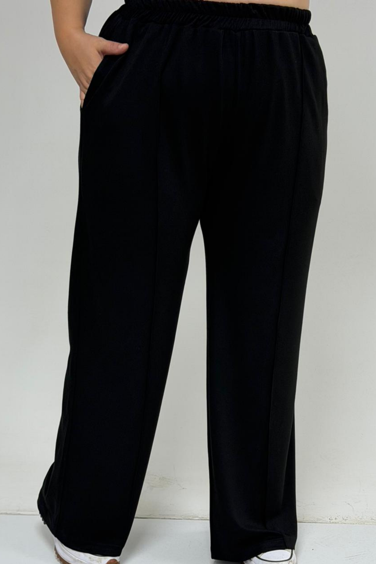 57304 Büyük Beden Ceketli Modal-Kapitone Üçlü Takım - Siyah-Siyah