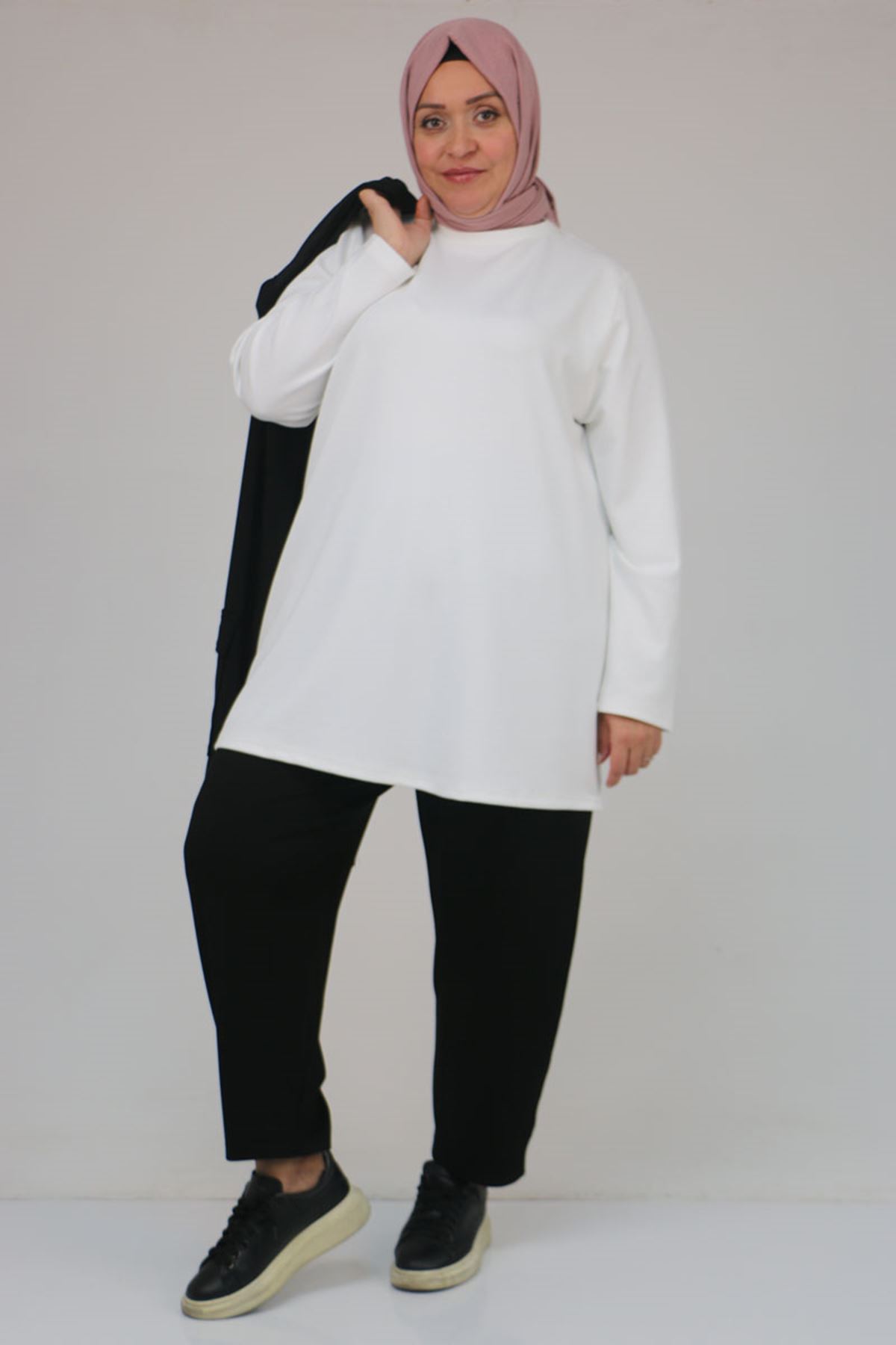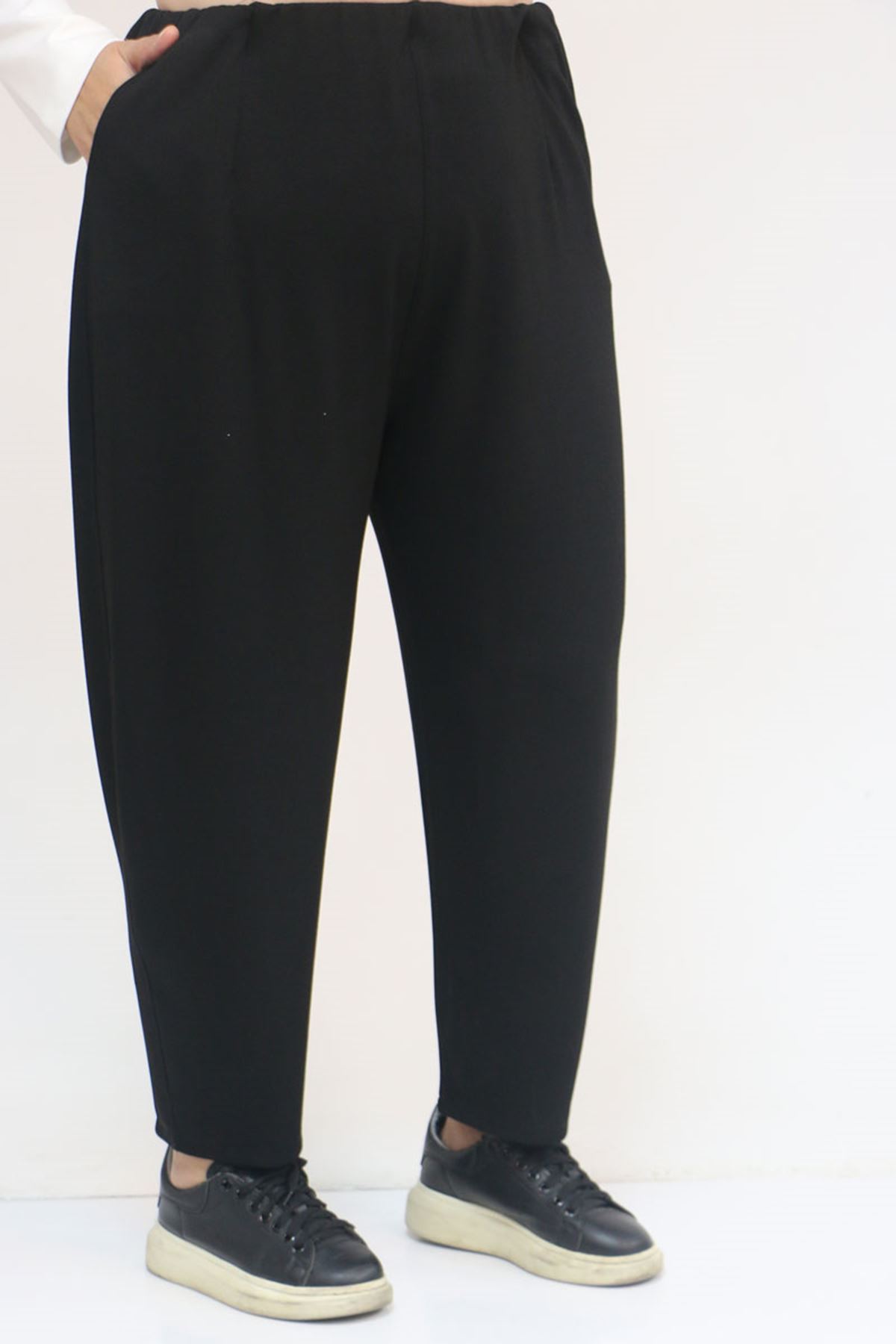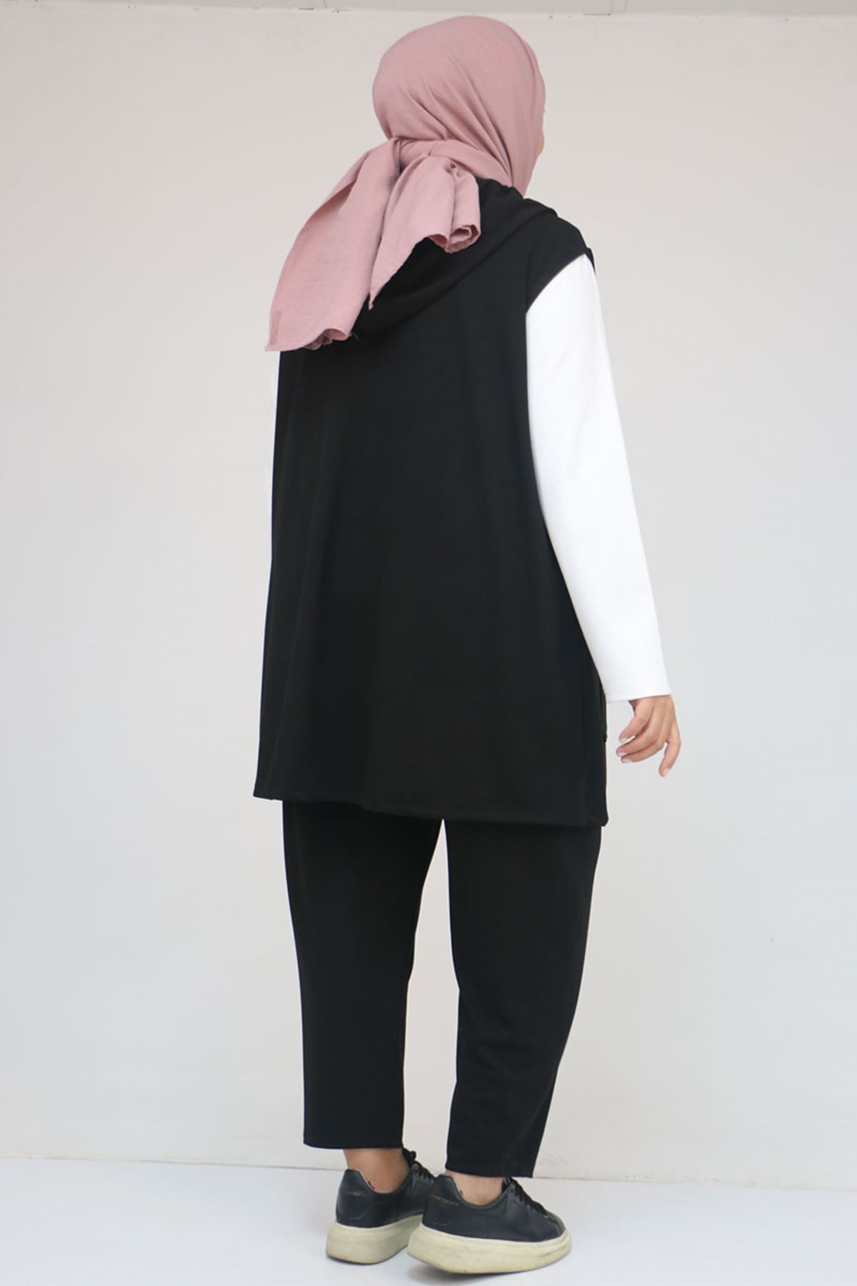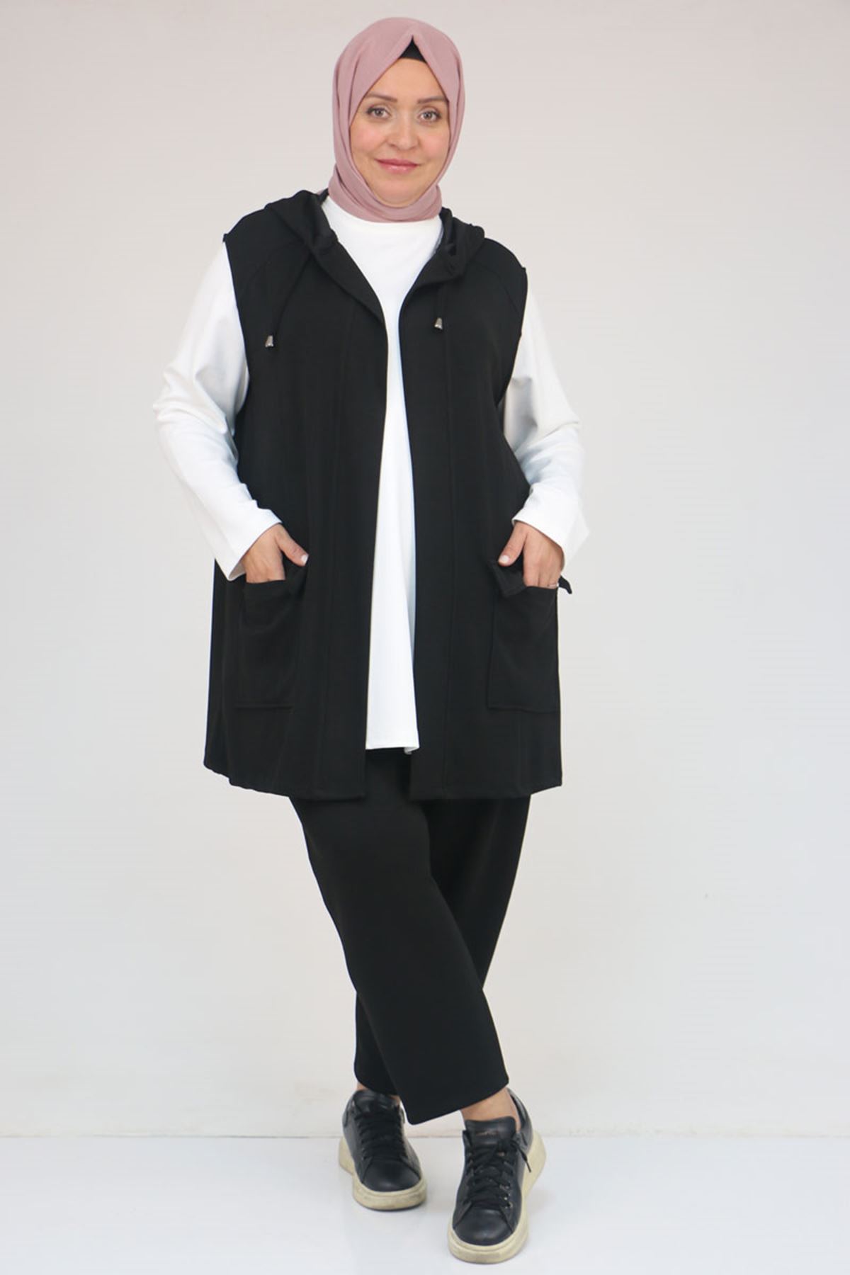 57305 Büyük Beden Modal Yeleği Cepli Üçlü Takım - Siyah