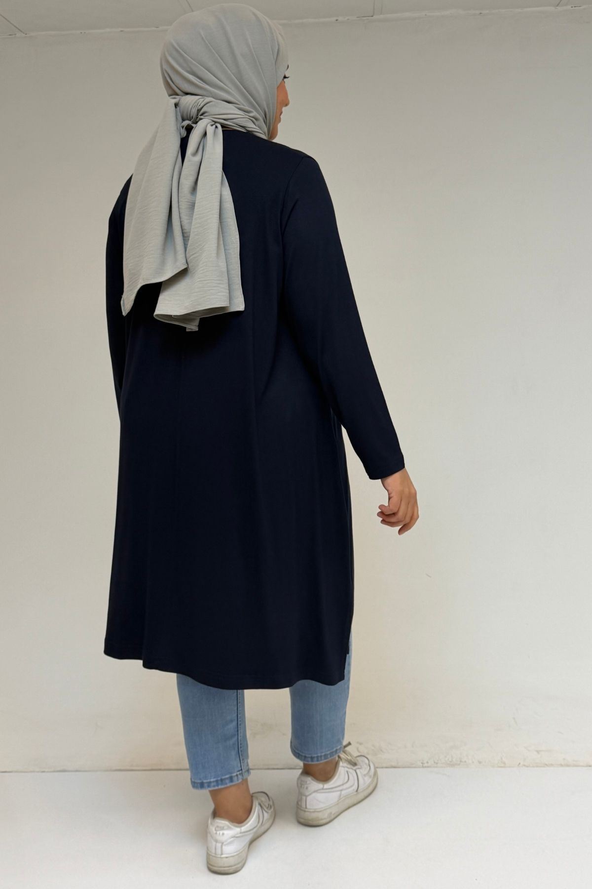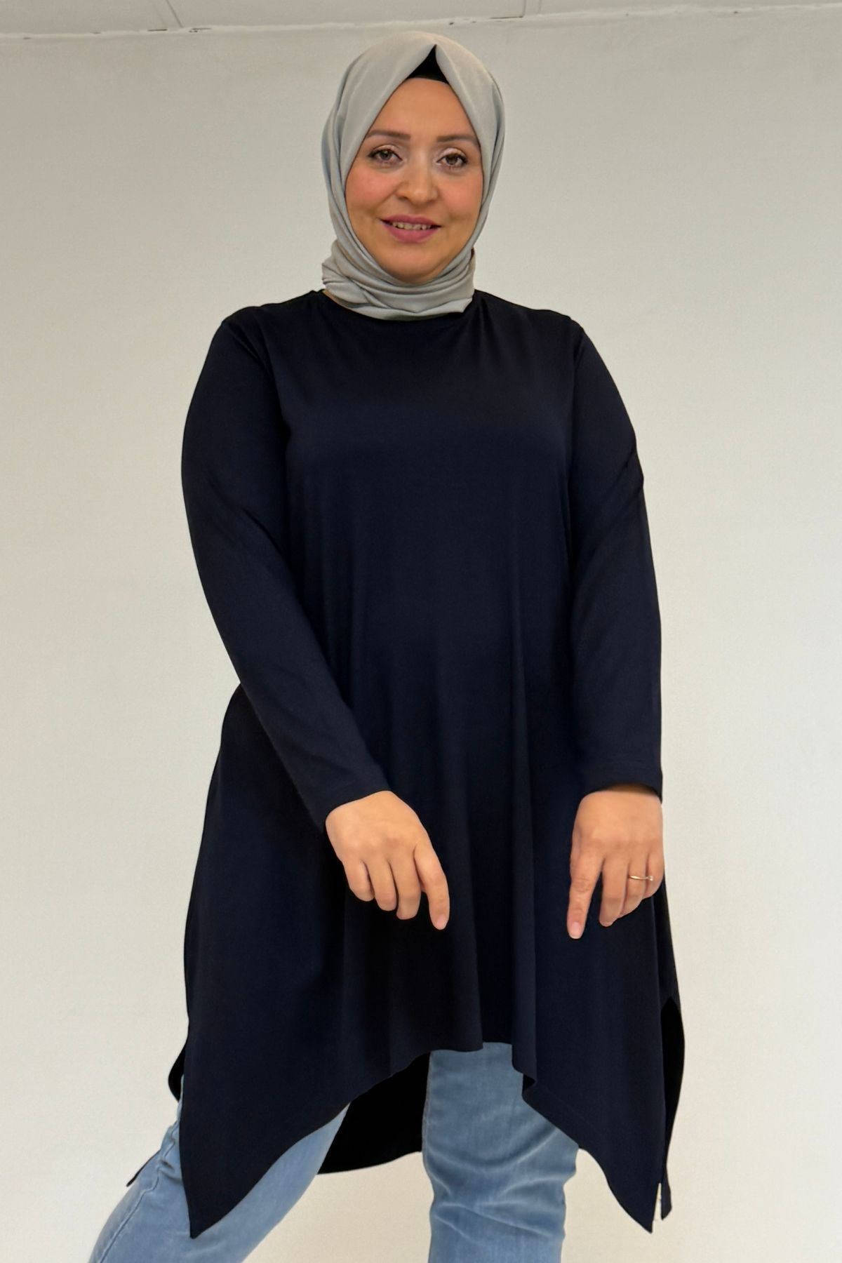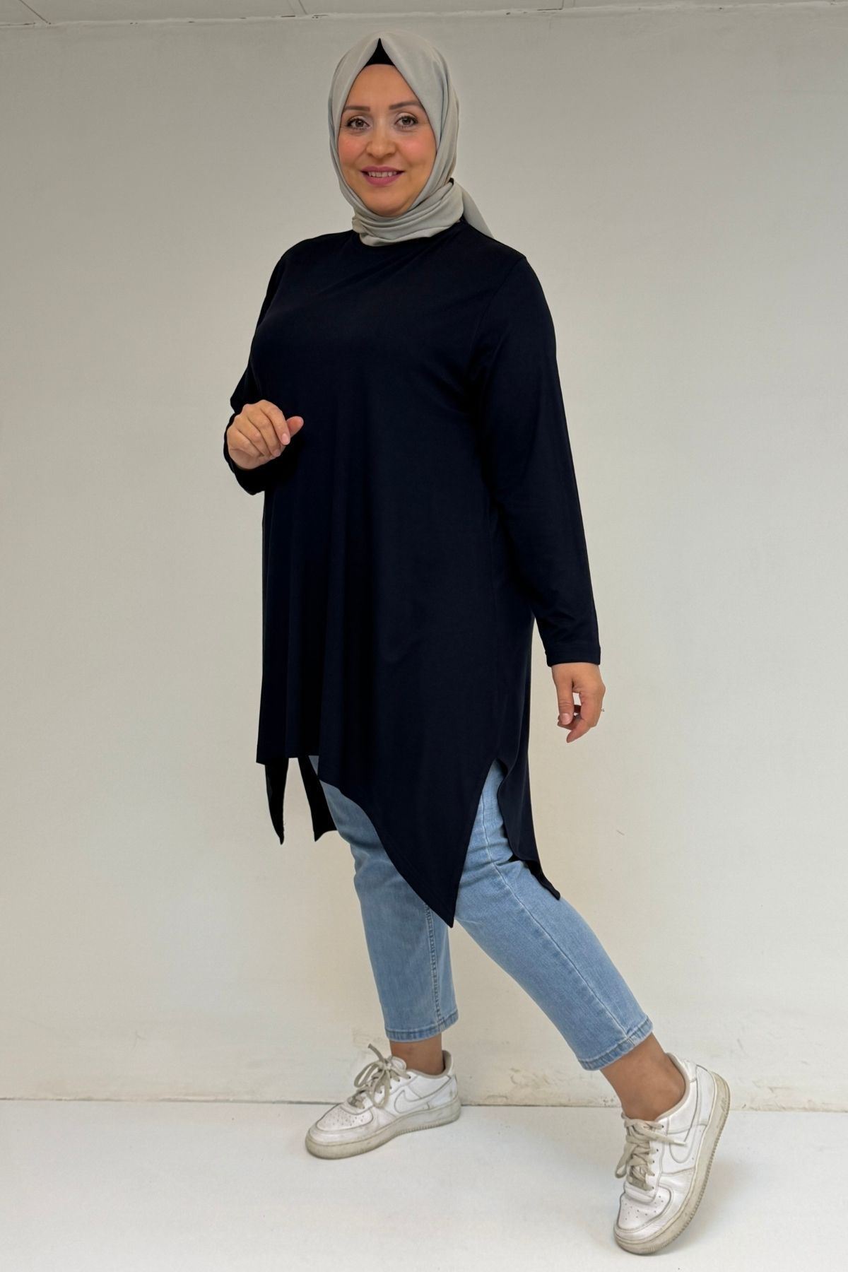 58070 Büyük Beden Asimetrik Kesim Penye Tunik - Lacivert