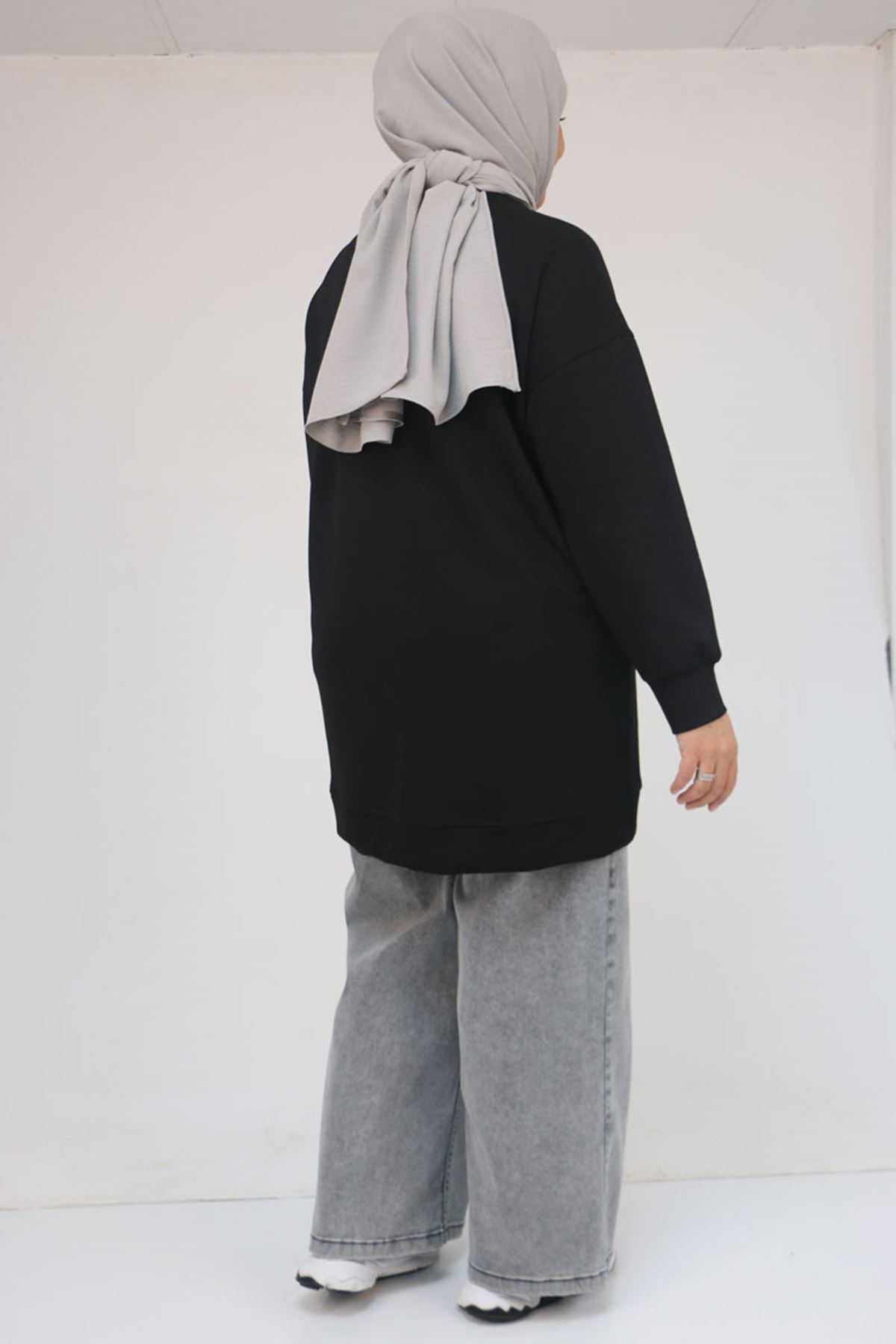 58133 Büyük Beden Kanguru Cepli Modal Tunik - Siyah