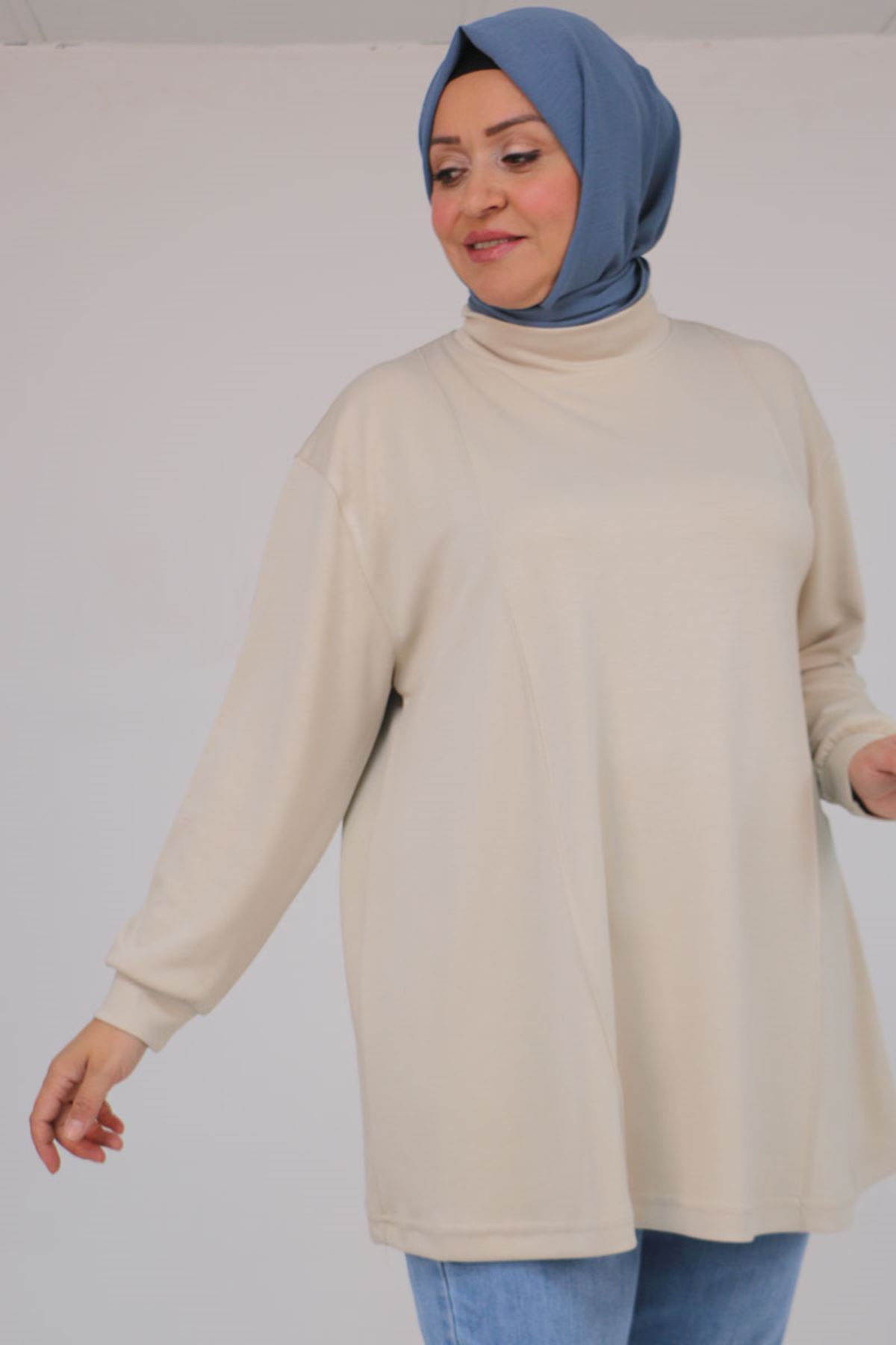 58134 Büyük Beden Boğazlı Yaka Modal Tunik - Bej