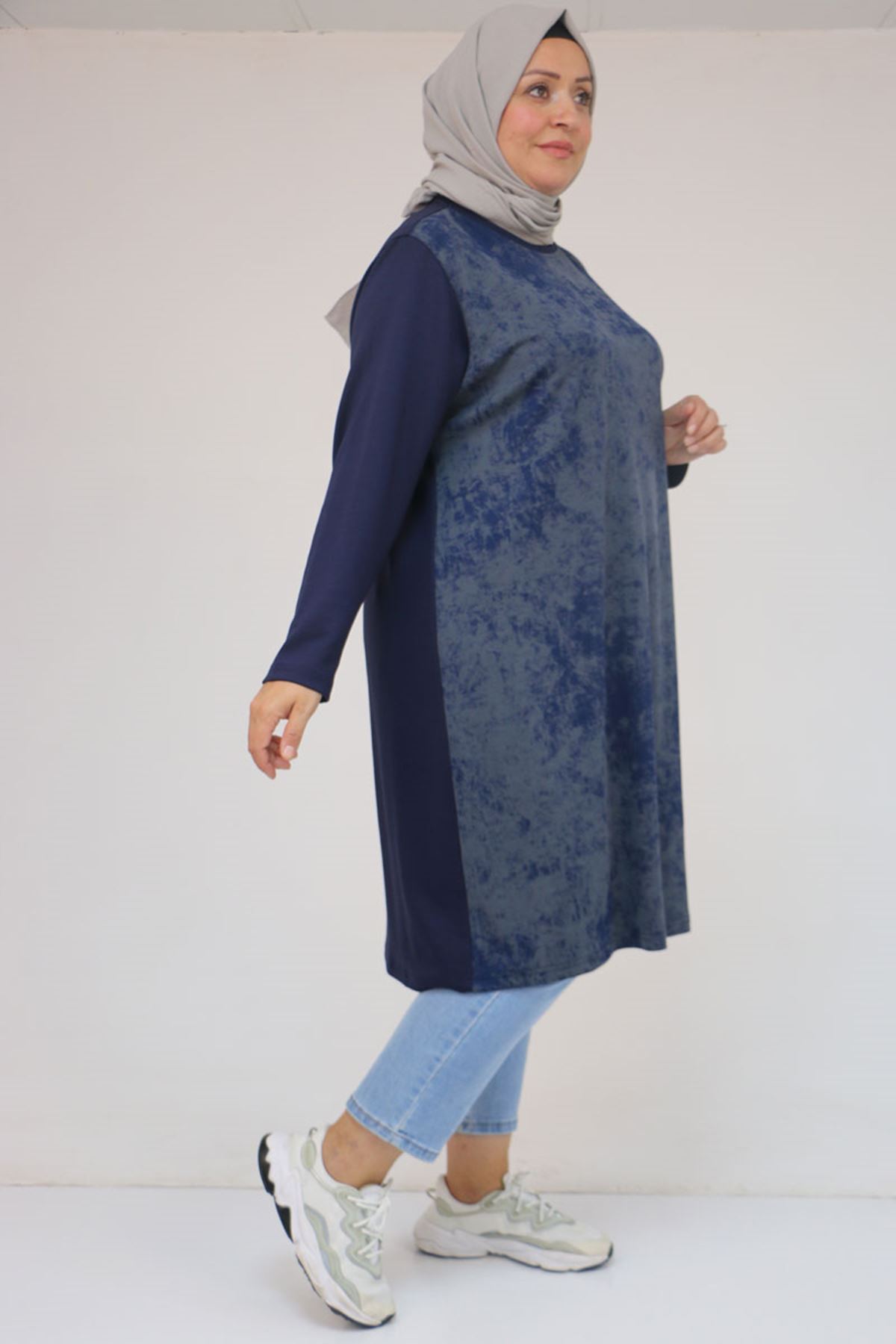 58161 Büyük Beden Basic Modal Tunik - İndigo