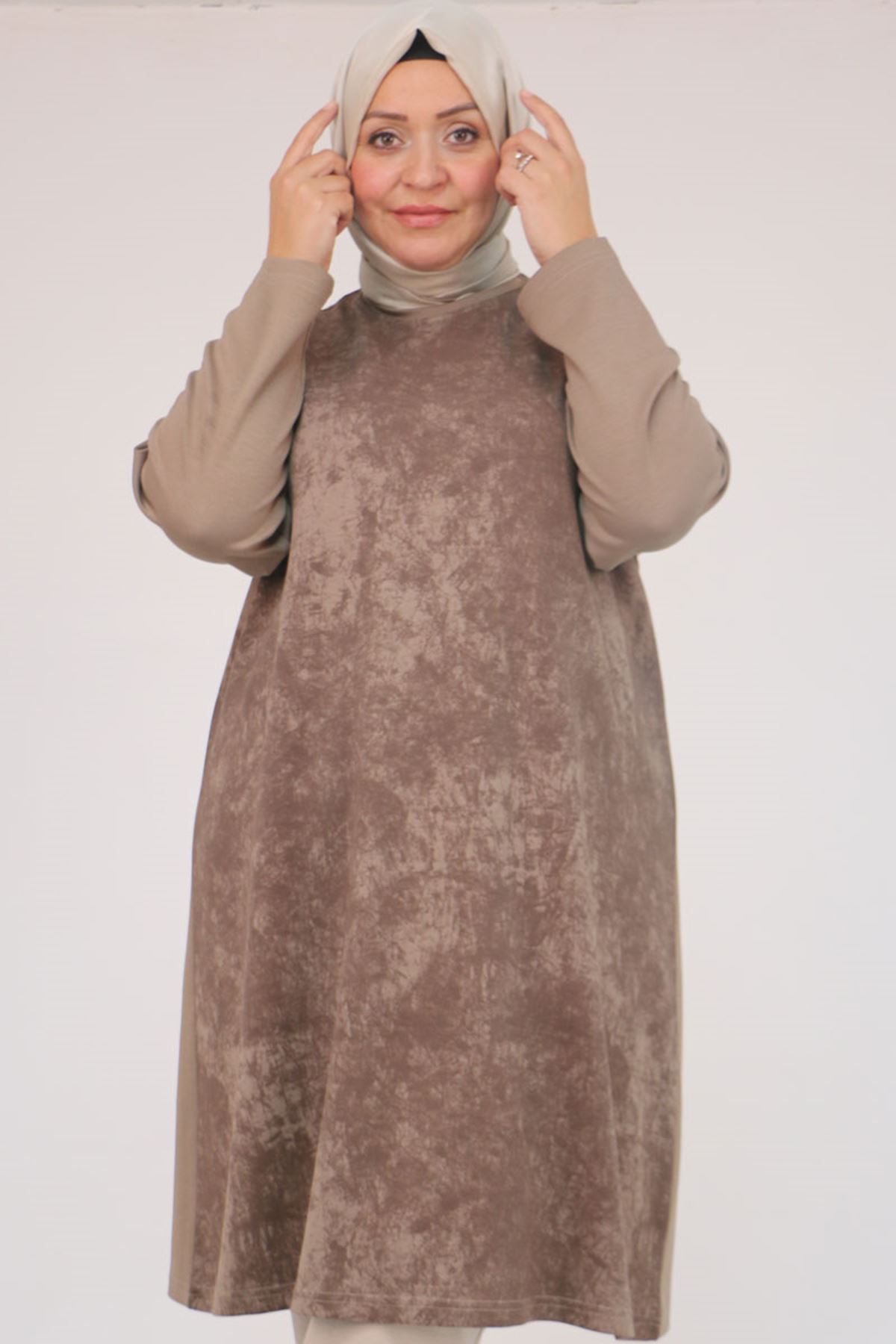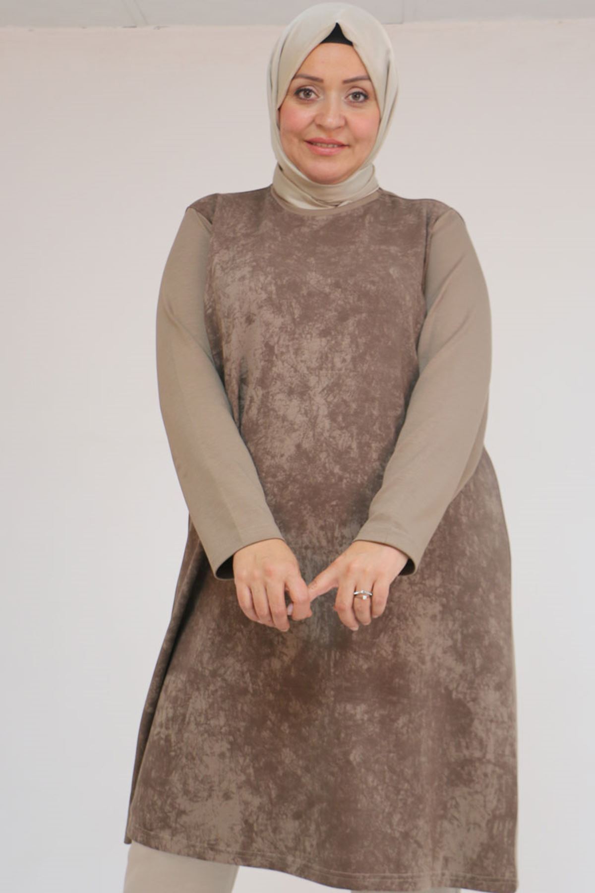 58161 Büyük Beden Basic Modal Tunik - Vizon