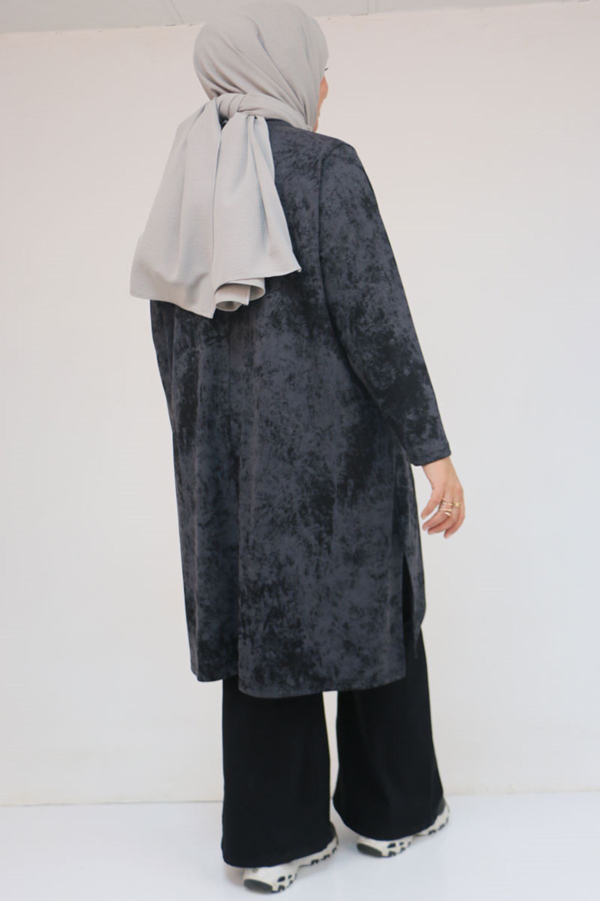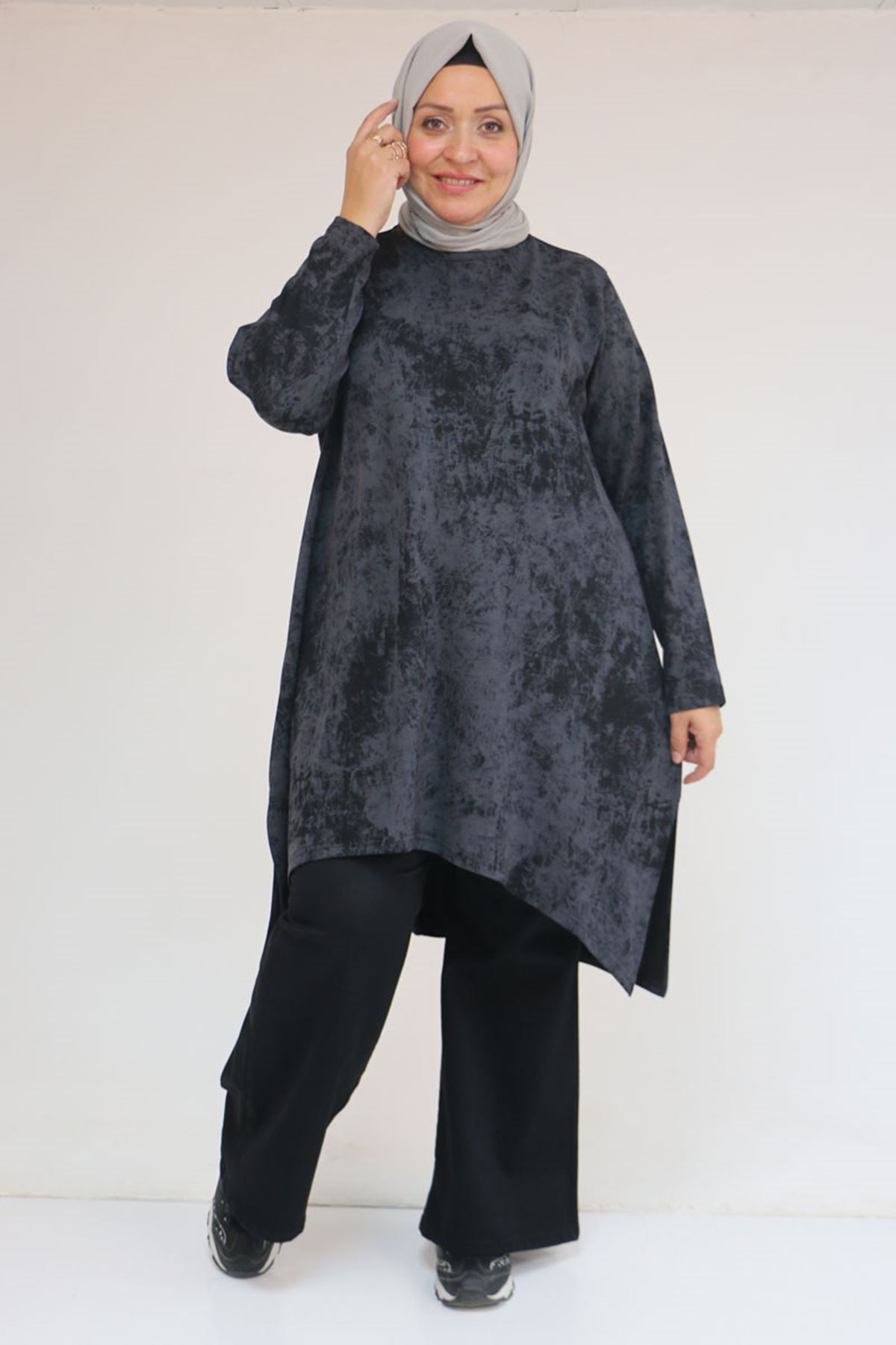 58163 Büyük Beden Eteği Simetri Kesim Batik Tunik - Siyah