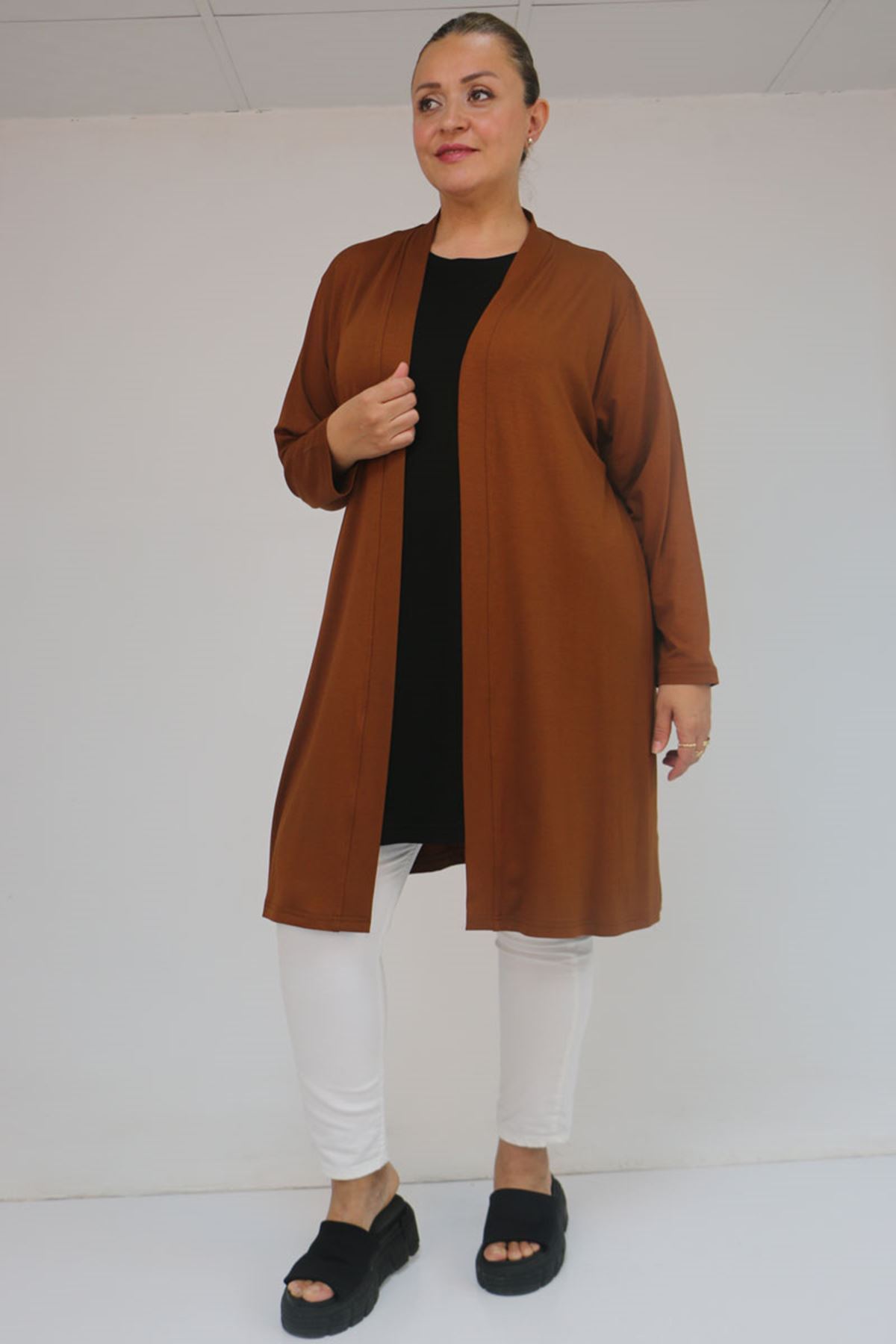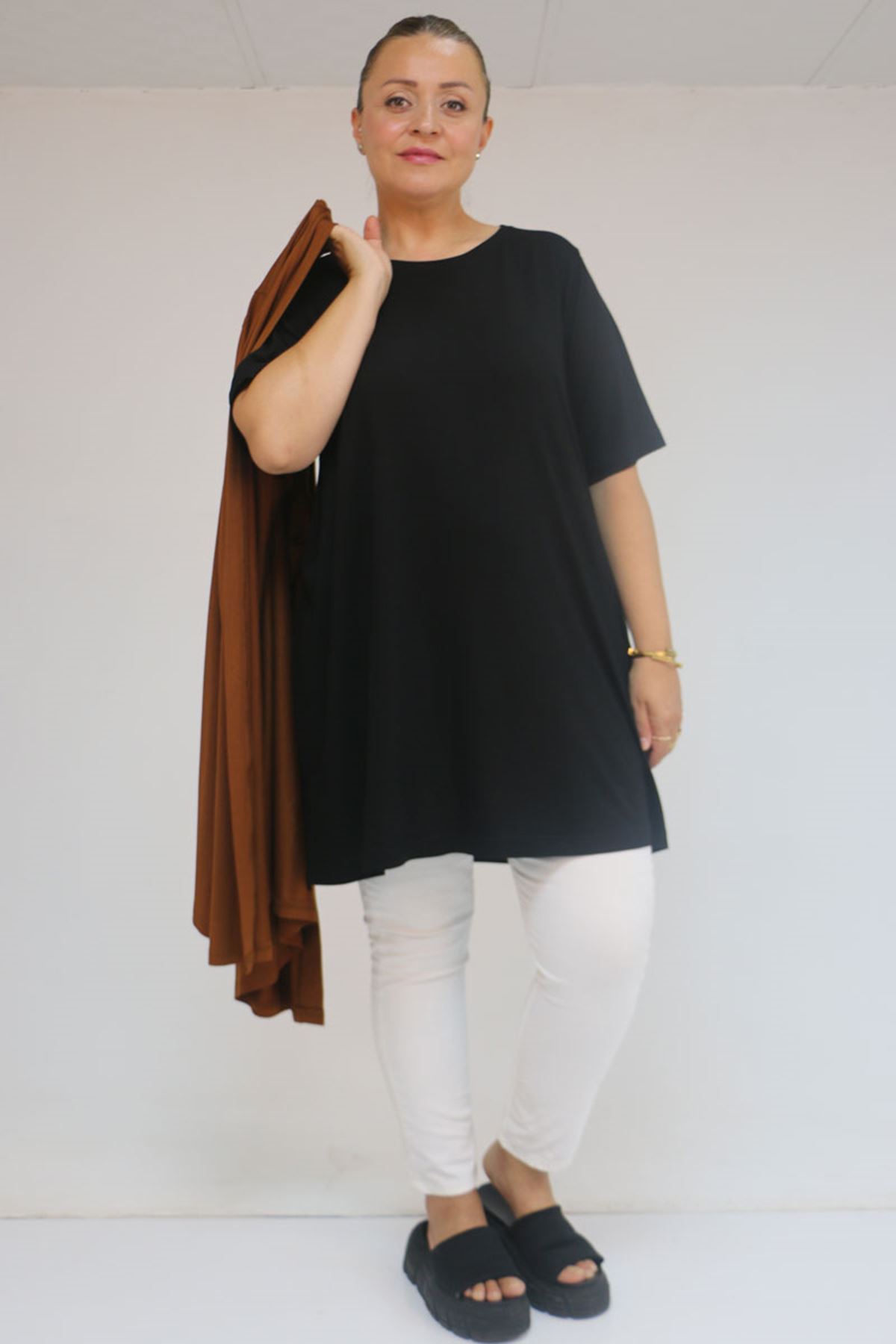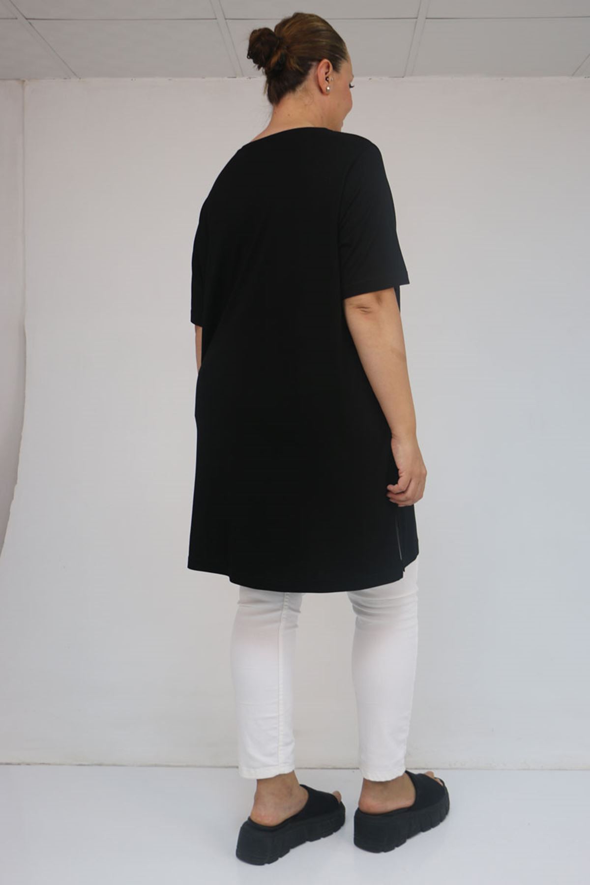 58507 Büyük Beden Yakası Biyeli Penye Tişört - Siyah