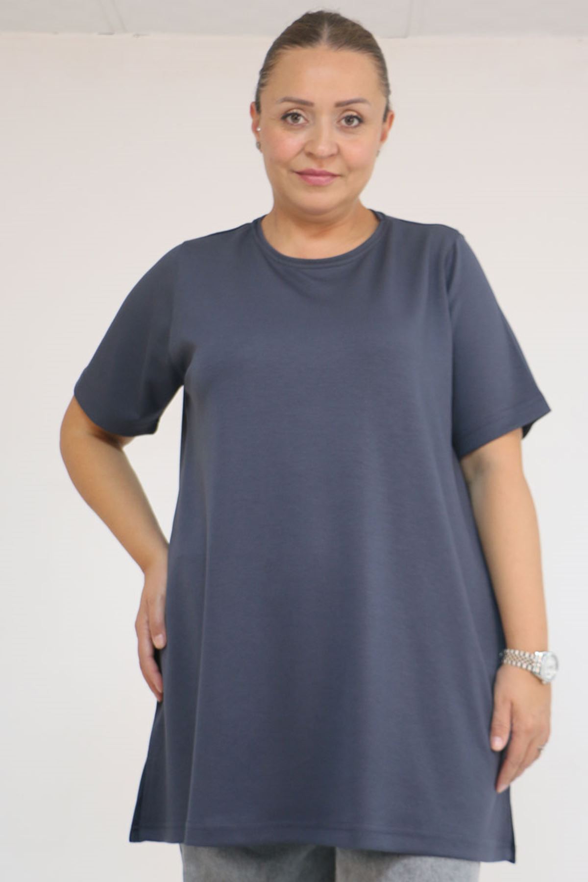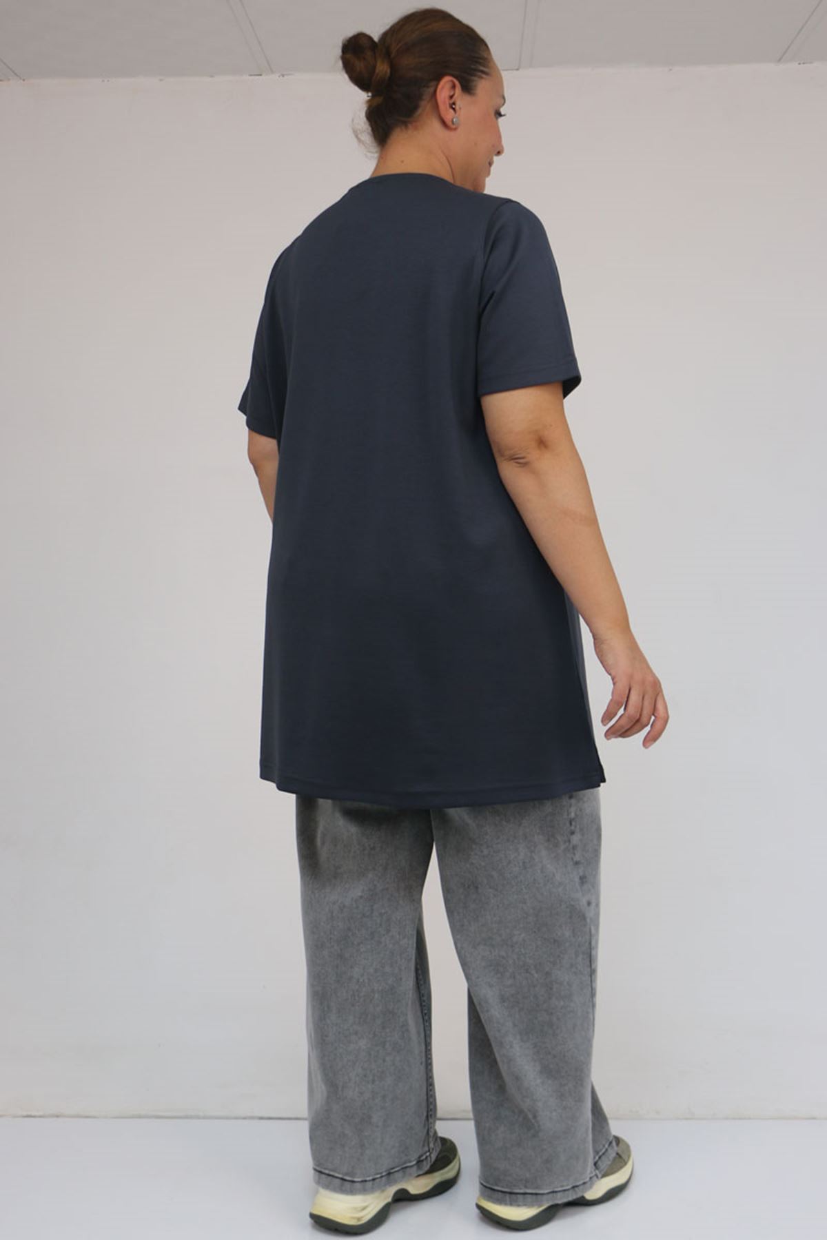 58508 Büyük Beden Yakası Biyeli Modal Tişört - Antrasit