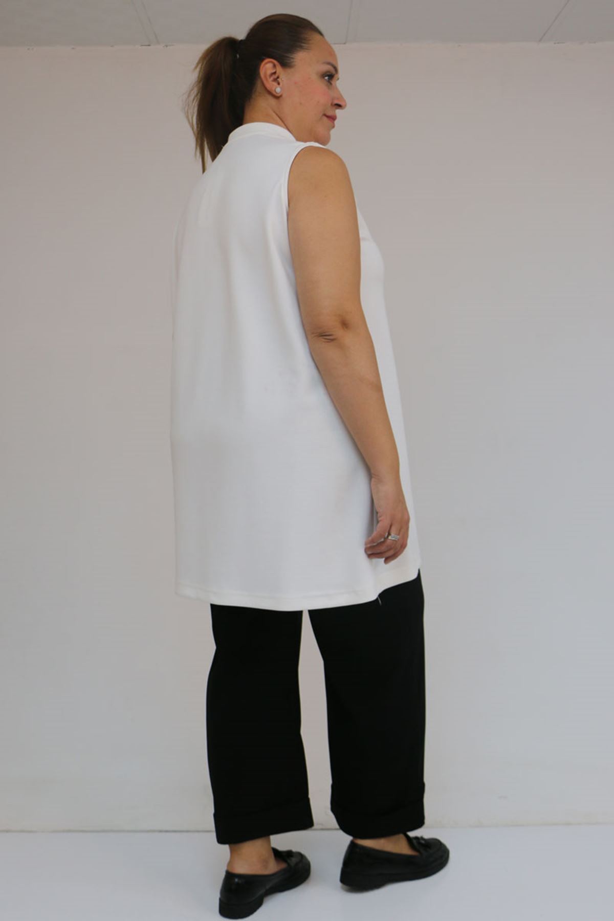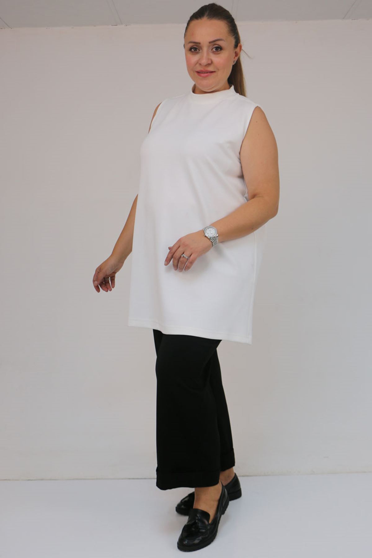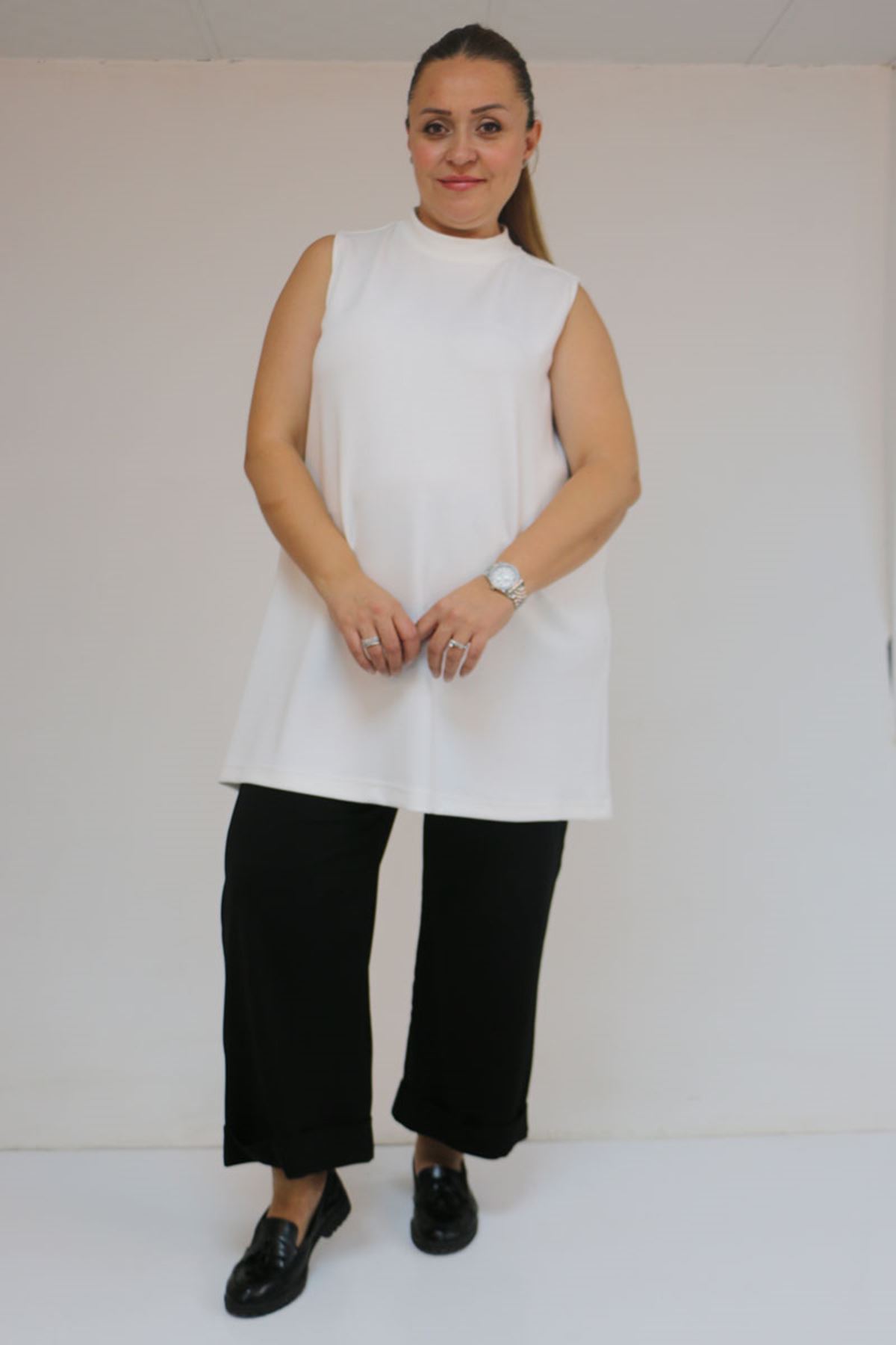 58509 Büyük Beden Uzun Modal İçlik - Ekru