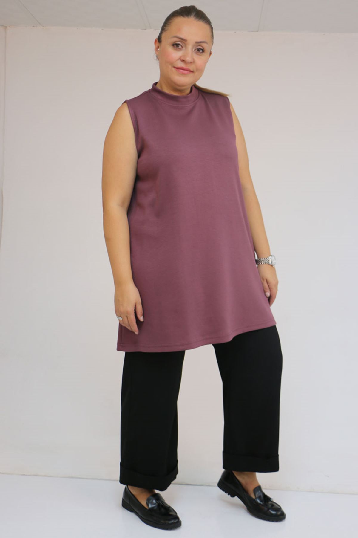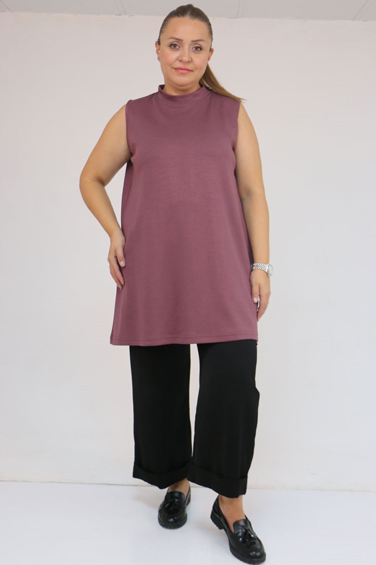 58509 Büyük Beden Uzun Modal İçlik - Gül Kurusu