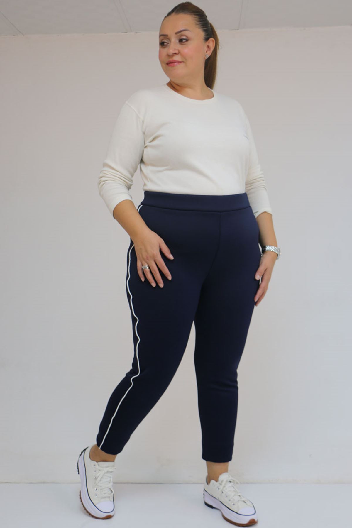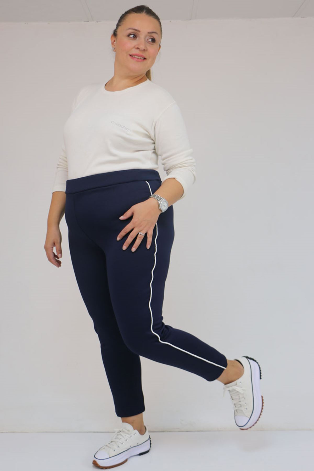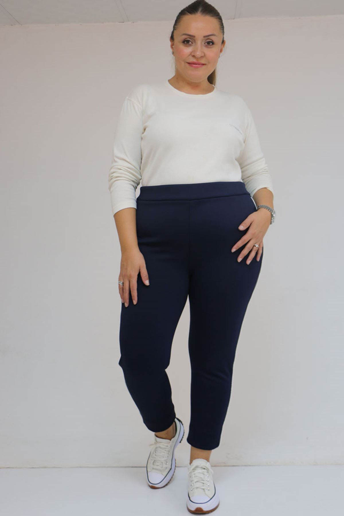 59504 Büyük Beden Biyeli İçi Şardonlu Tayt - Lacivert