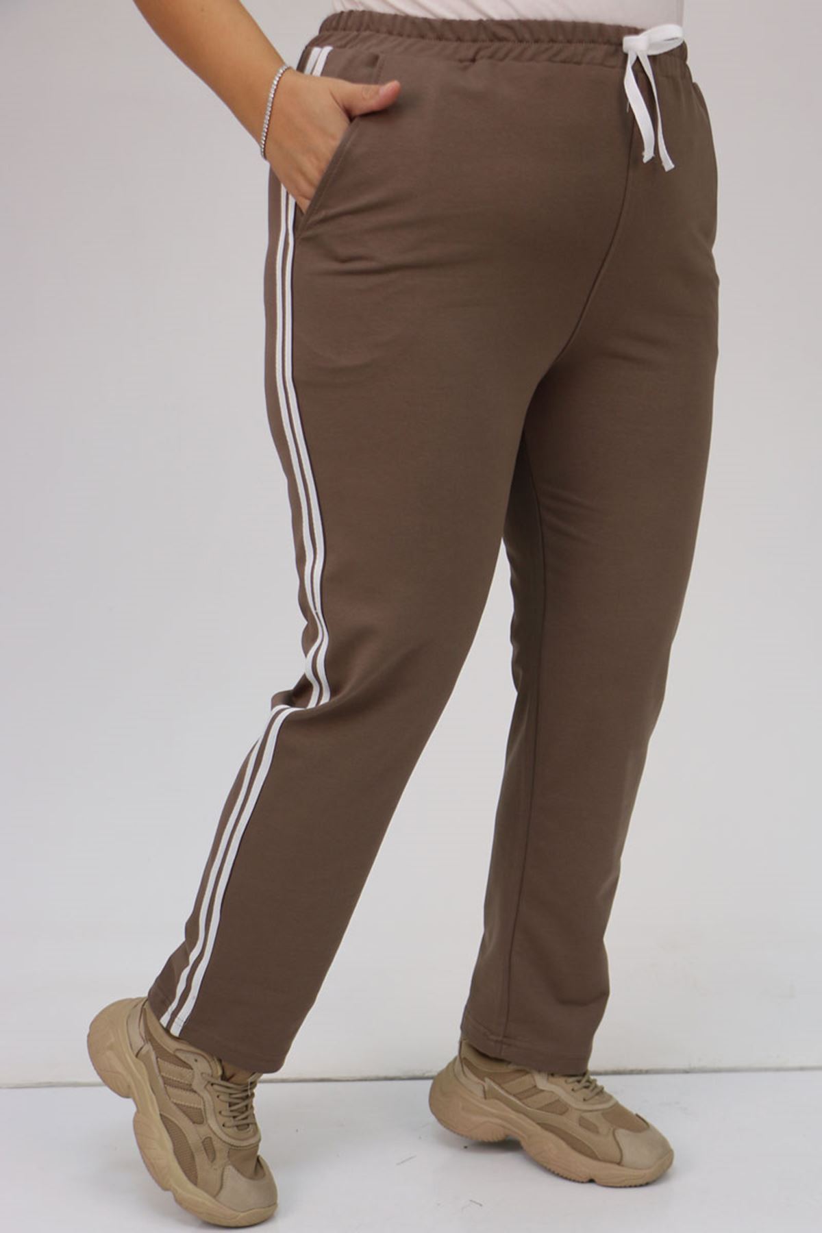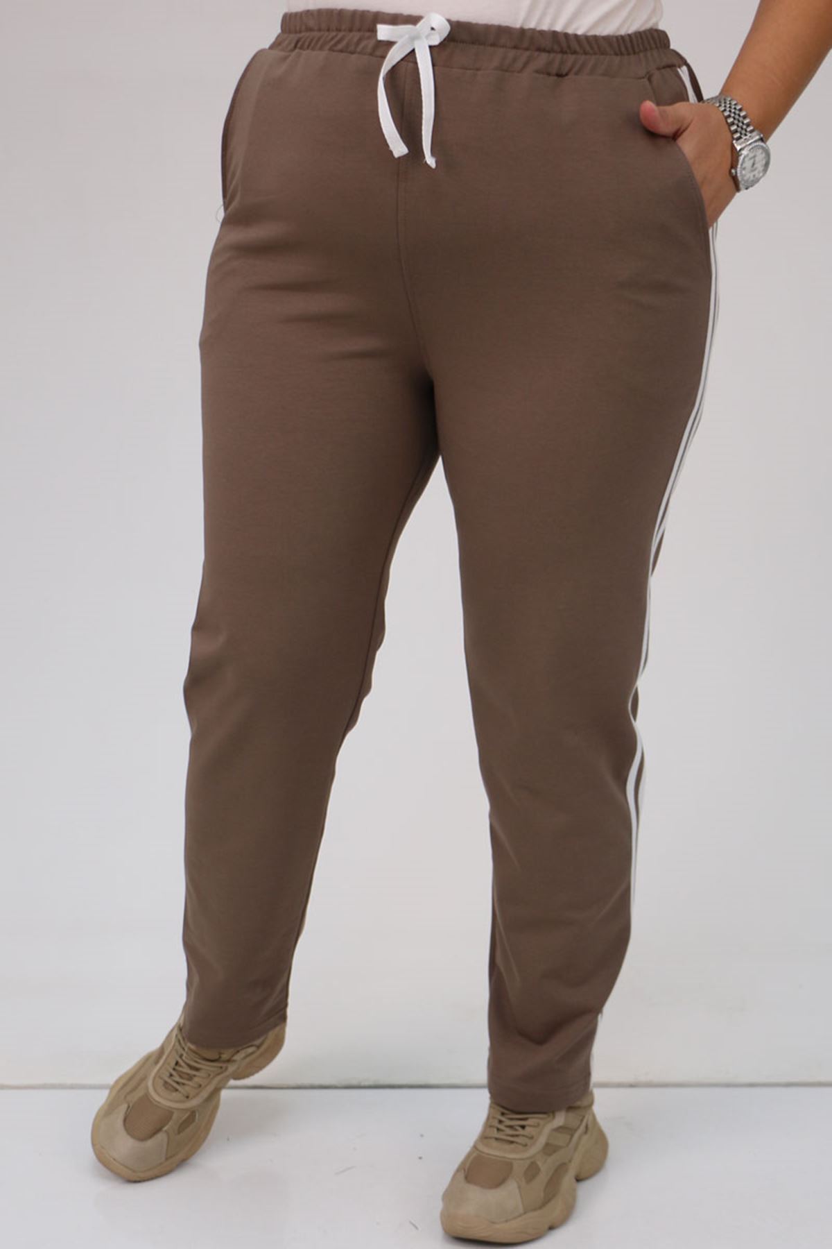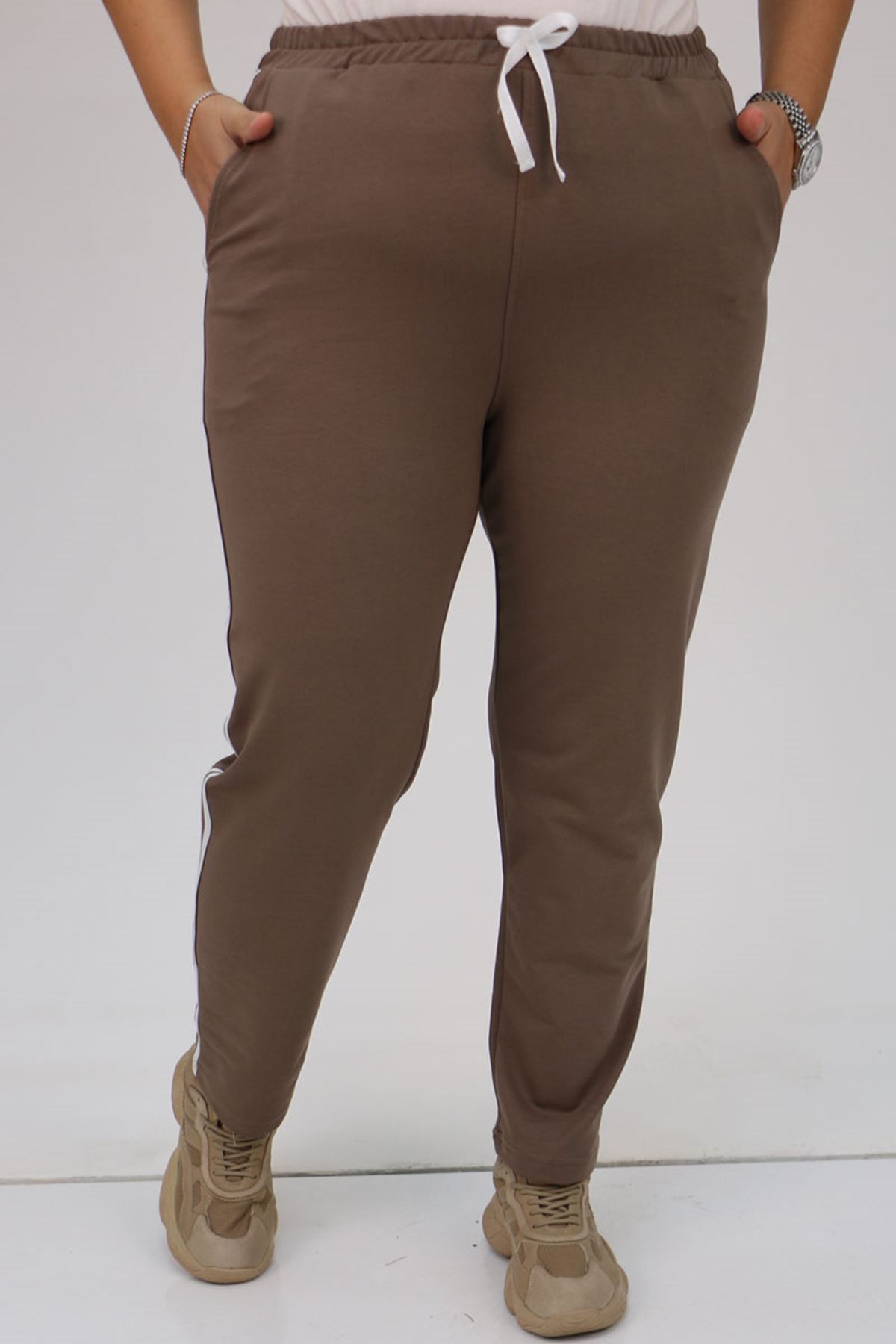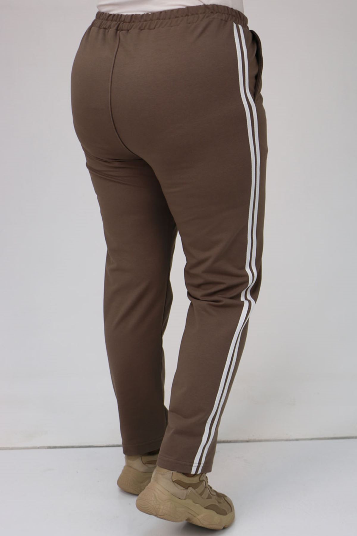 59505 -1 Büyük Beden Yüksek Bel Lastikli İki İplik Eşofman Altı - Vizon