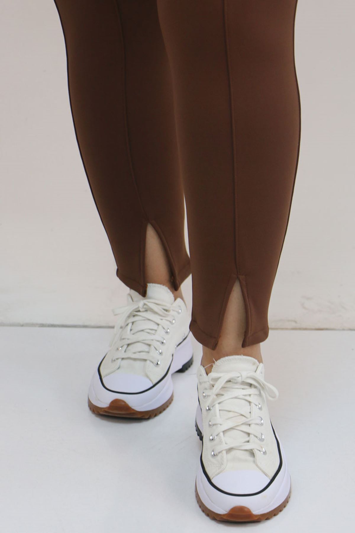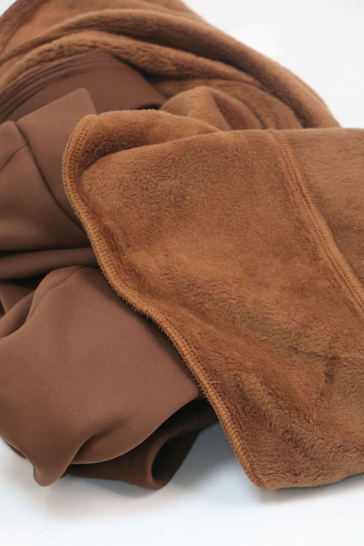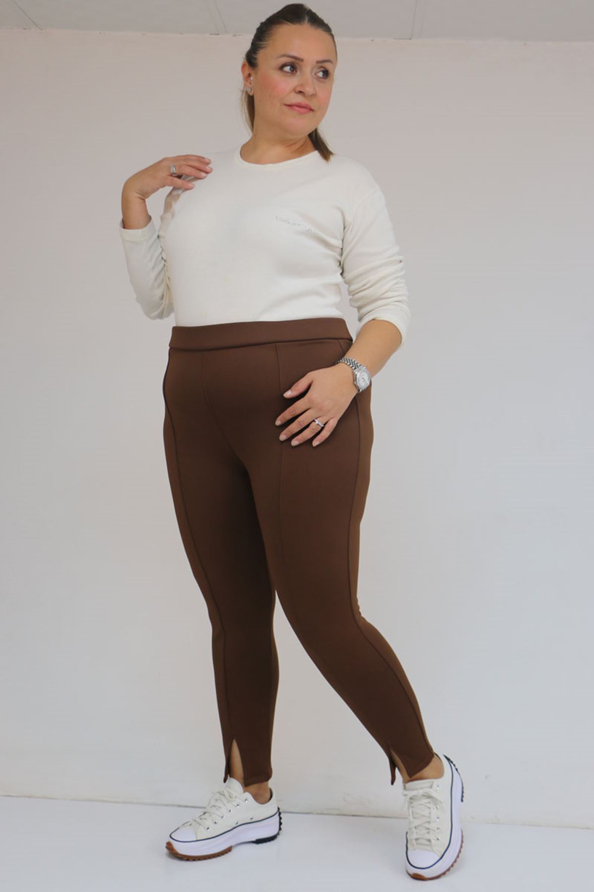 59507 Büyük Beden Önü Yırtmaçlı İçi Şardonlu Tayt - Kahve