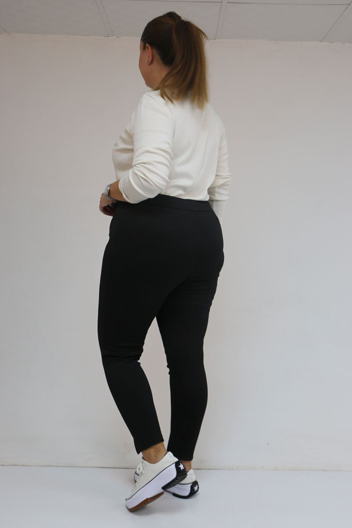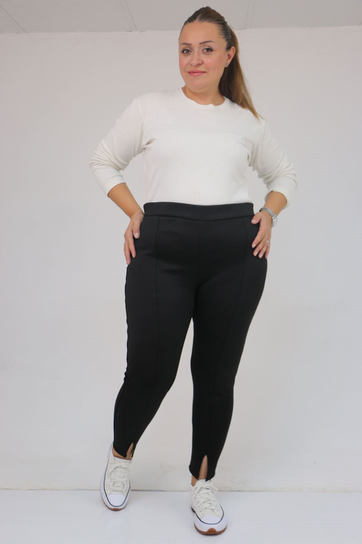 59507 Büyük Beden Önü Yırtmaçlı İçi Şardonlu Tayt - Siyah