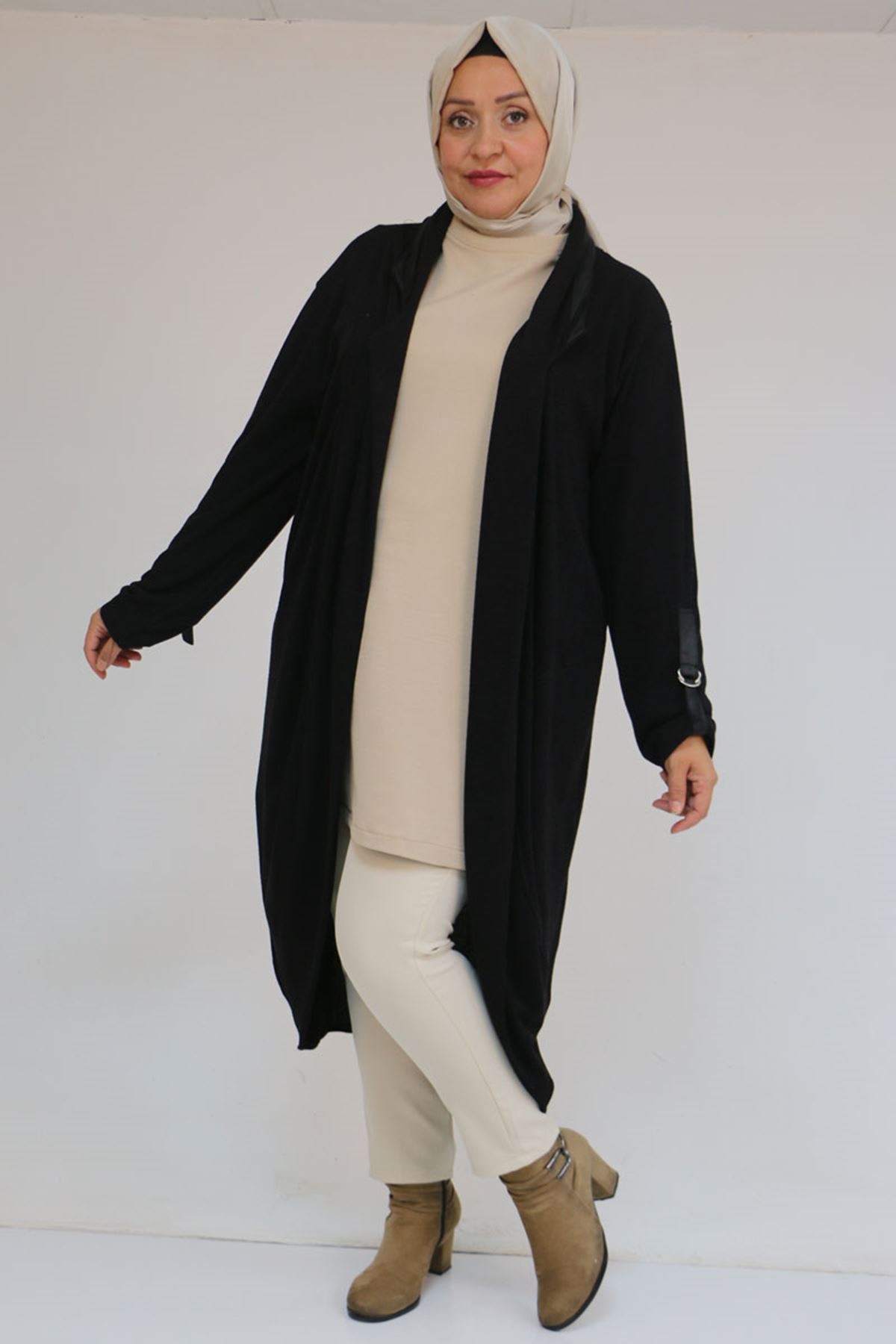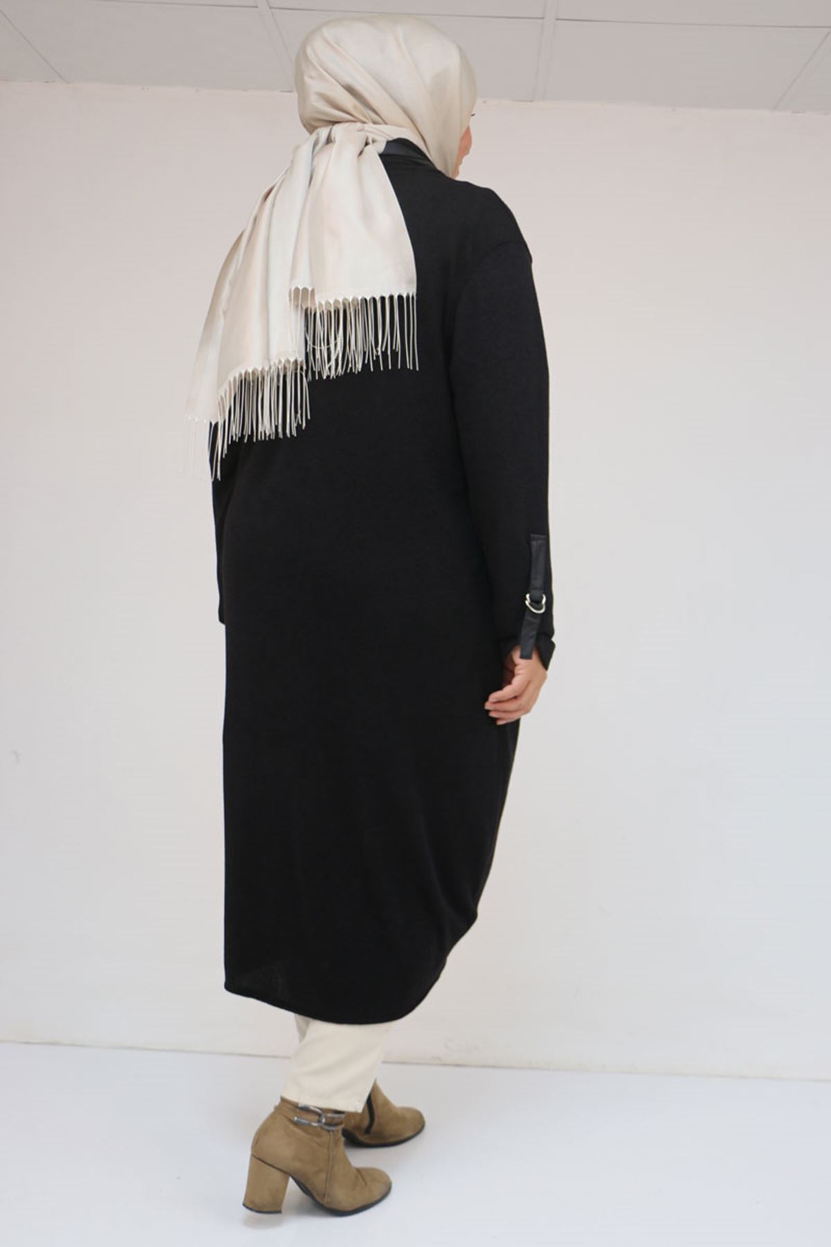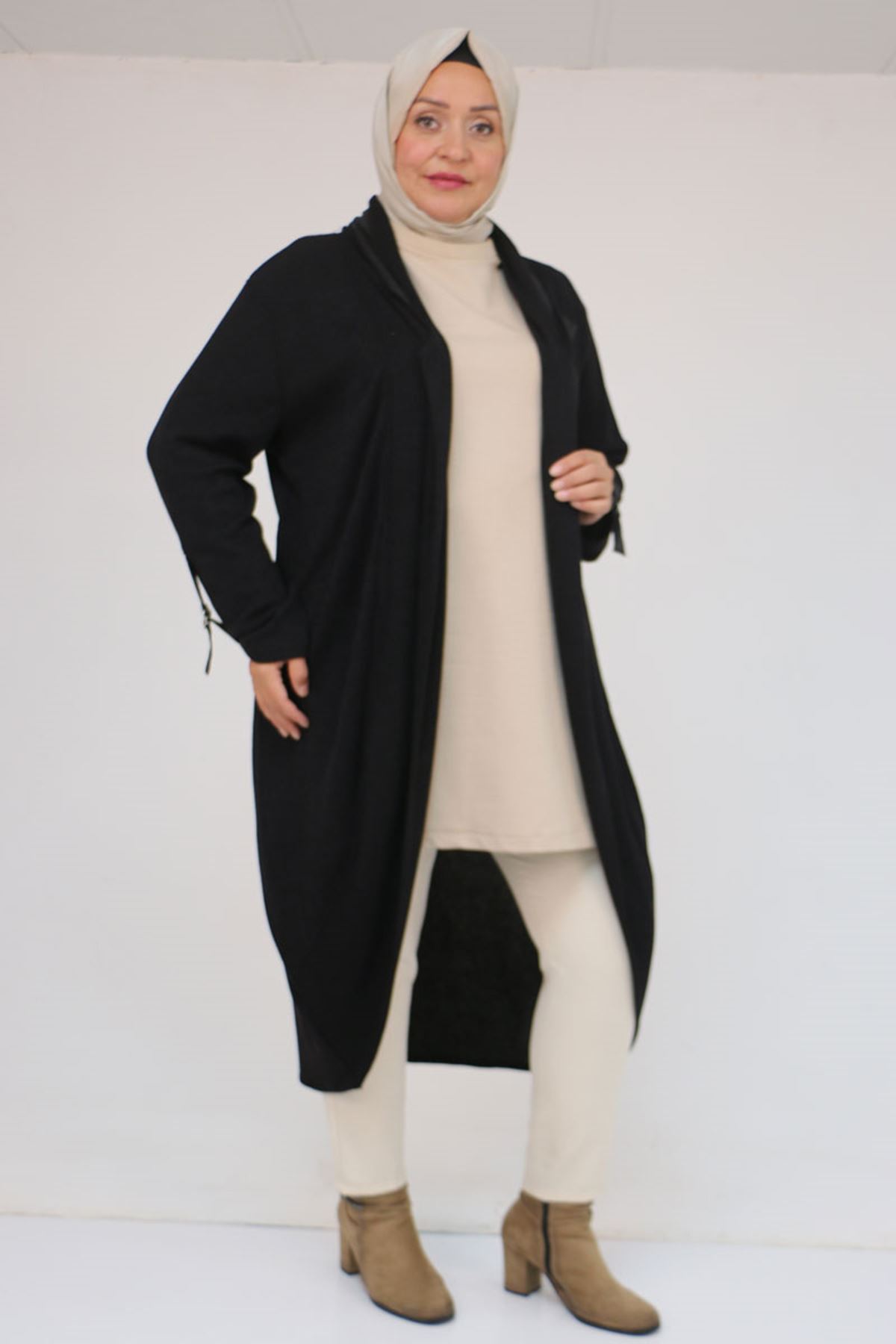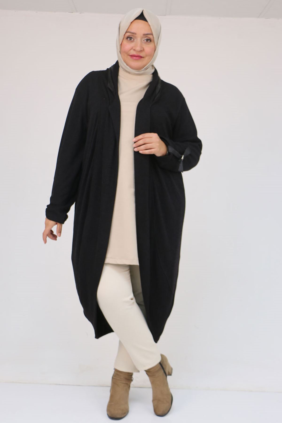 33056 Büyük Beden Petek Triko Waterport Detaylı Ceket -Siyah