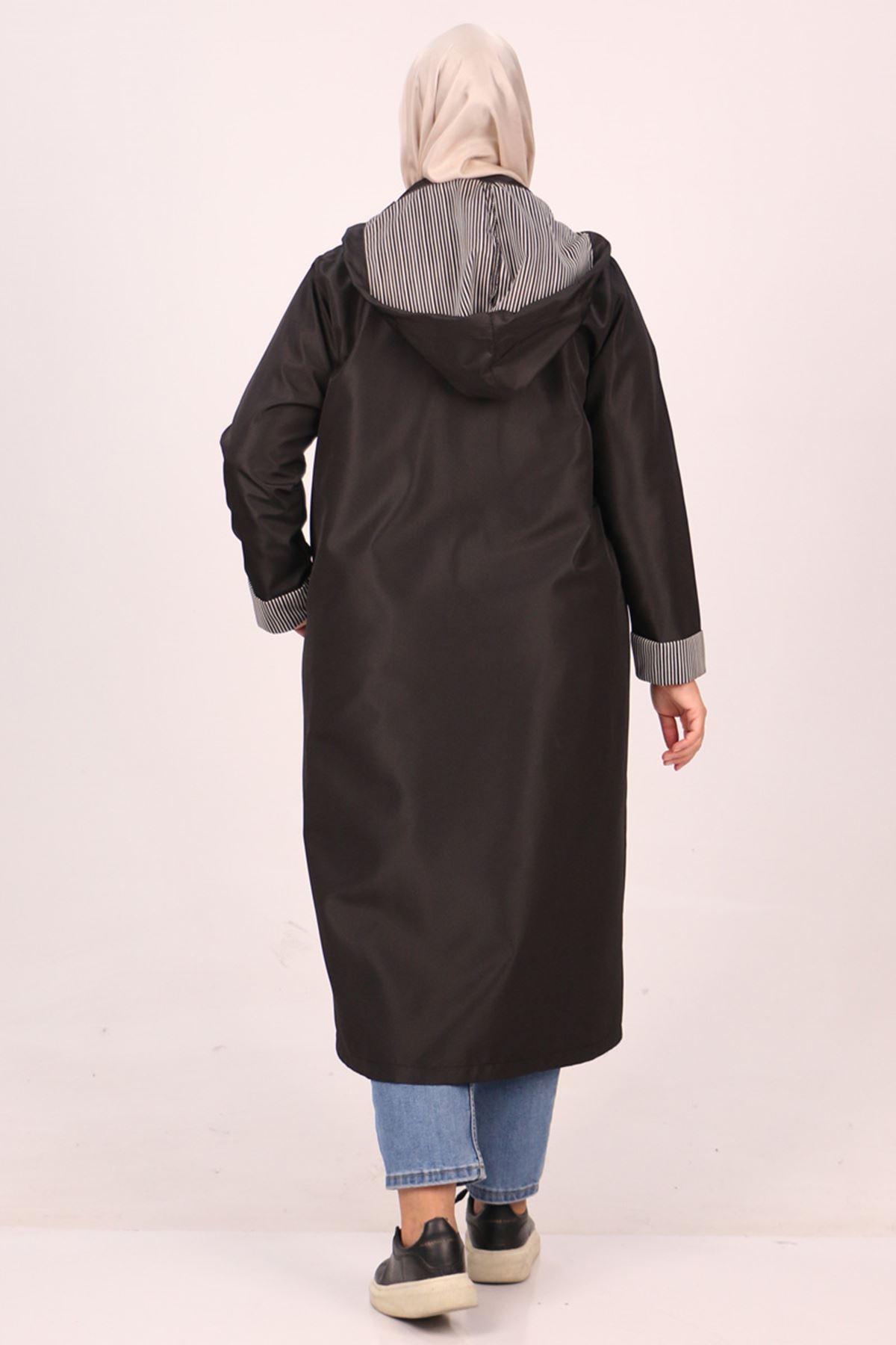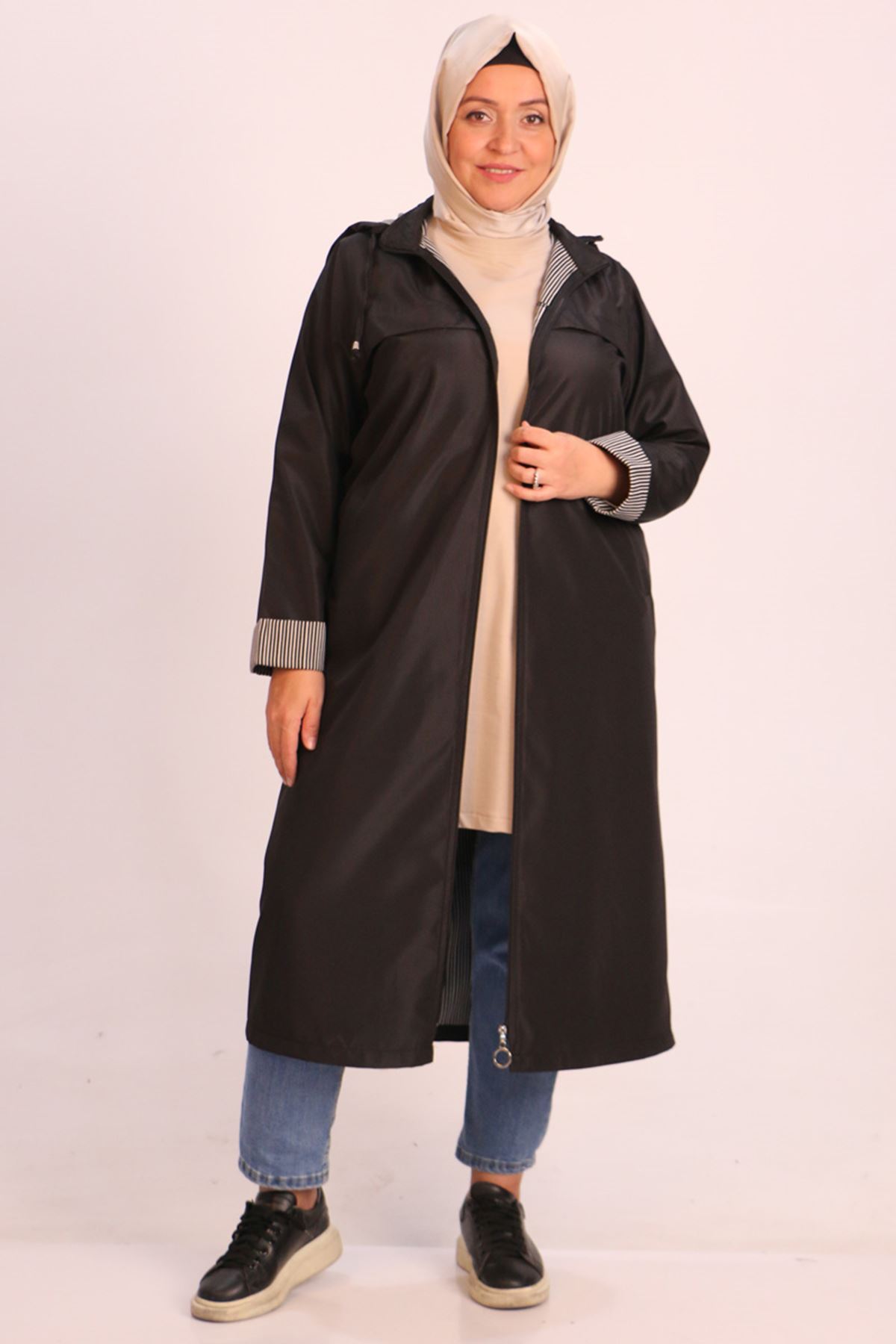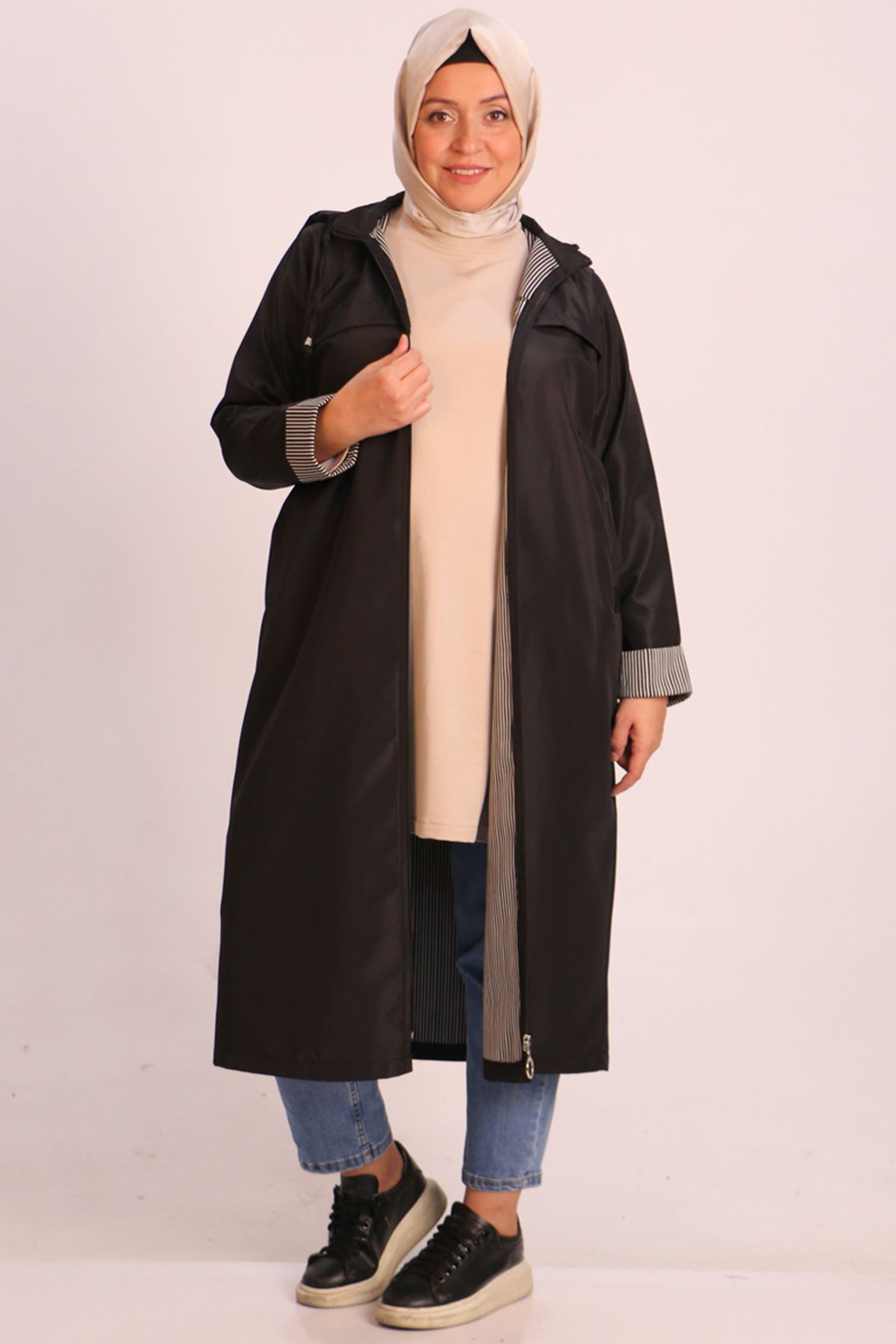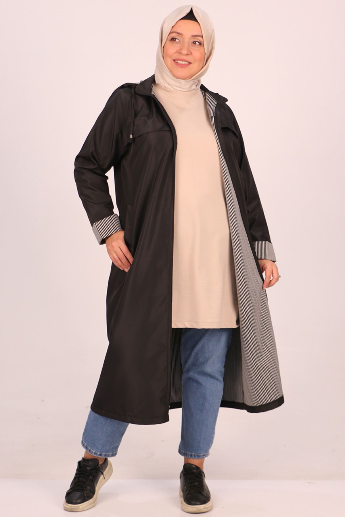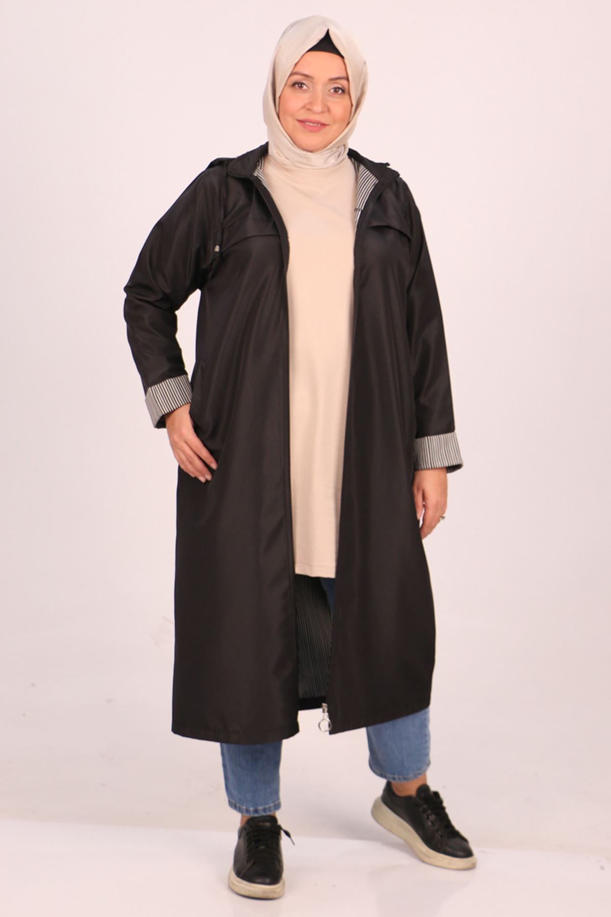 33068 Büyük Beden Kapüşonlu Bondit Kap-Siyah