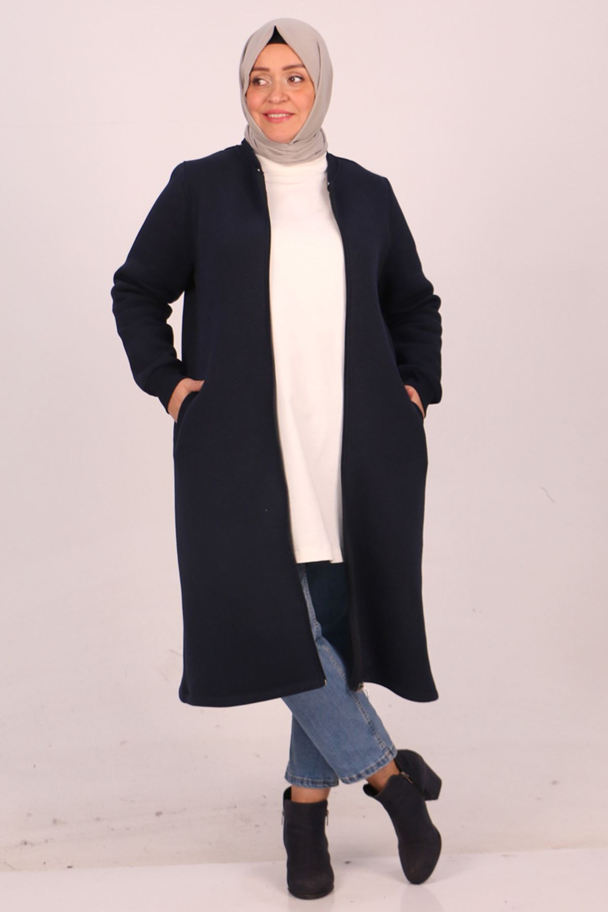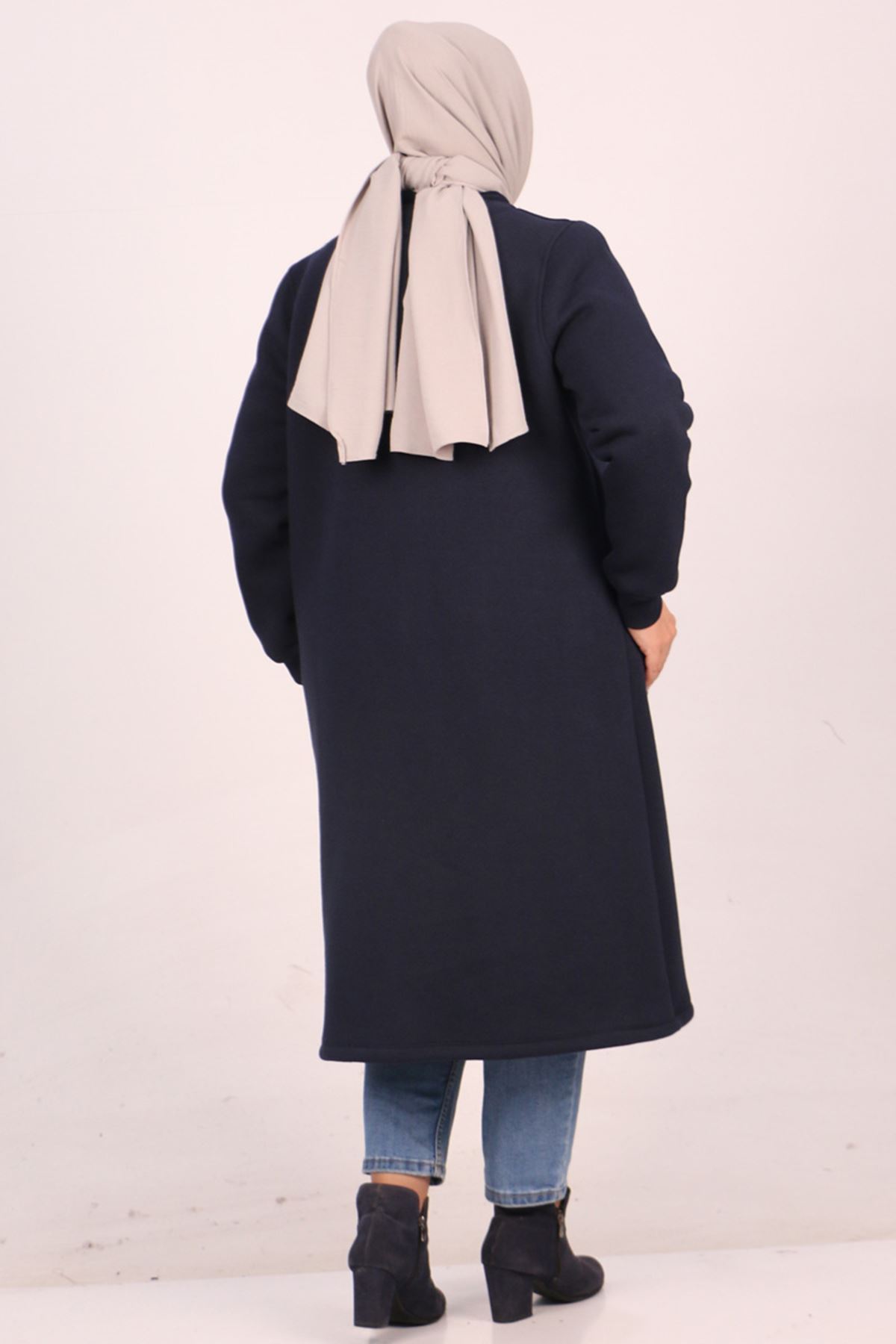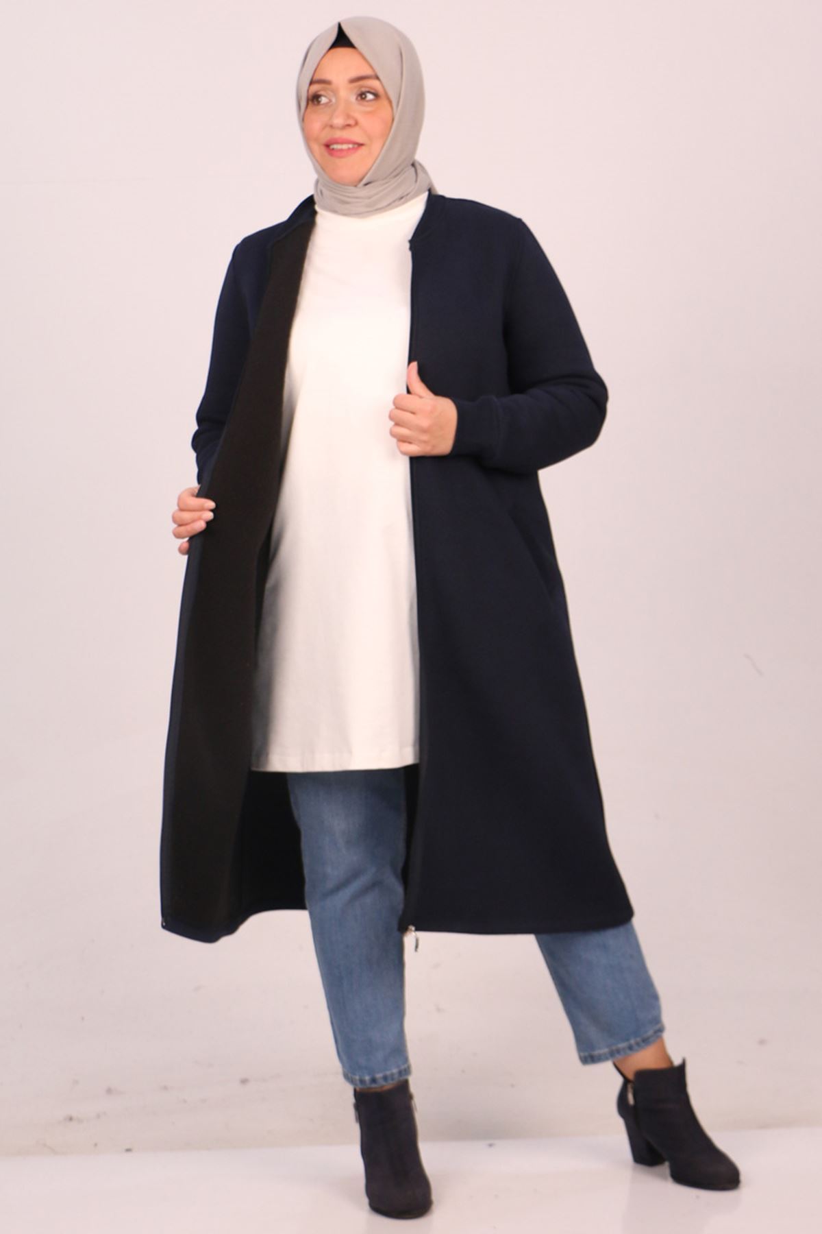 33096 Büyük Beden Fermuarlı Üç İplik Kap - Lacivert