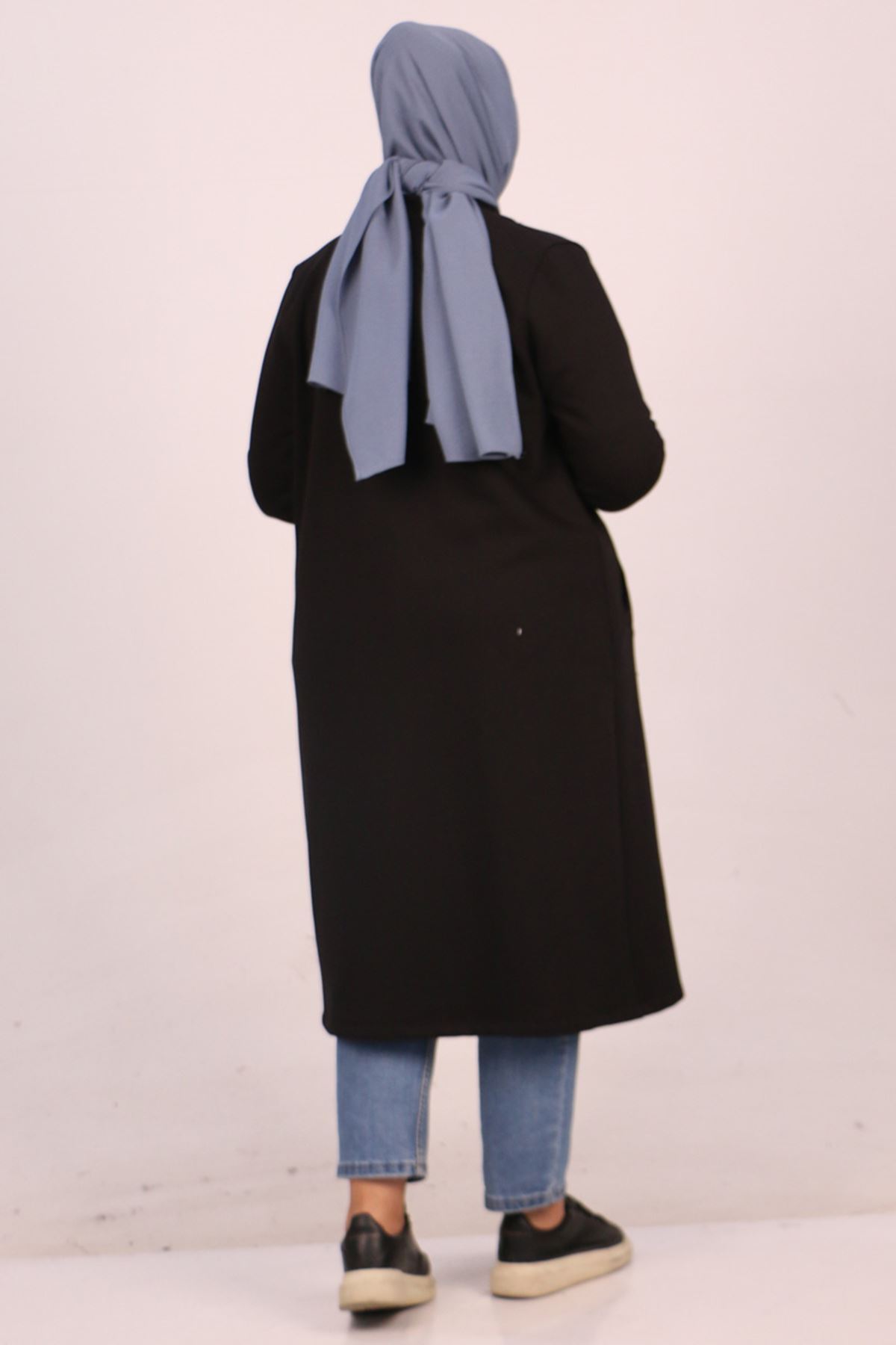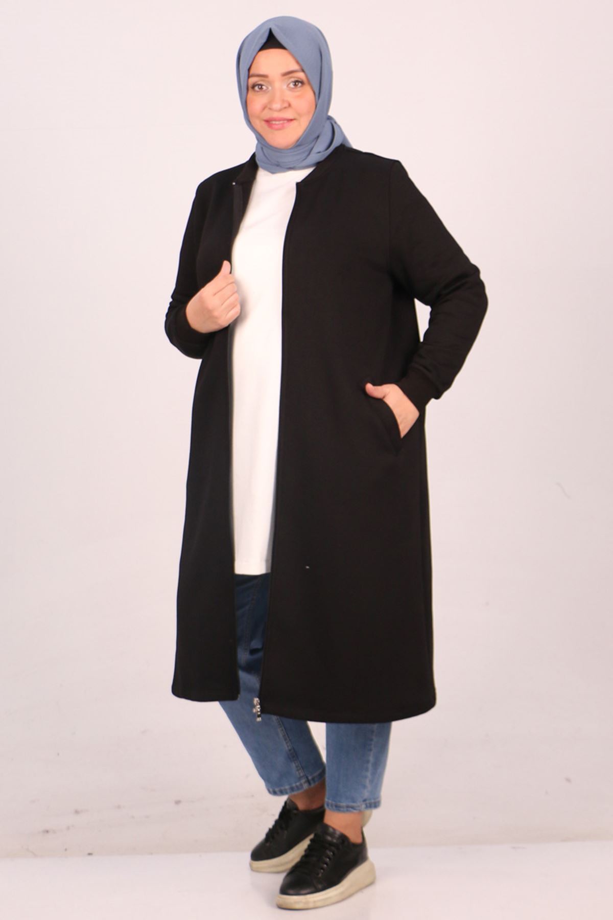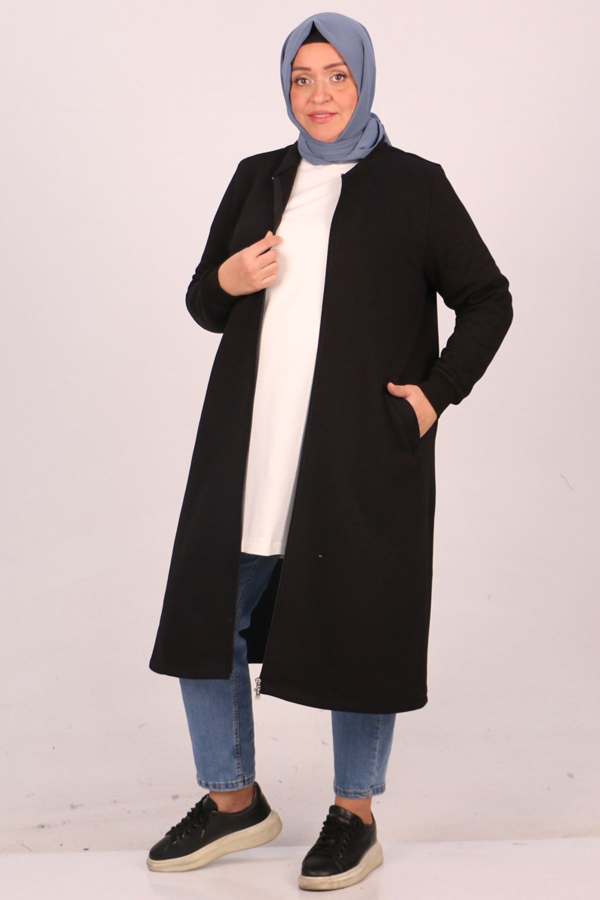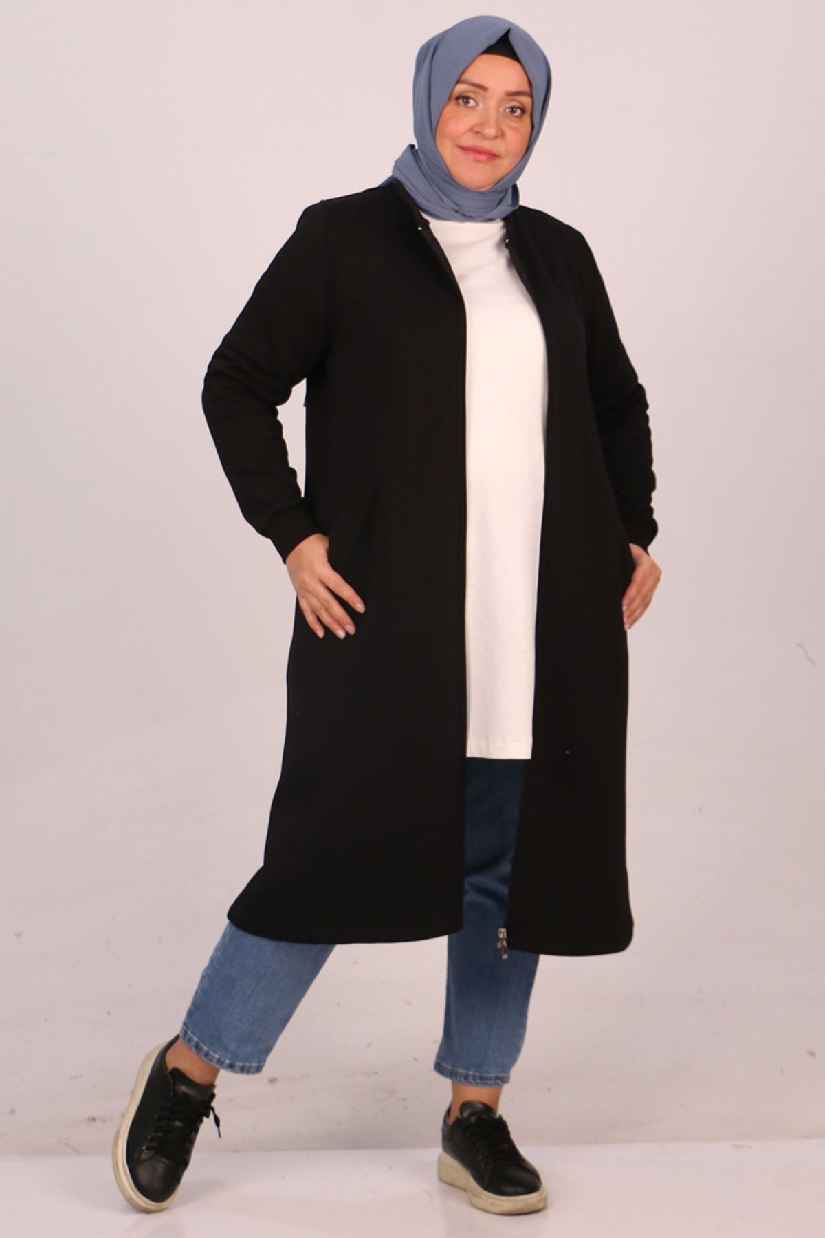 33096 Büyük Beden Fermuarlı Üç İplik Kap - Siyah
