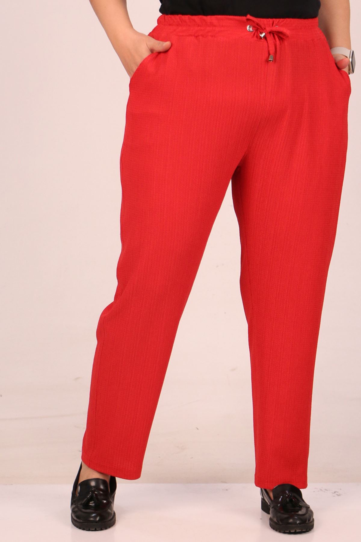 39011 Büyük Beden Bürümcük Dar Paça Pantolon-Nar Çiçeği