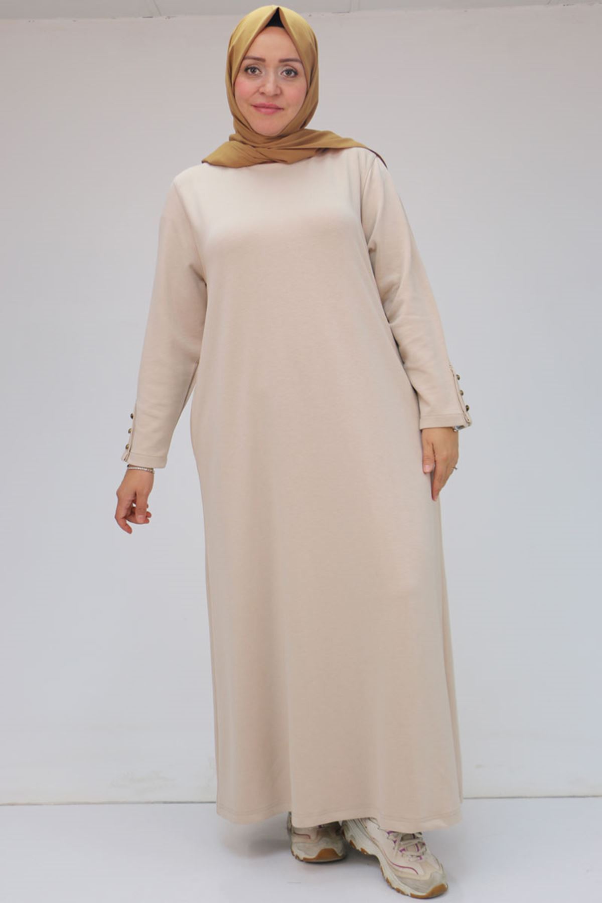 42031 Büyük Beden Cepli Patlı Modal Elbise - Bej
