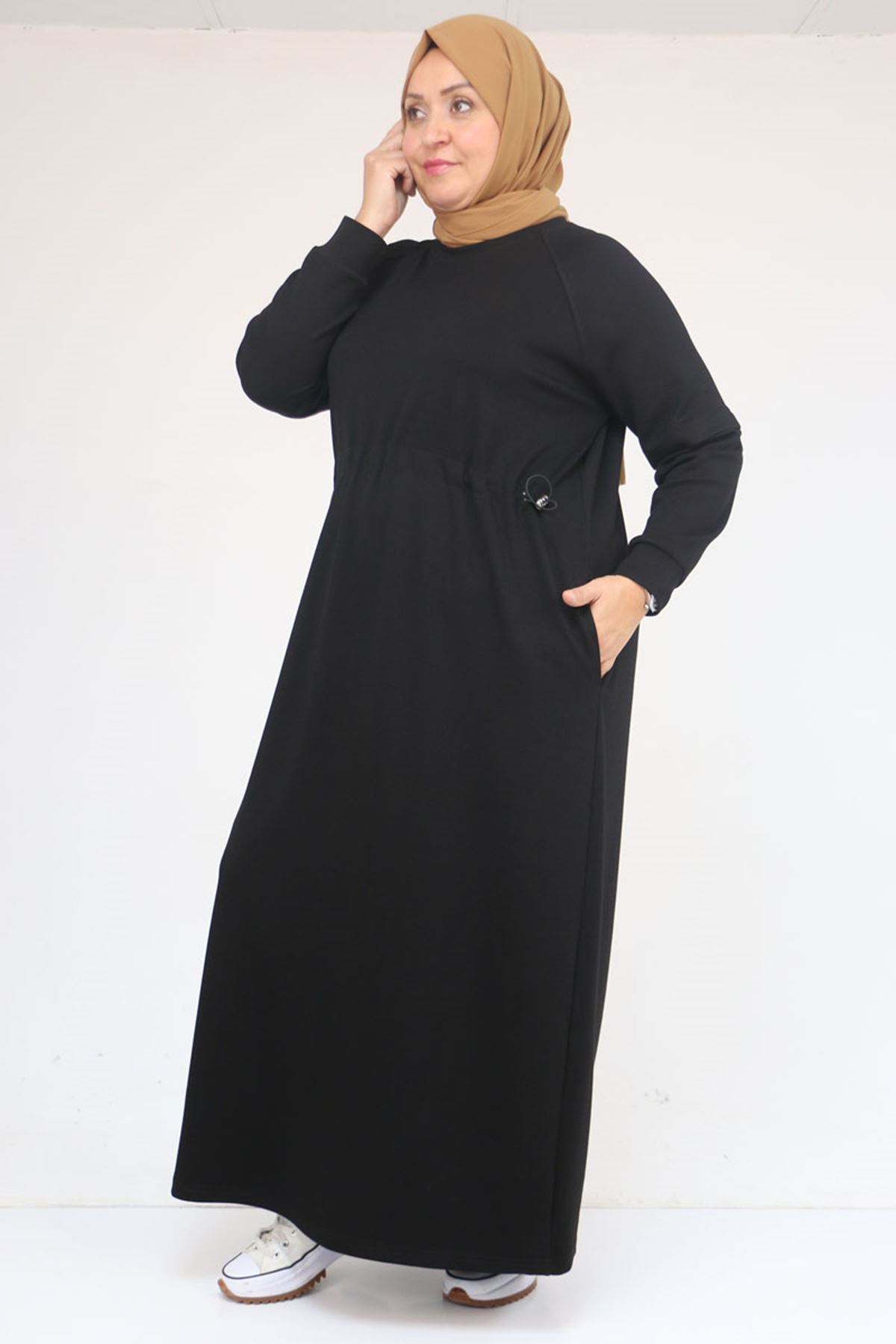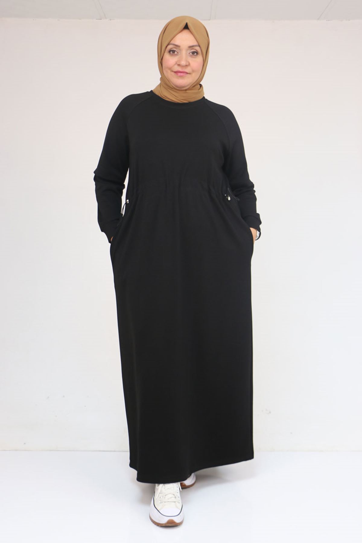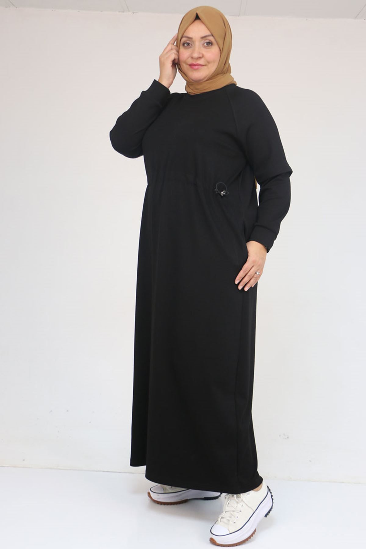 42032 Büyük Beden Beli Lastikli Modal Elbise - Siyah