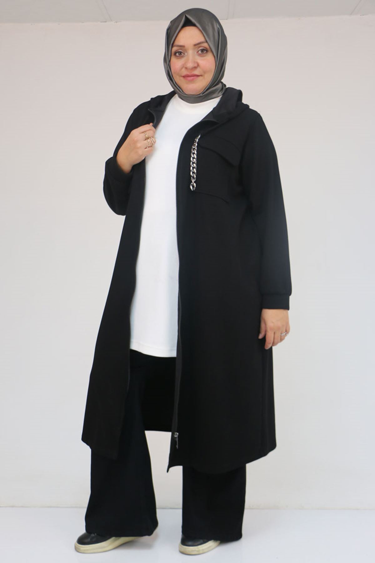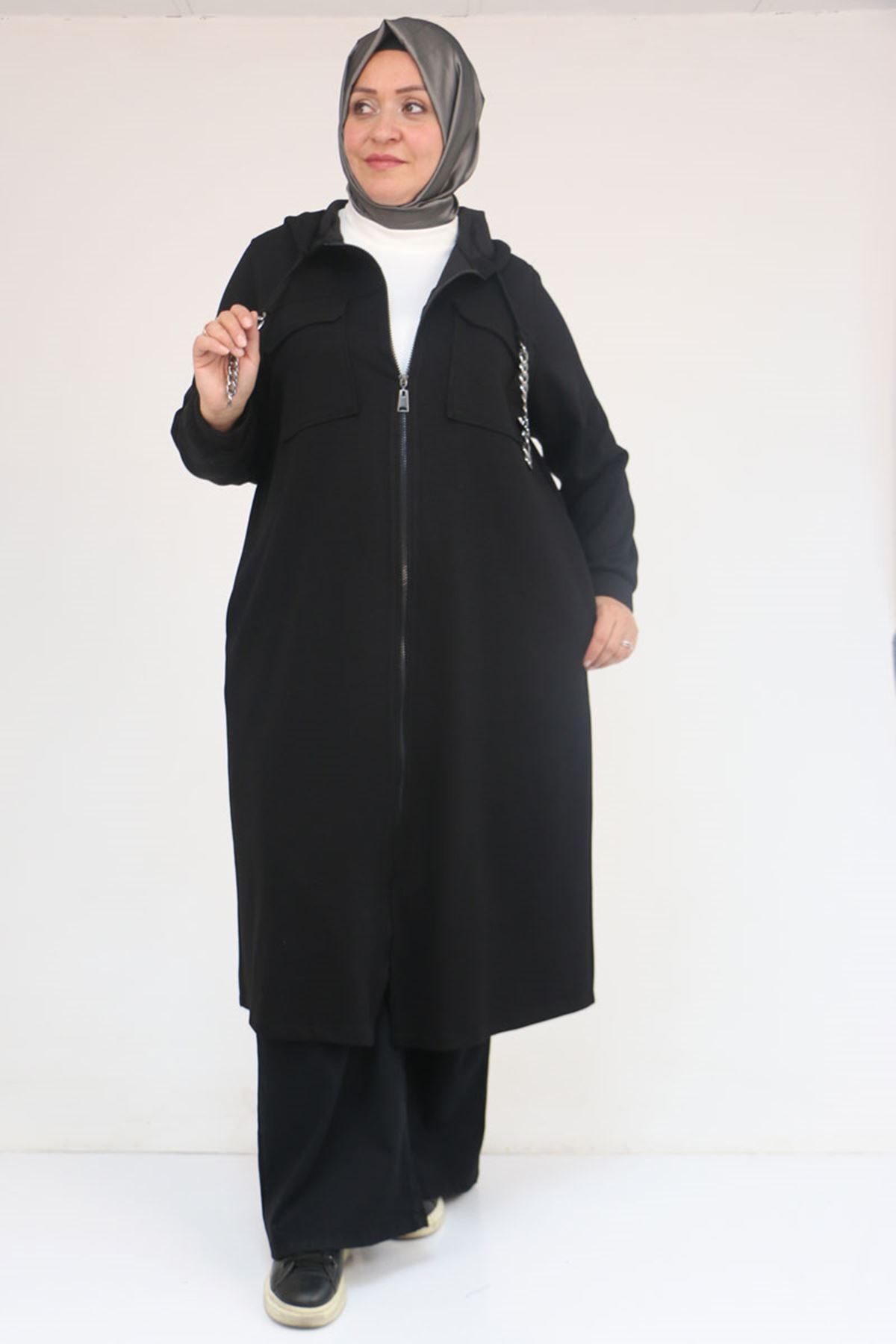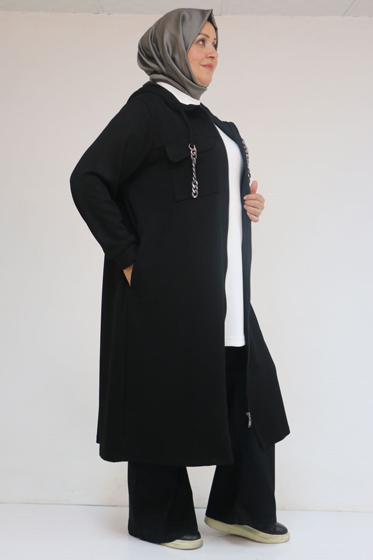 43036 Büyük Beden Zincir Kordonlu Oysho Kap - Siyah