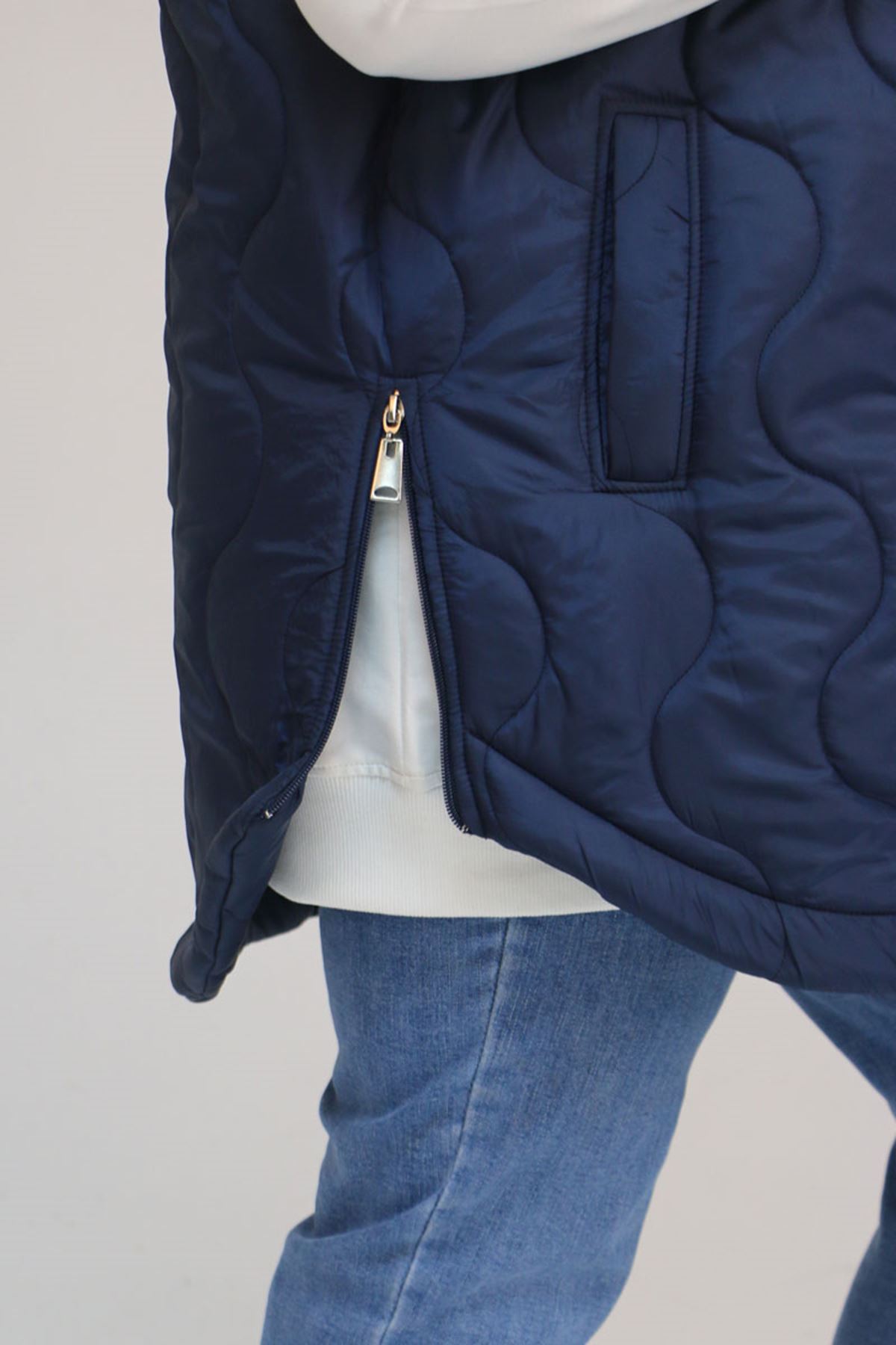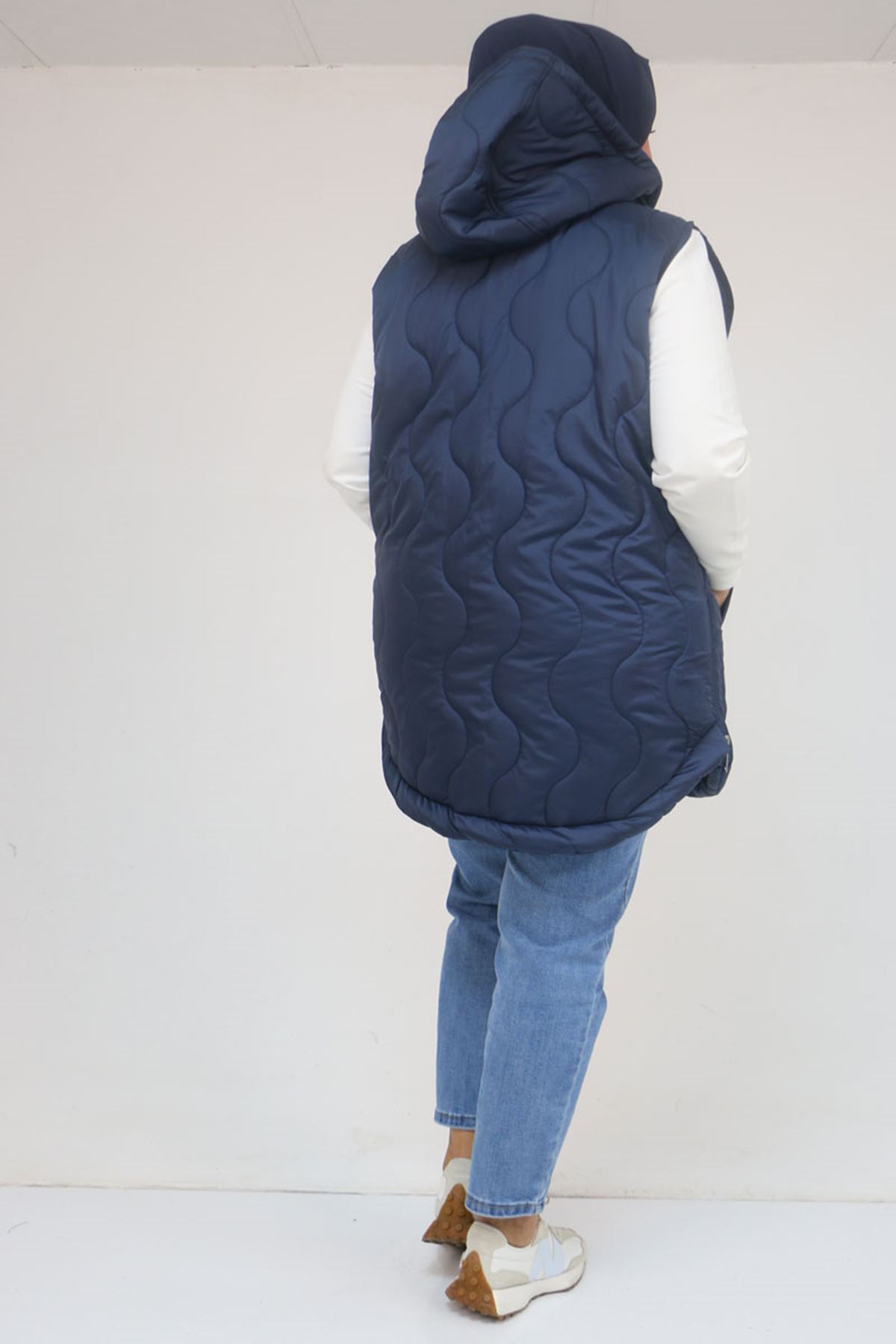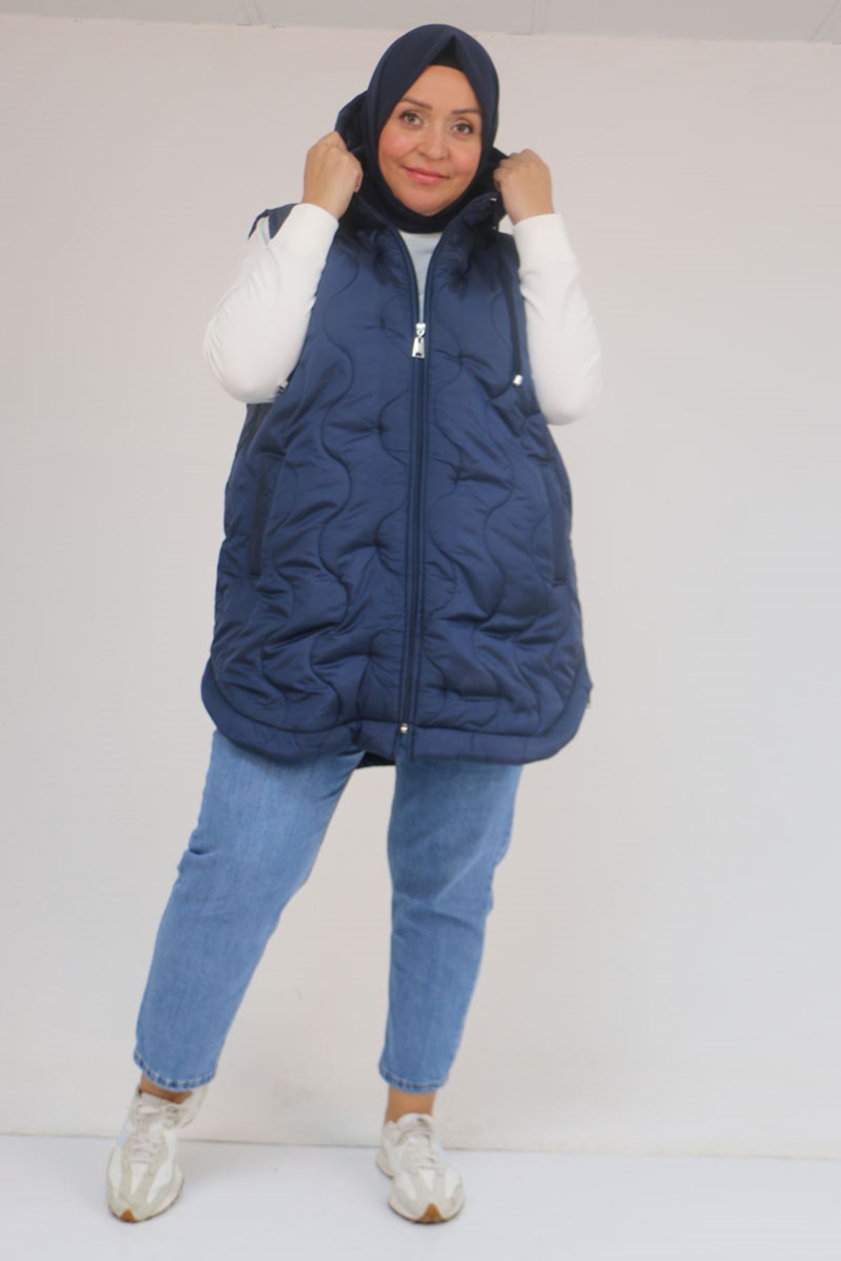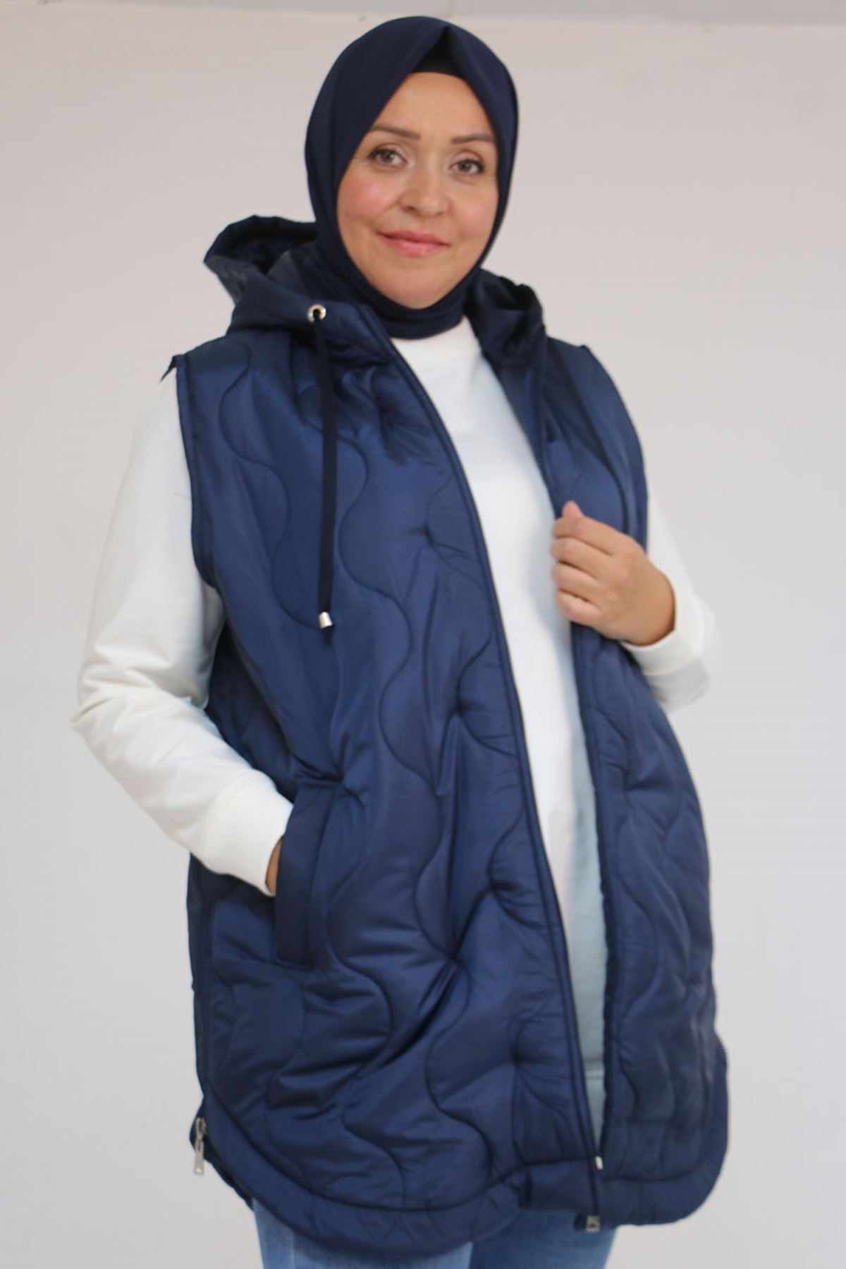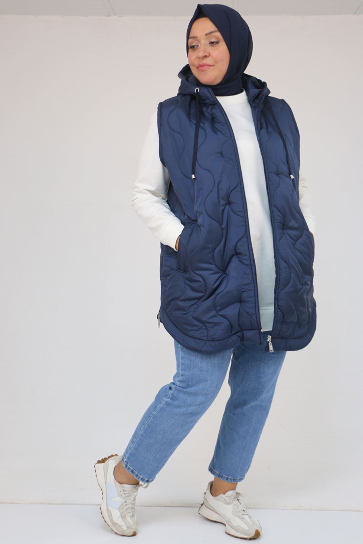 44007 Büyük Beden Yanı Yırtaçlı Oval Kesim Kapitone Yelek - Lacivert