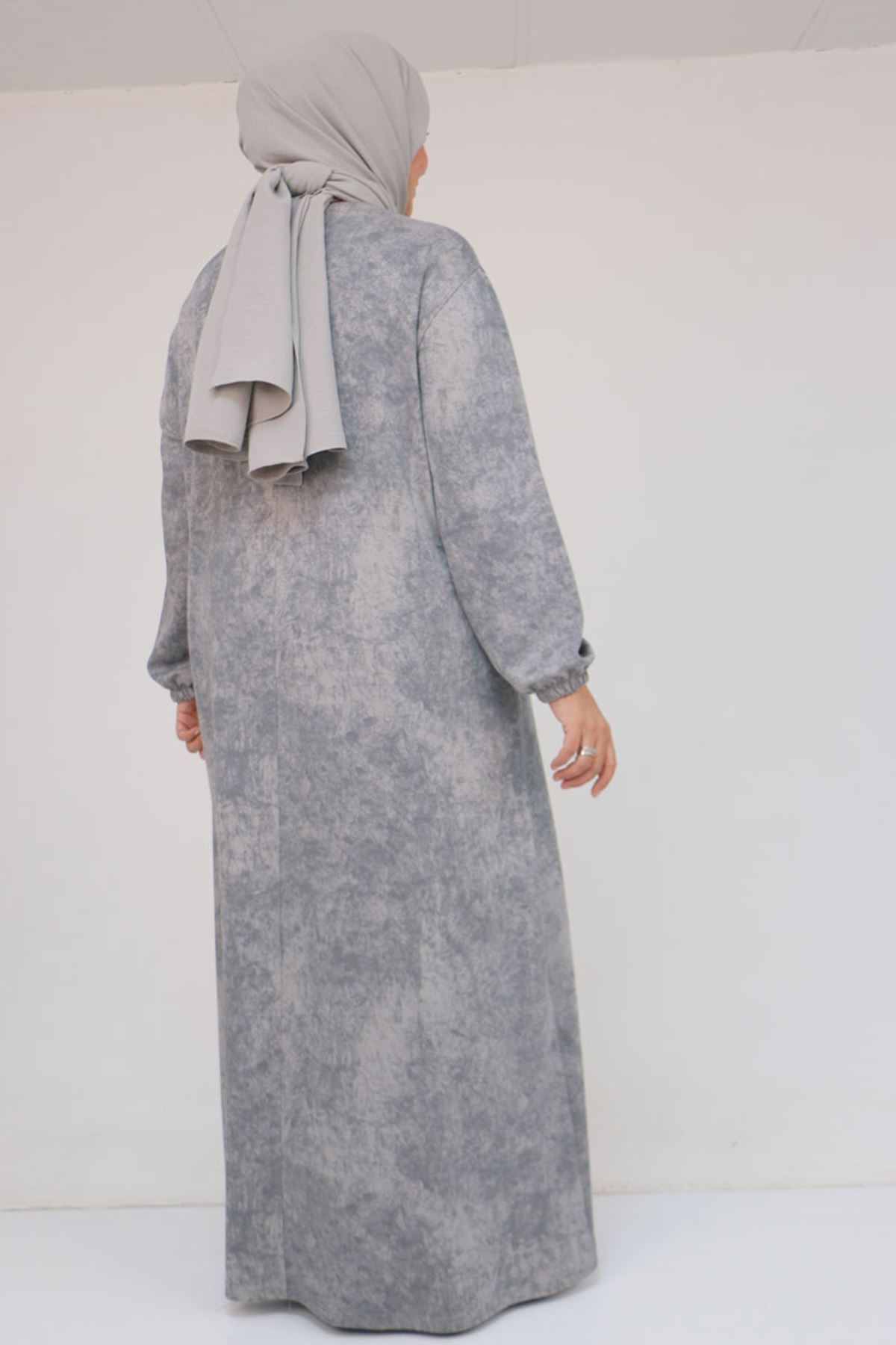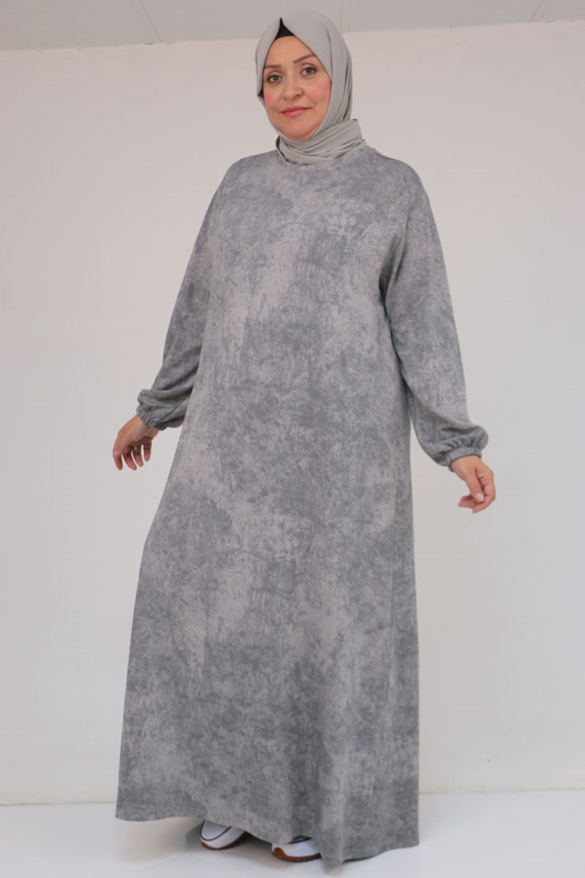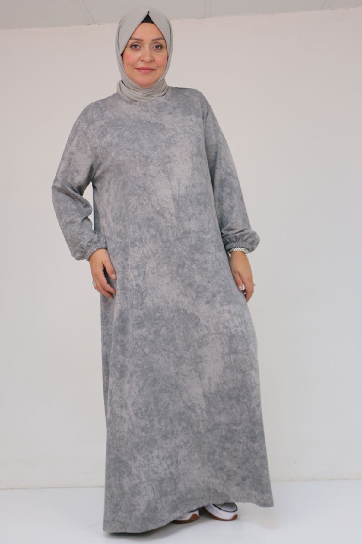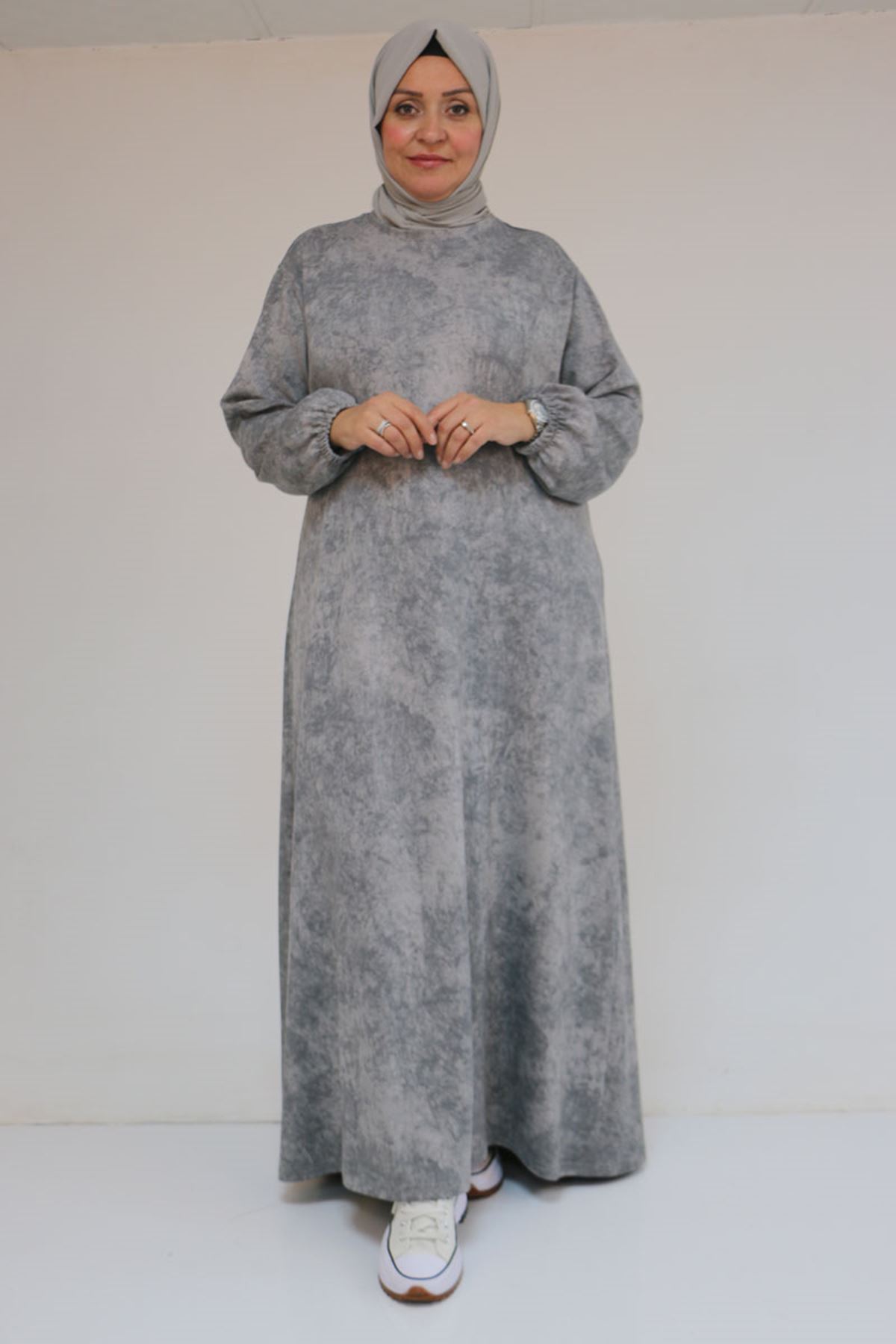 52030 Büyük Beden Kolu Lastikli Modal Elbise - Batik Gri