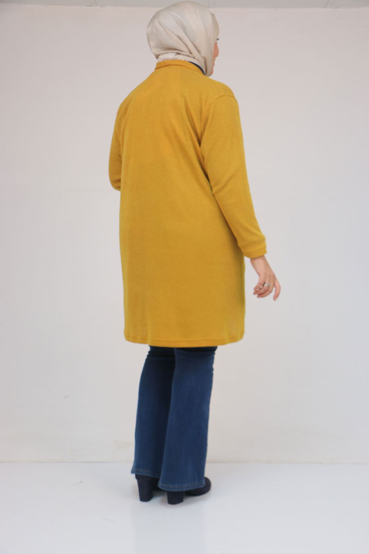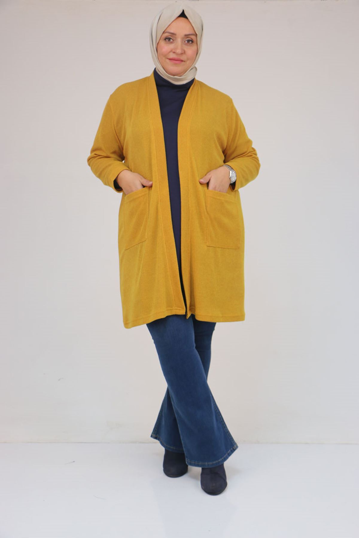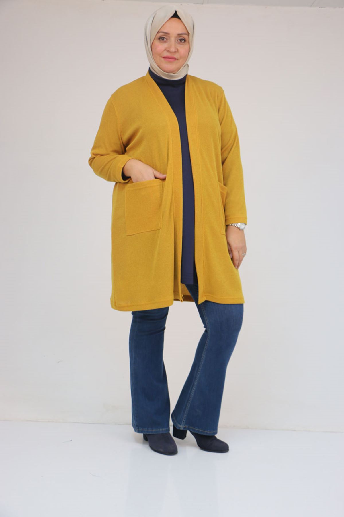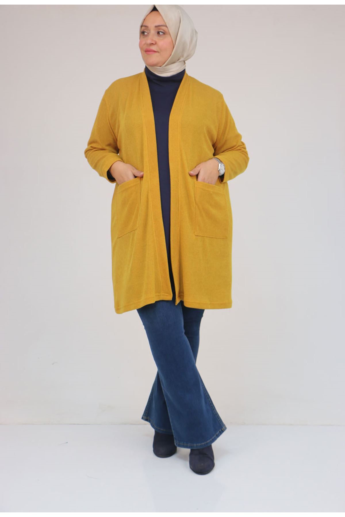 53034 Büyük Beden Cep Detaylı Mir Ceket - Hardal