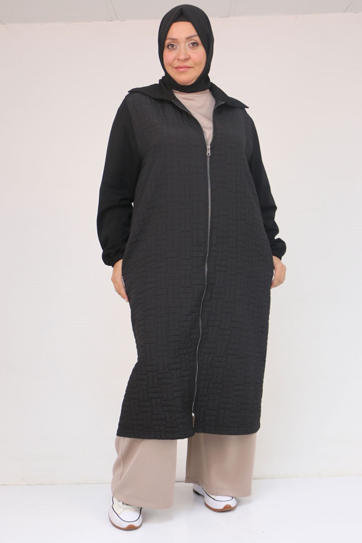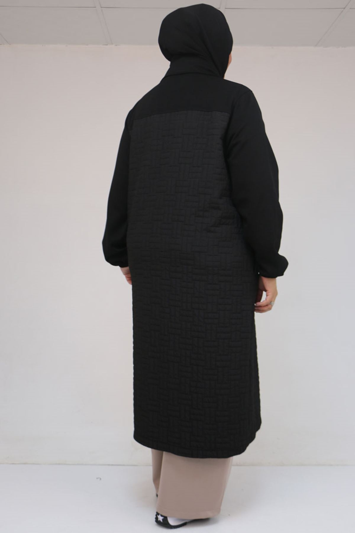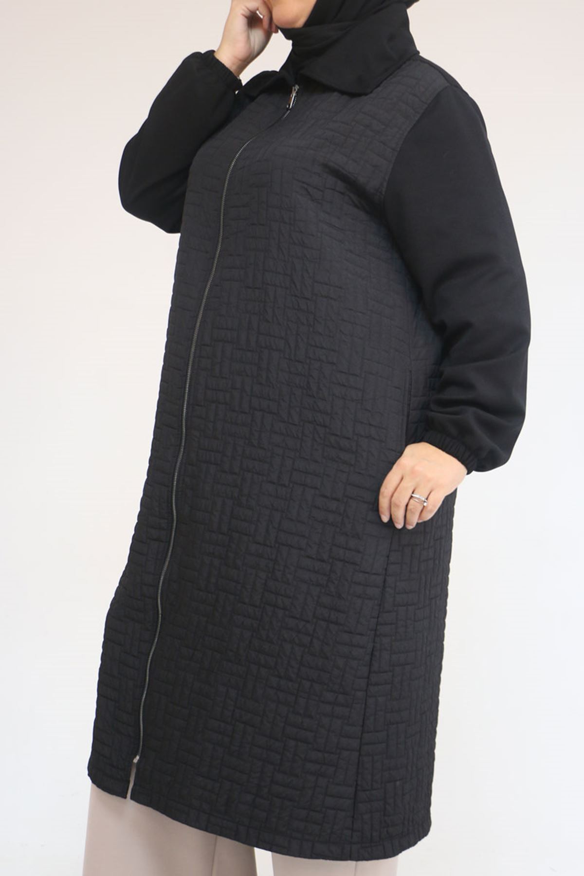 53042 Büyük Beden Kolları Lastikli Modal-Kapitone Kap -Siyah