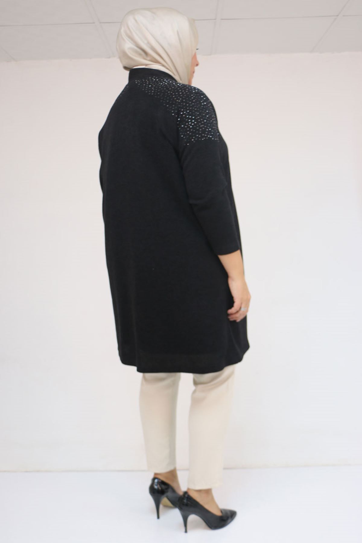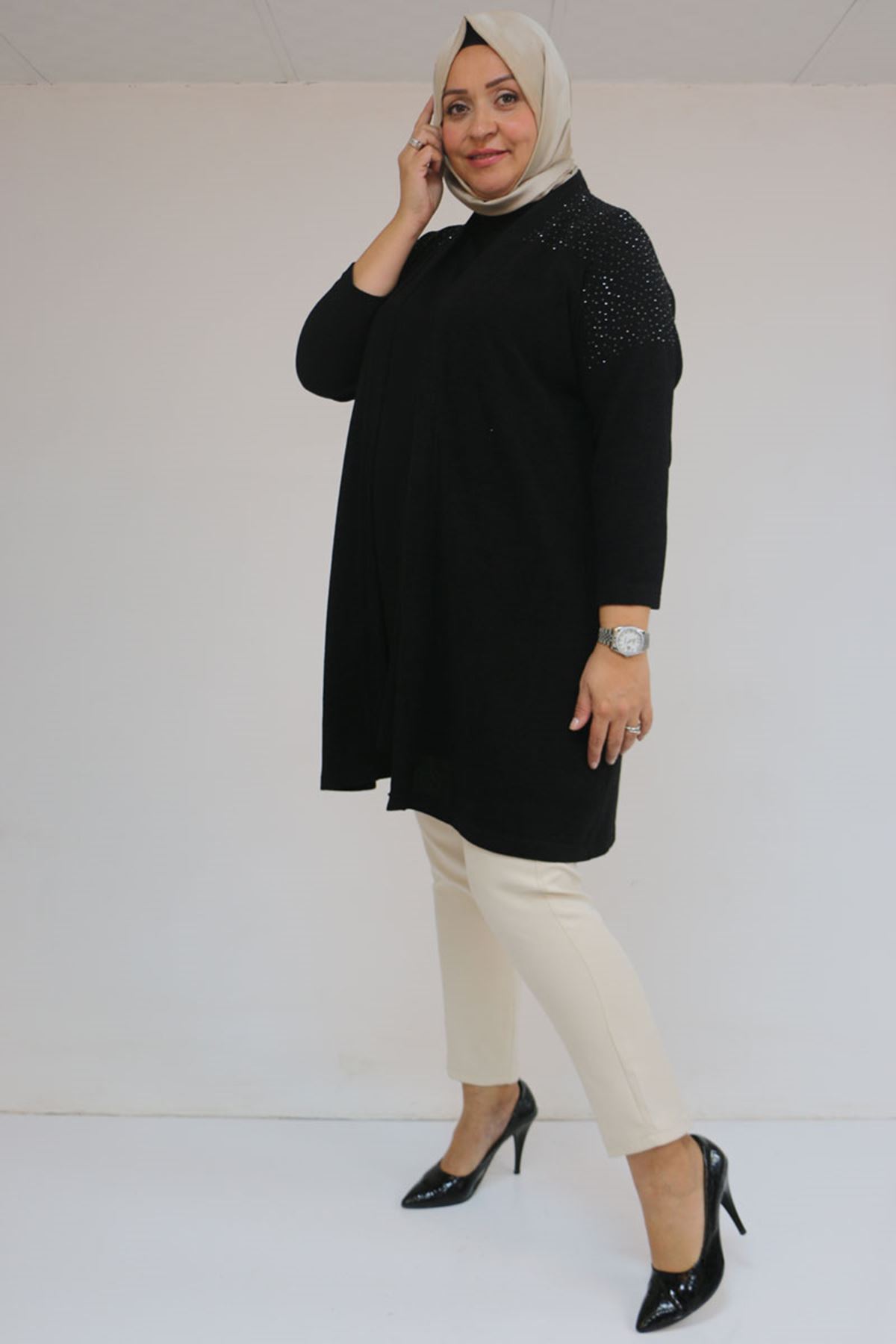 53047 Büyük Beden Omzu Taş Detaylı Mir Ceket - Siyah