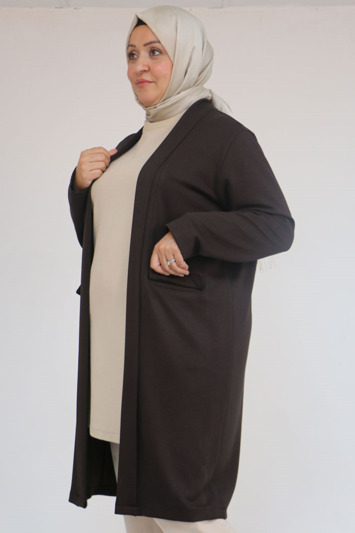 53048 Büyük Beden Cepli Uzun Modal Ceket - Kahve