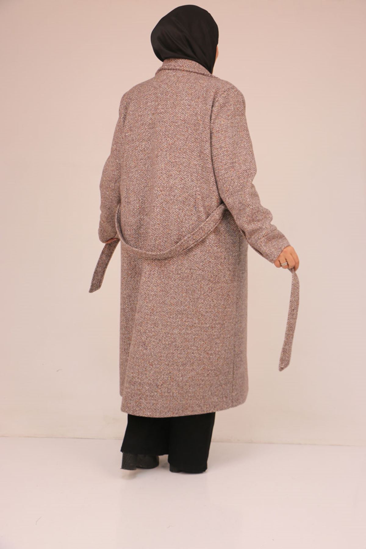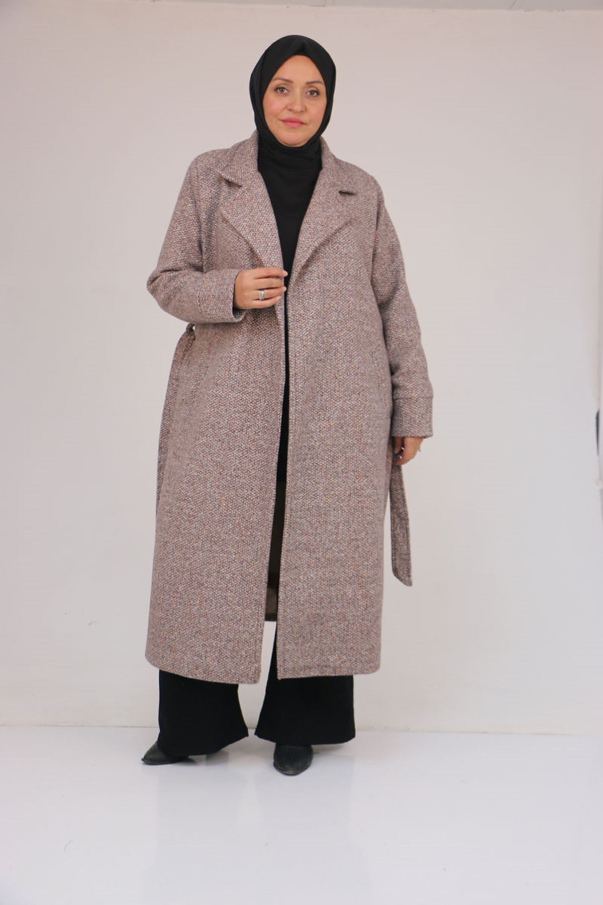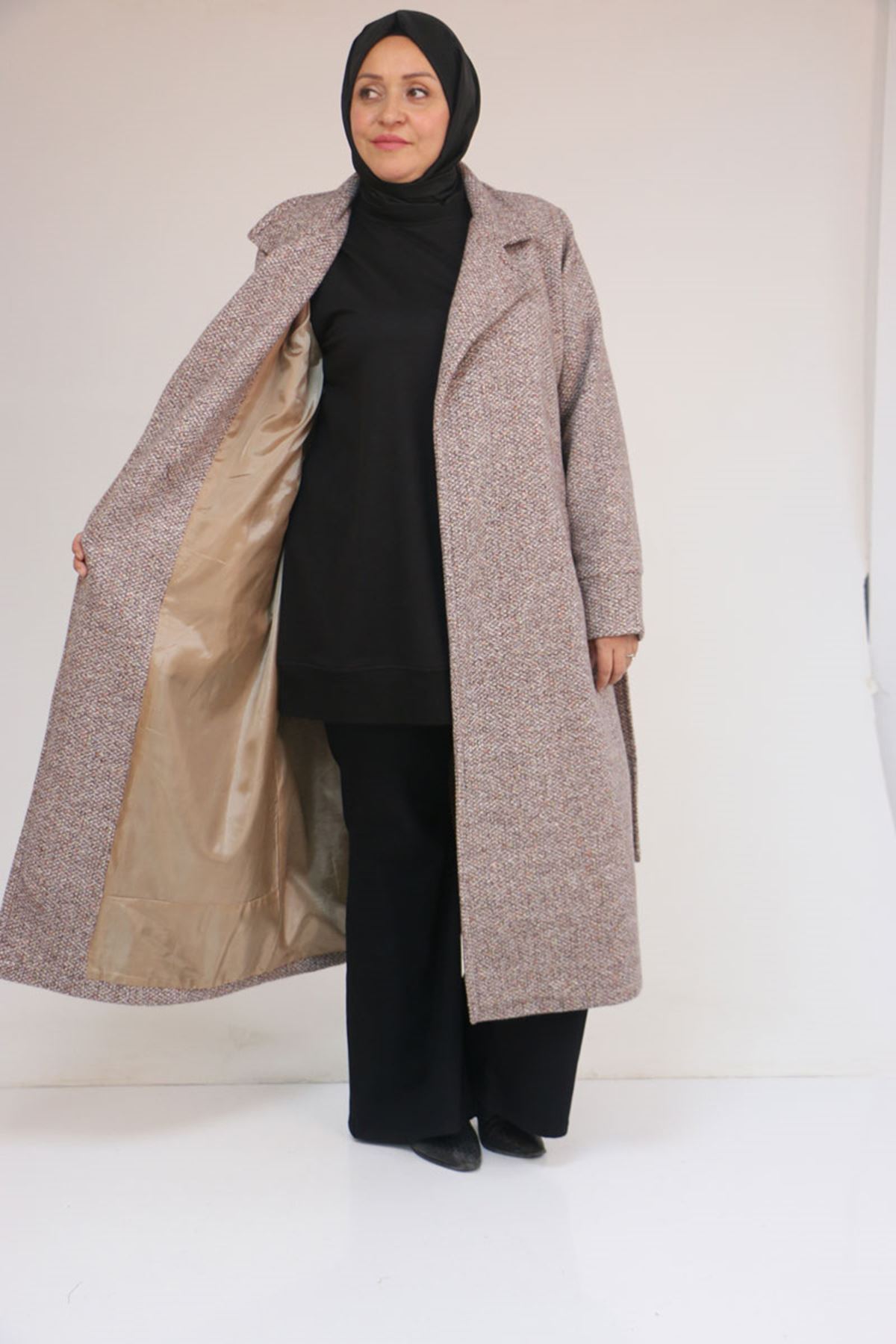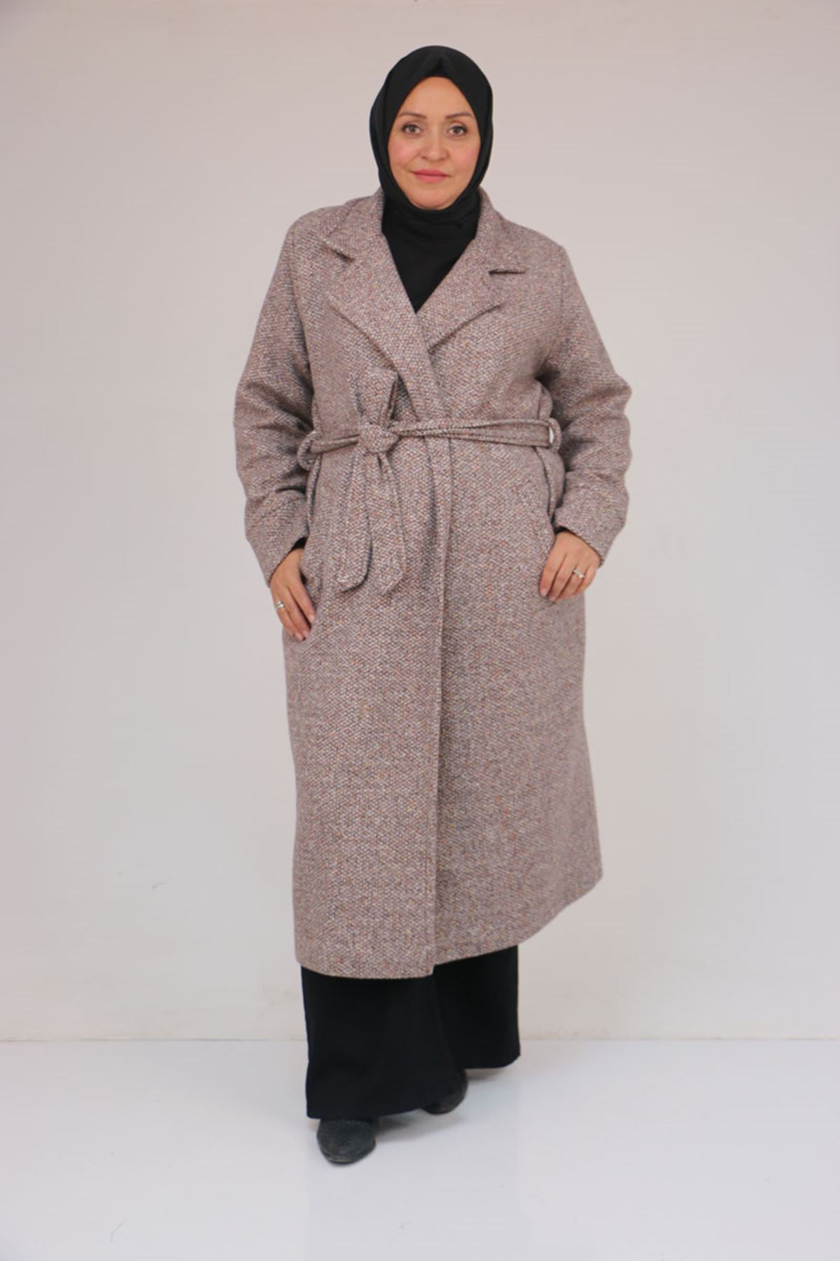 53050 Büyük Beden Şanel Kalın Manşetli Kaban - Kahve