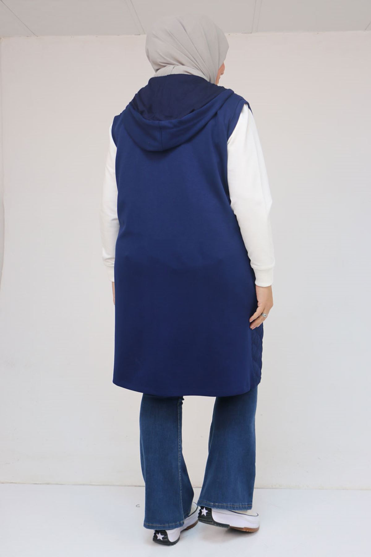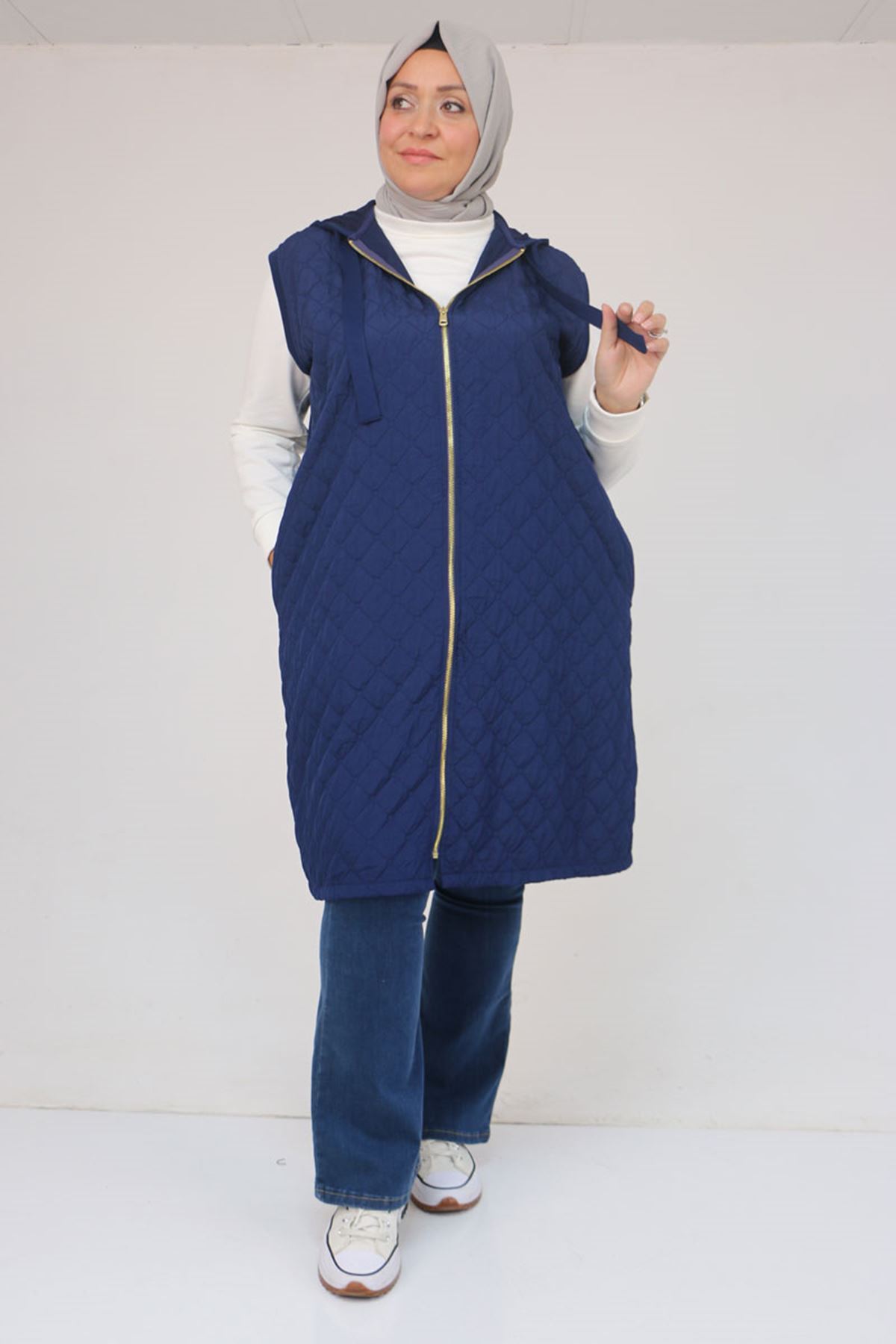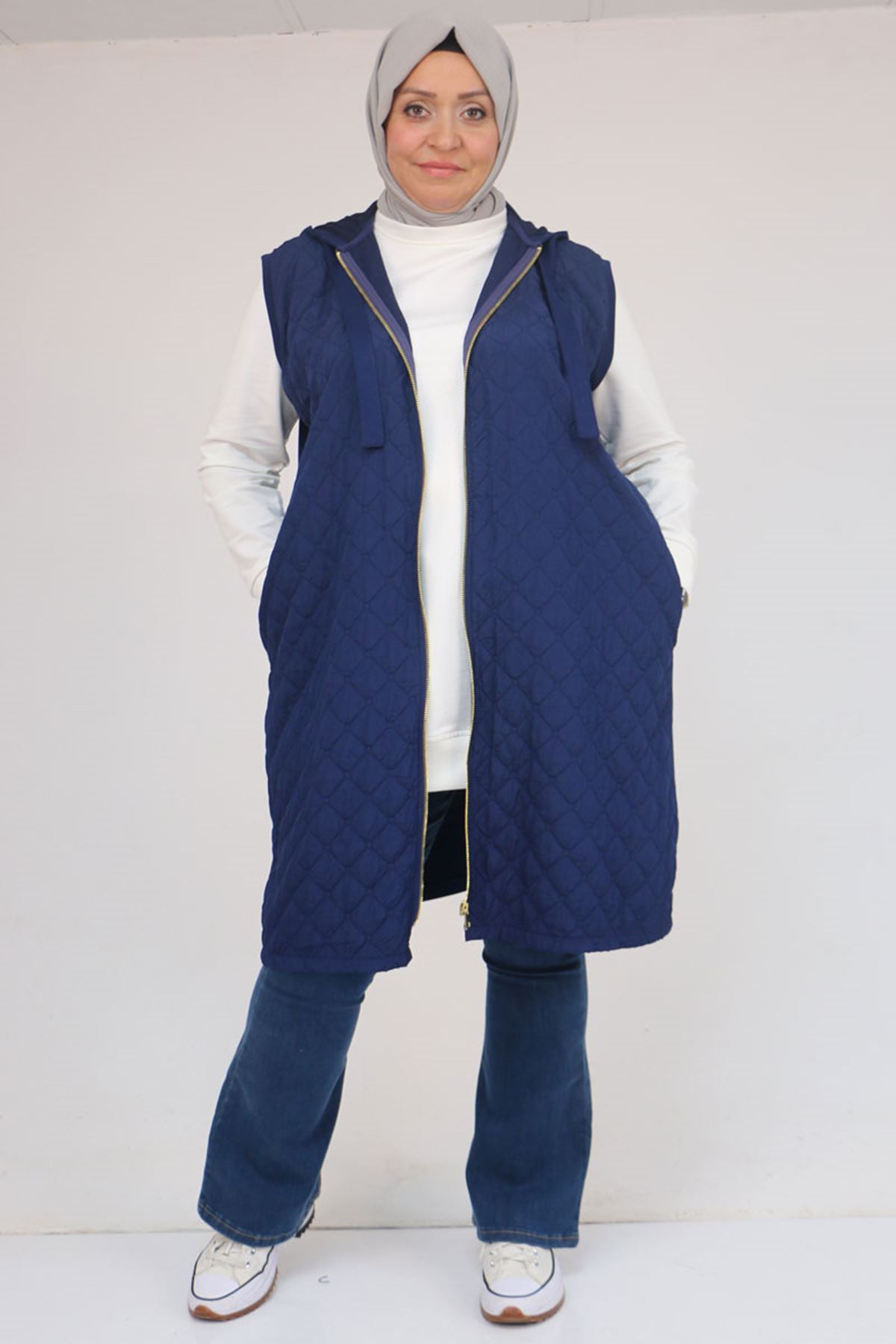 54009 Büyük Beden Kapitone - Modal Yelek - İndigo